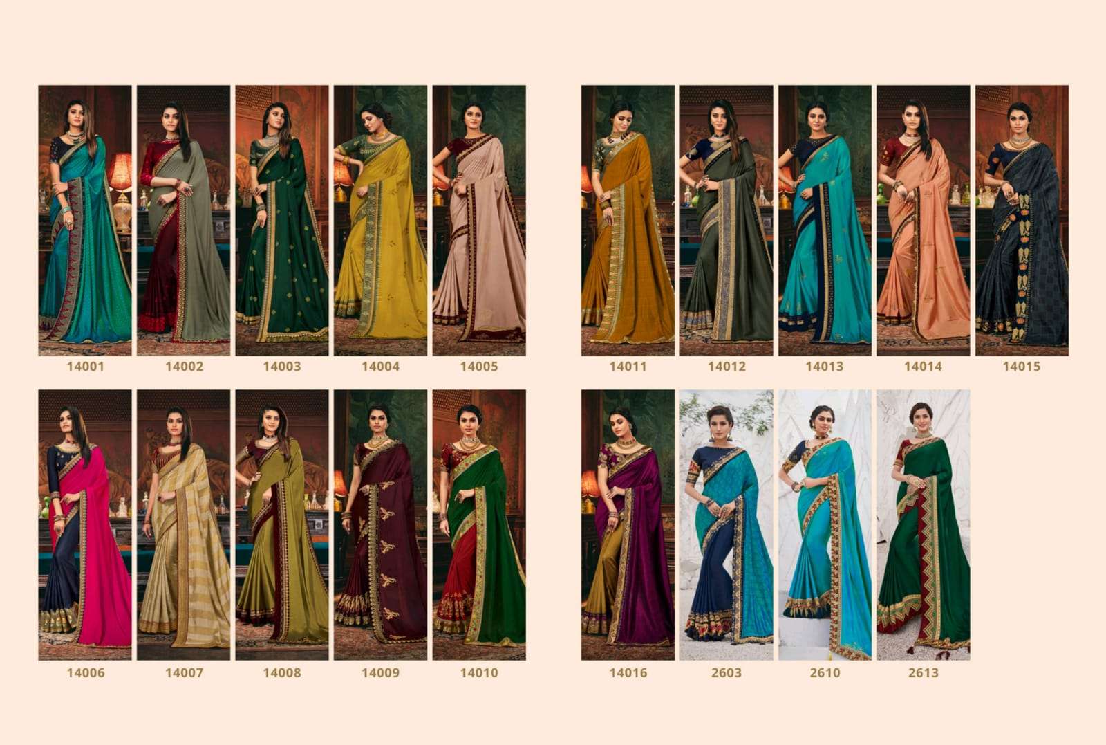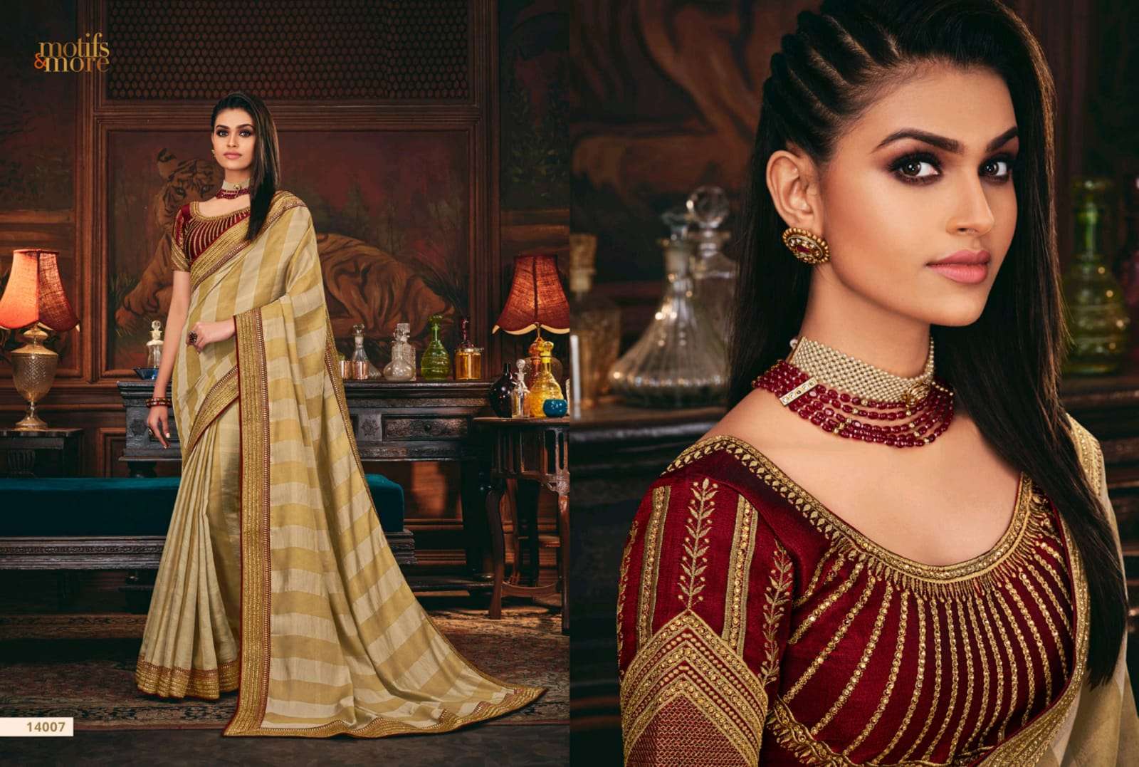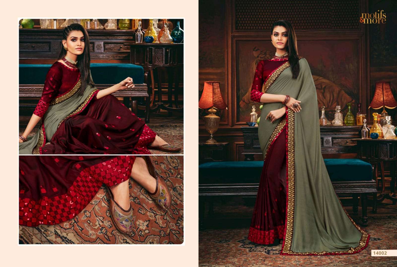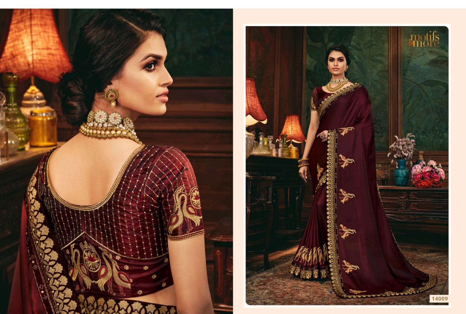 motifs & more vol 14 series 14001-14016 classy look designer fancy indian saree wholesaler