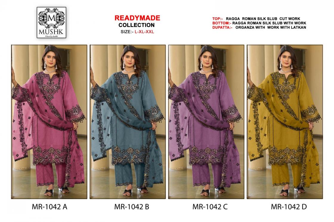 mr 1042 by mushk shraddha designer roman silk readymade pretty pakistani suits
