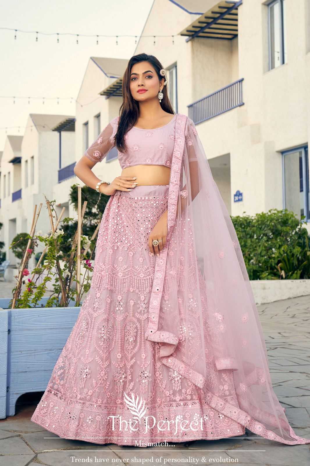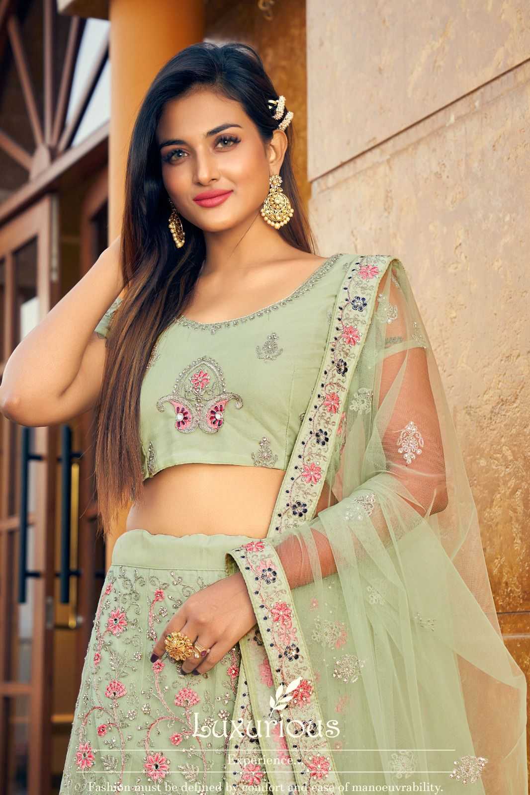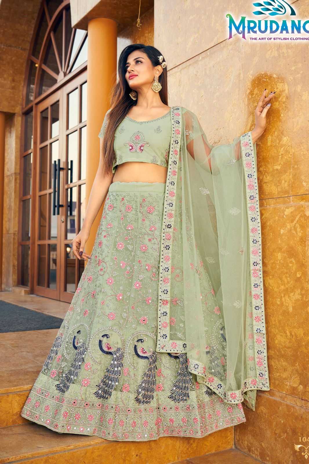 mrudangi 1043-1046 designer embroidery work unstitch lehenga blouse dupatta