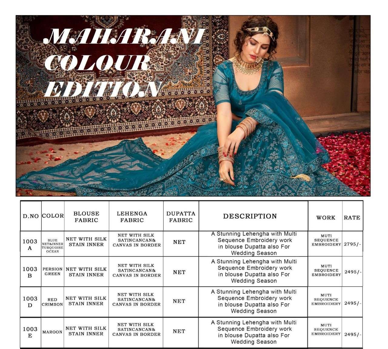 mrudangi maharani colour 1003 design heavy work wedding lehengas