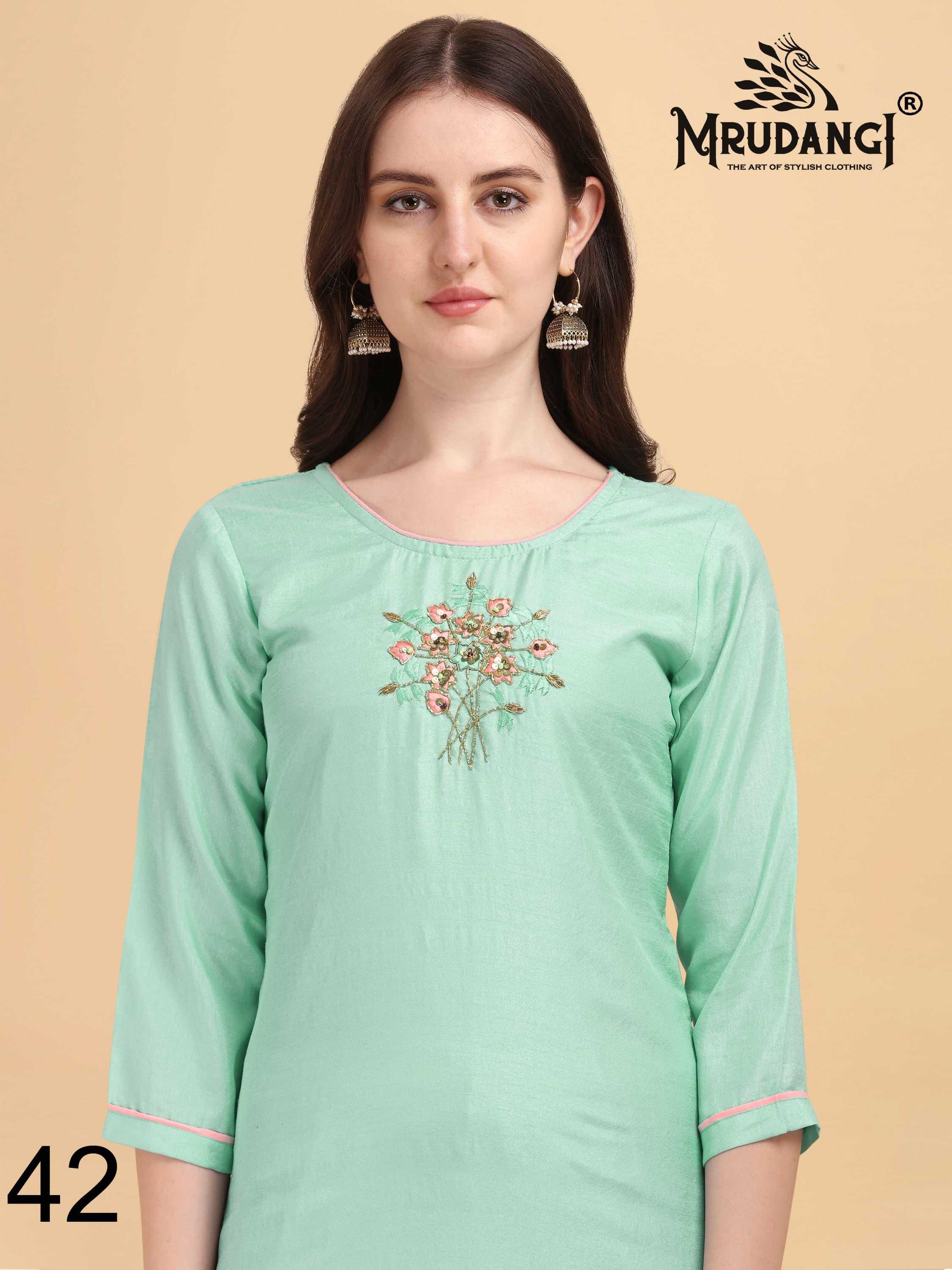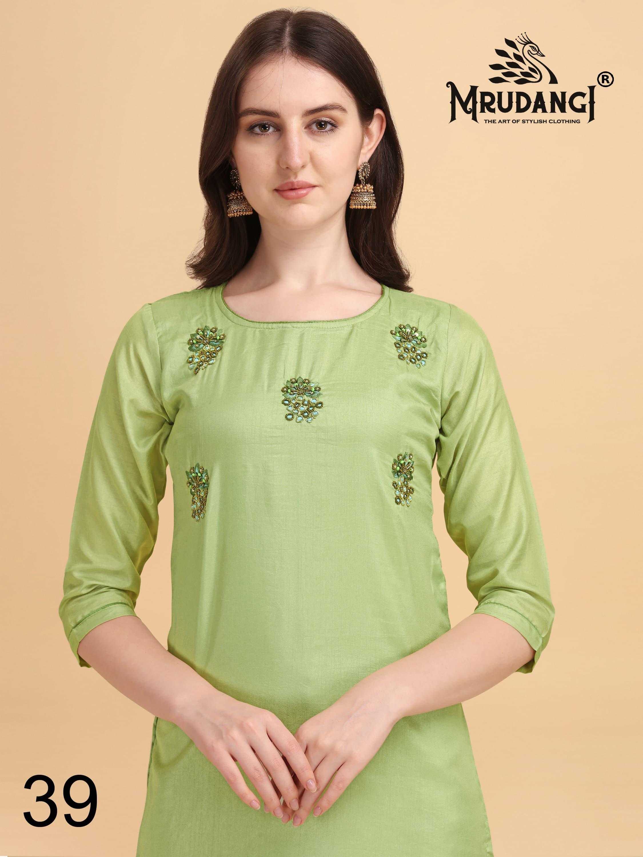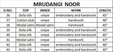 MRUDANGI®️ #NOOR HANDWORK KURTI COLLECTION 36 SERIES FABRIC DESCRIPTION ATTACHED SIZE :- M,L,XL,XXL PRICE :- 595 per pcs GST EXTRA Set to set |
