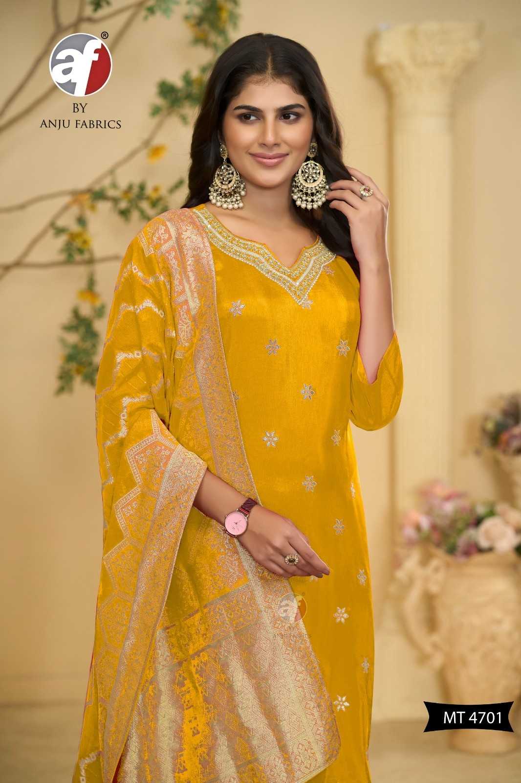 mt 4701 by anju fab festive look dola silk jacquard readymade combo collection suits