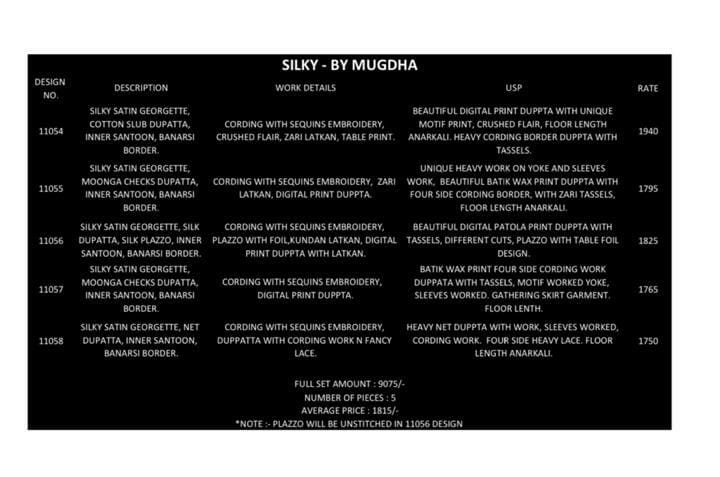 Catlog name - SILKY. Series - 11054 to 11058. Rate - 1815/-₹ Pcs - 05 * GST 12 Percent Extra * Delivery 3-4 days |