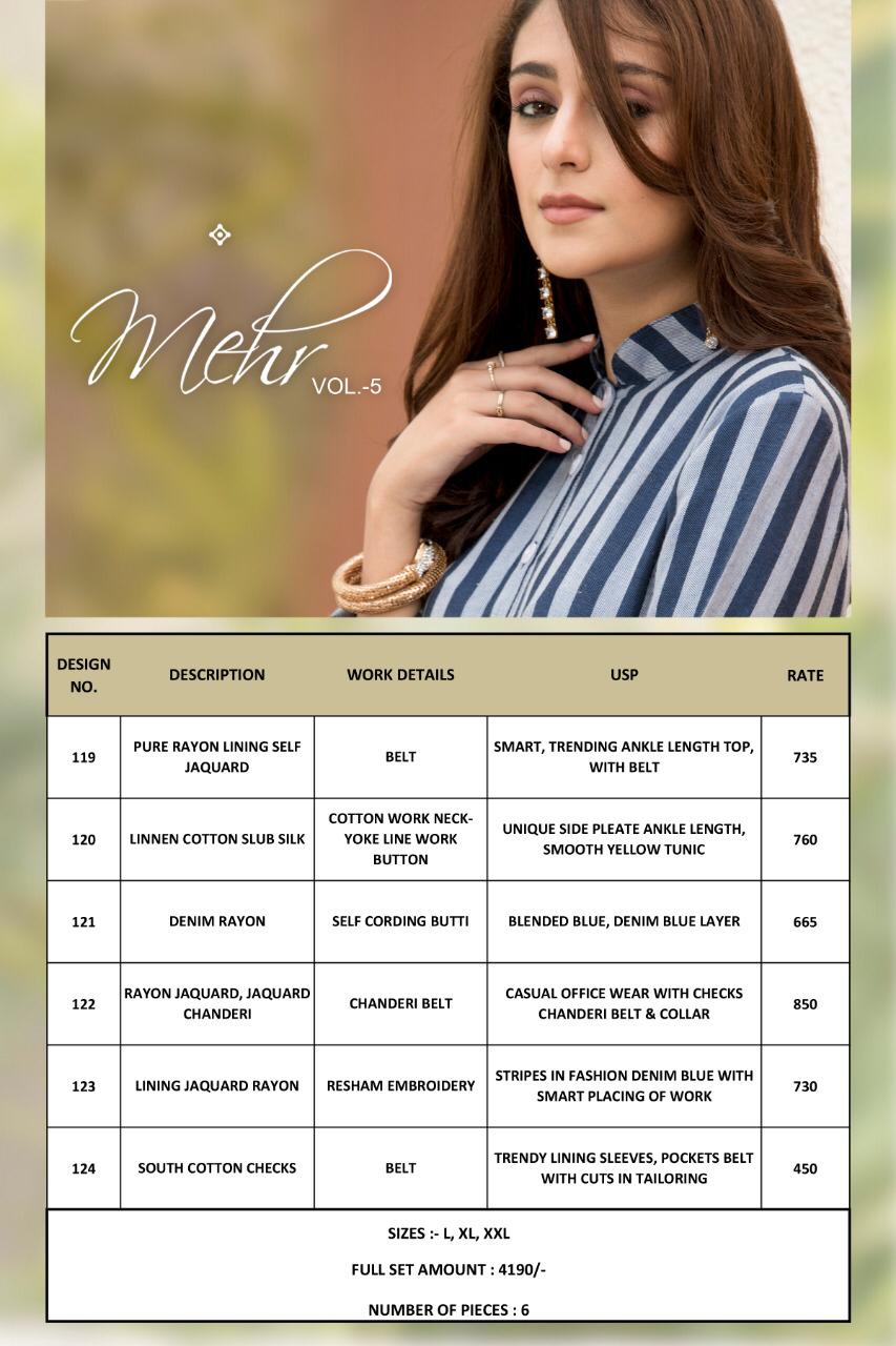 Brand - Mugdha . Catlog name - MEHR VOL -5. Size - L , XL & XXL. Set To Set . GST 5 Percent Extra. Delivery 2-3 DAYS |
