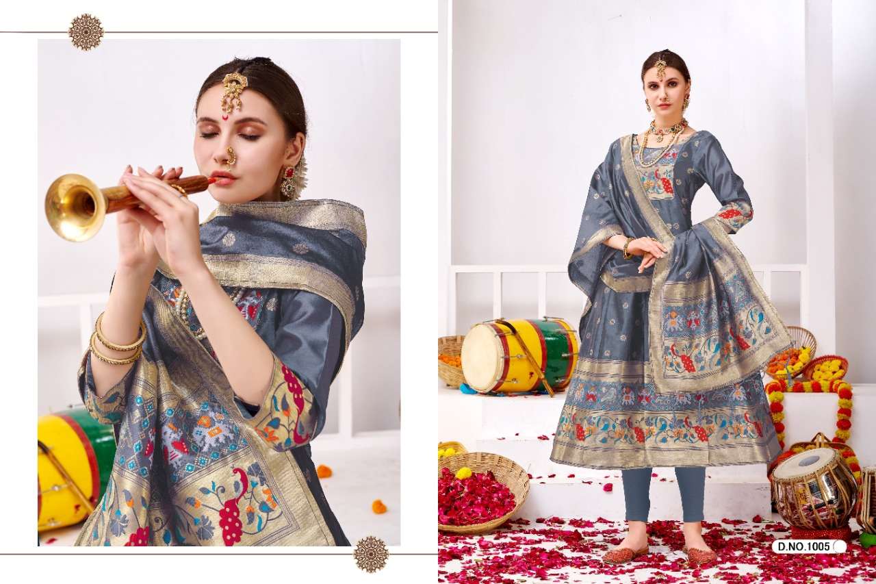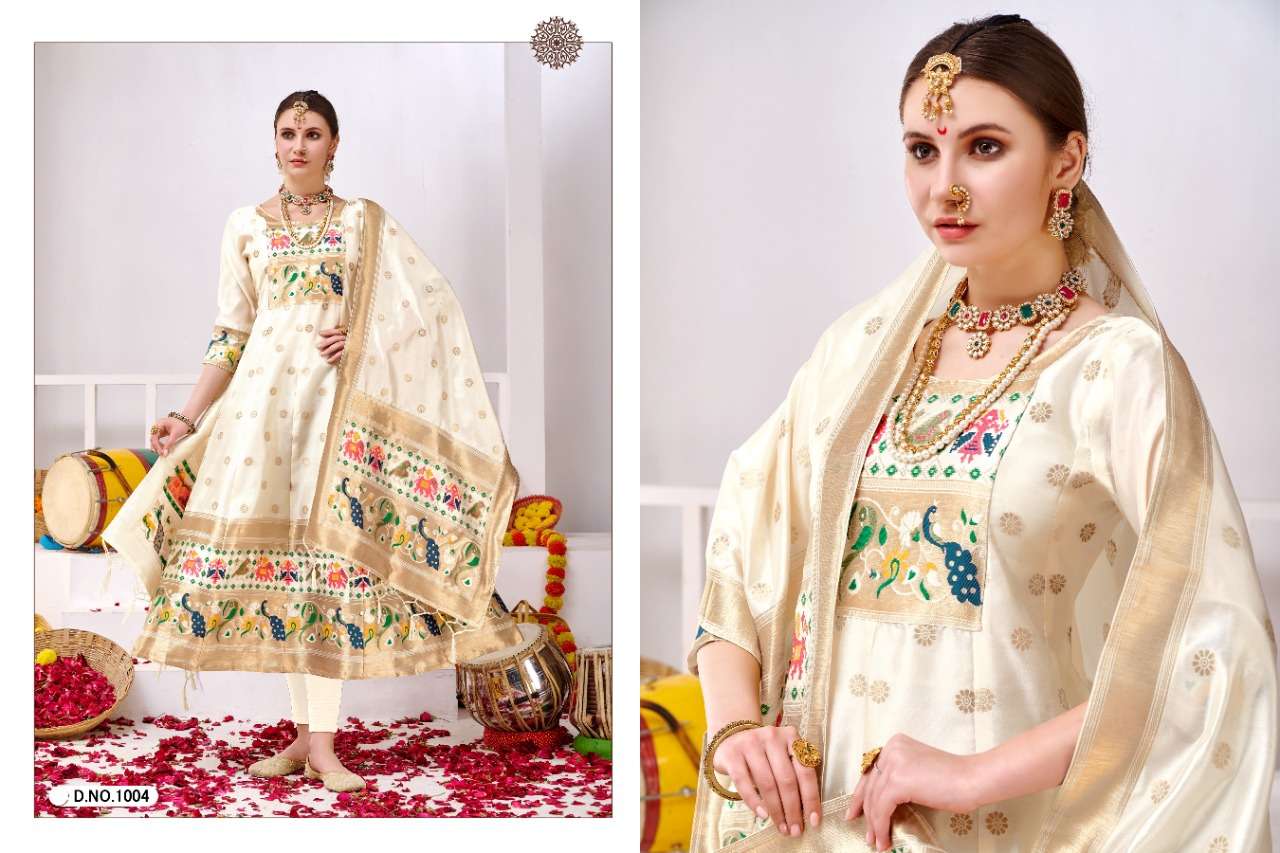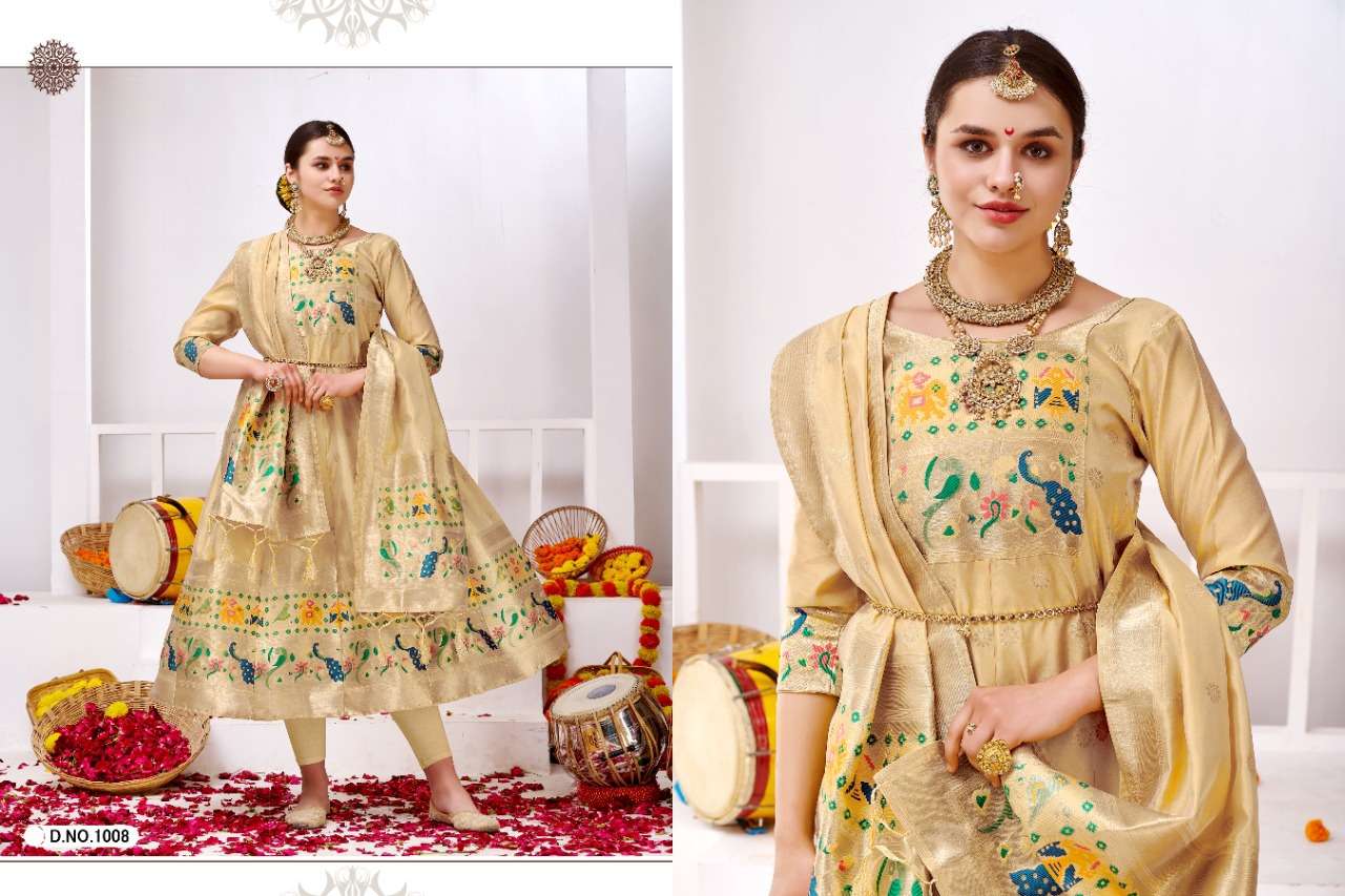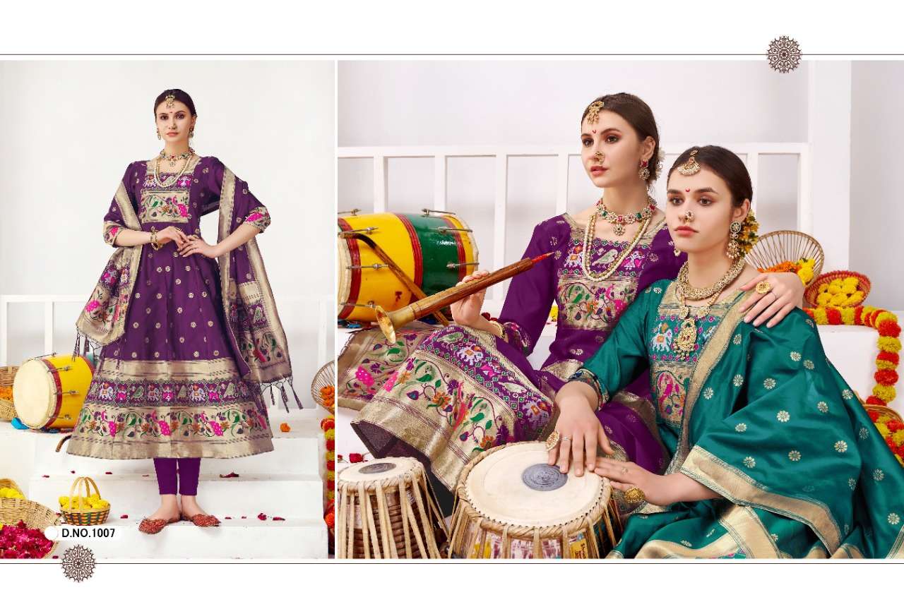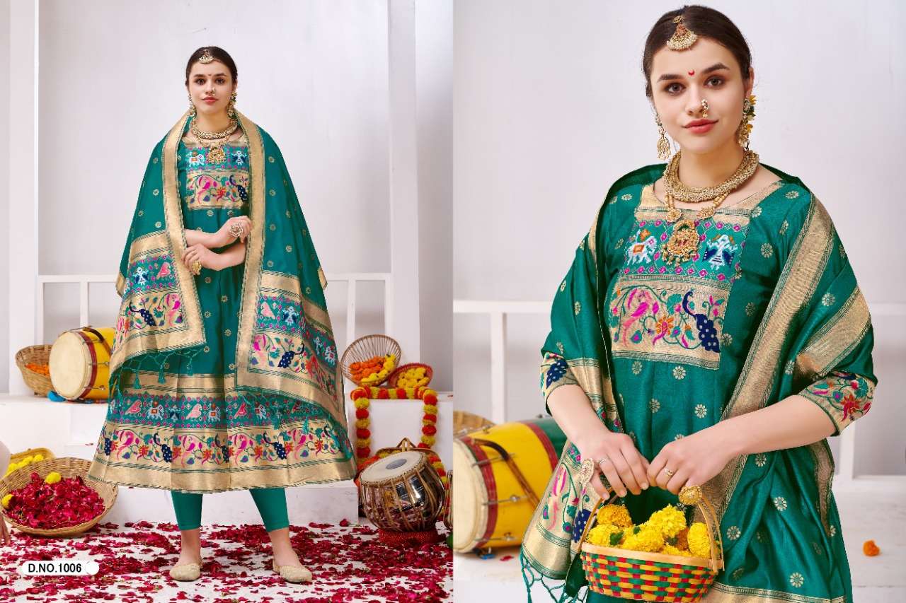 muhurtam paithani by poonam smit silk readymade gown with dupatta set