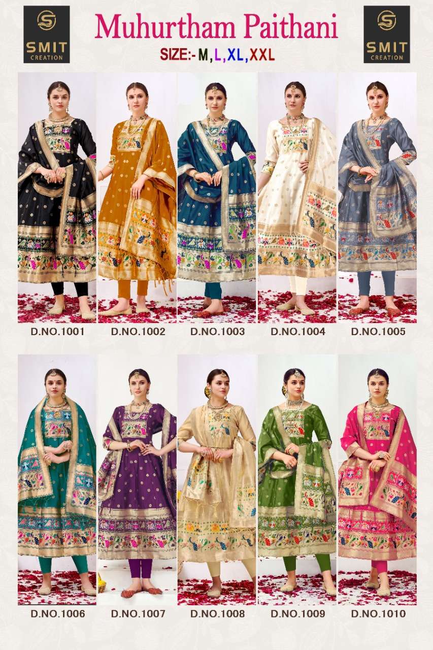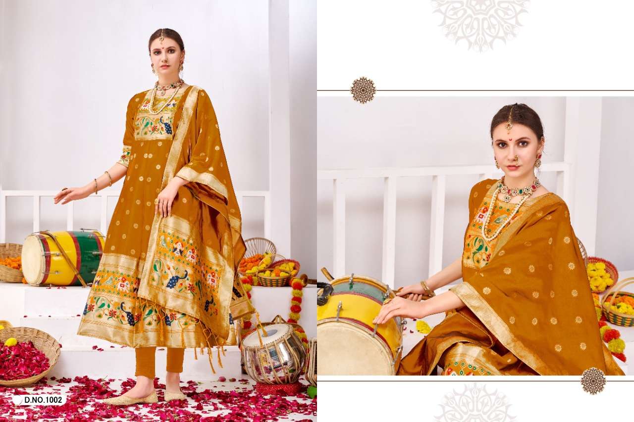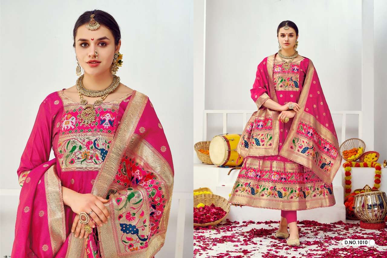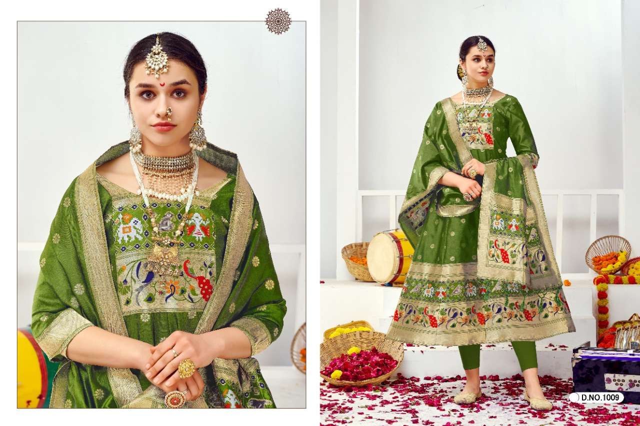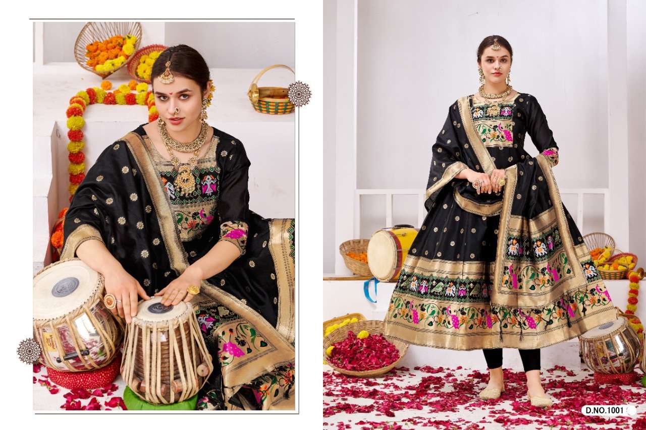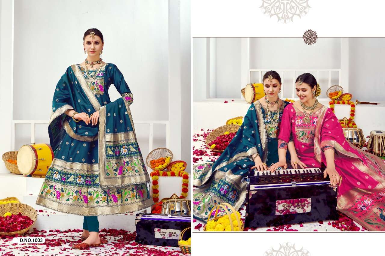 muhurtam paithani by poonam smit silk readymade gown with dupatta set