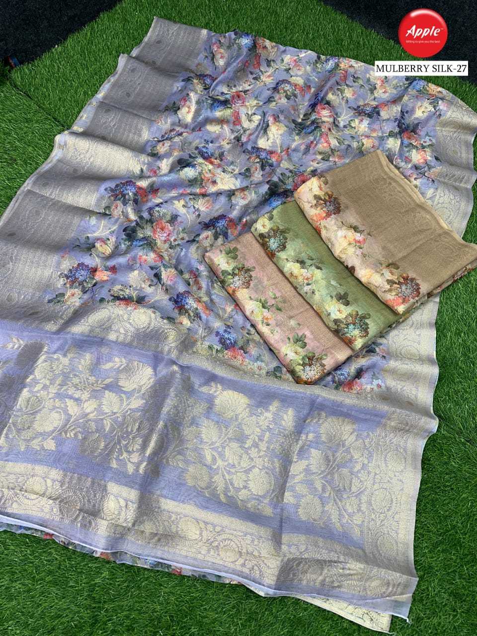 mulberry silk 27 to 32 by apple 4 colour matching comfy wear saree wholesaler