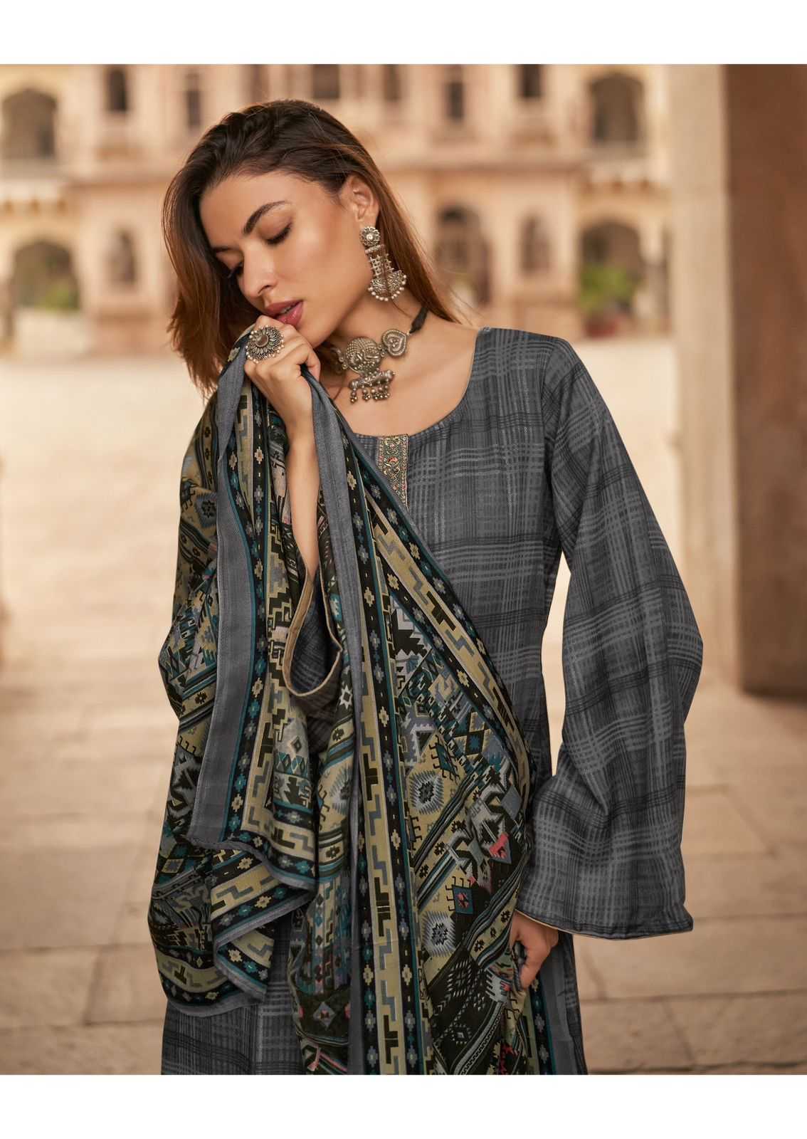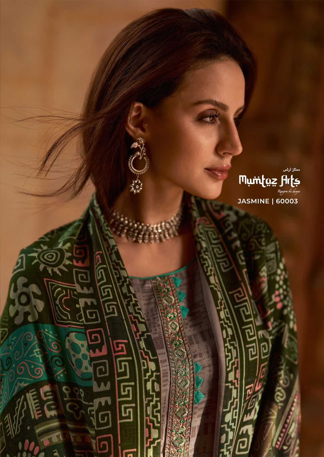 Name - Mumtaz arts JASMINE v.2 Top -Pure pashmina print with Elegant embroidery neck and Daman embroidery Bottom - pure spun pashmina Duppatta - pure soft shawl digital print Suits -6 |