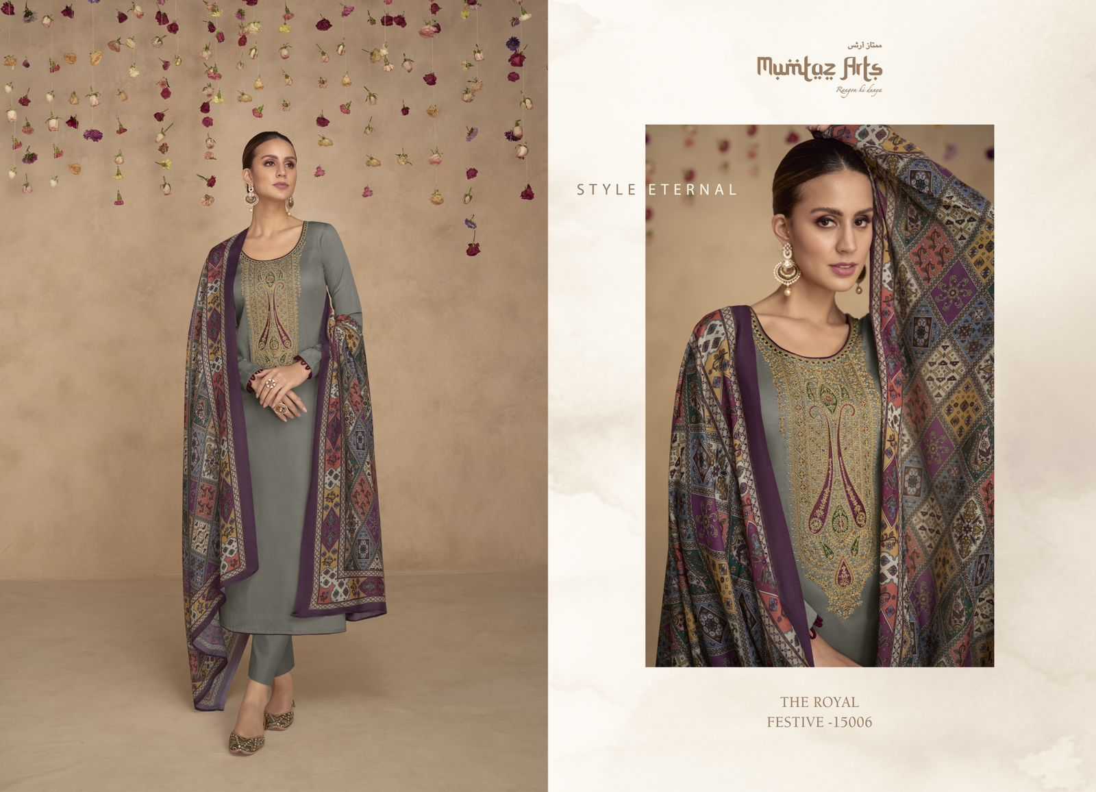 mumtaz royal festive festive wear unstitch salwar kameez with digital mul dupatta