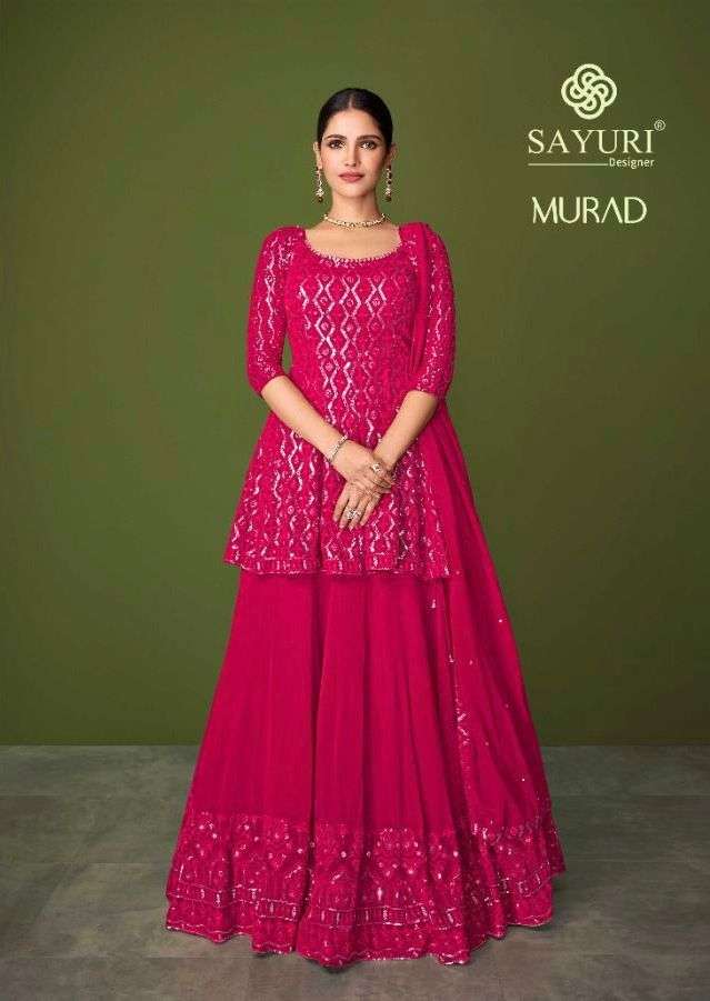 SAYURI DESIGNER MURAD (5 PCS) FABRIC DETAILS TOP - REAL GEORGETTE PRICE -2699 per pcs SIZE - M L XL XXL |