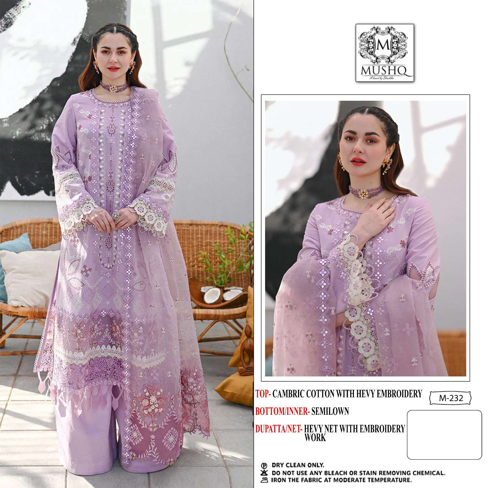mushq shraddha designer 231-234 designer pakistani salwar kameez material