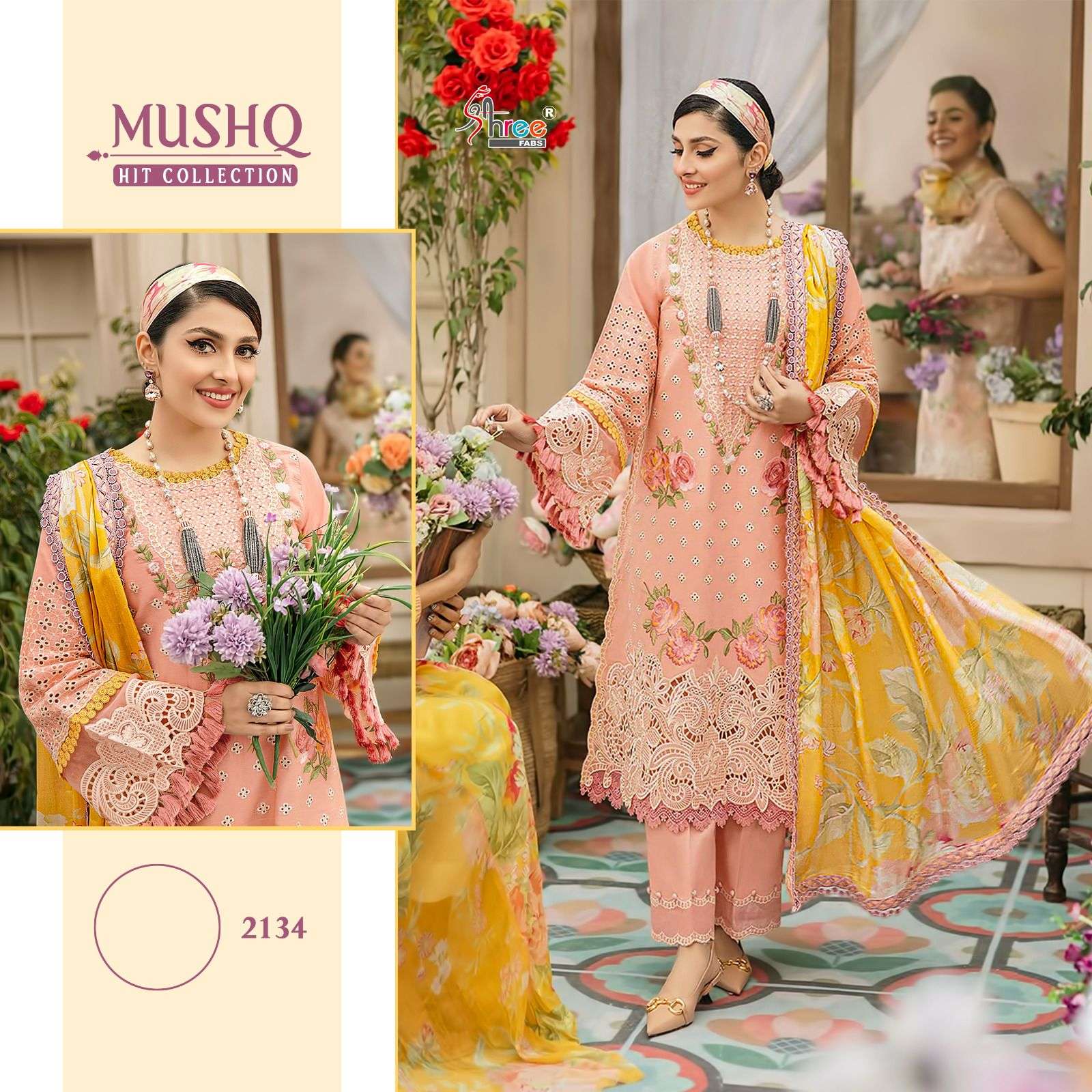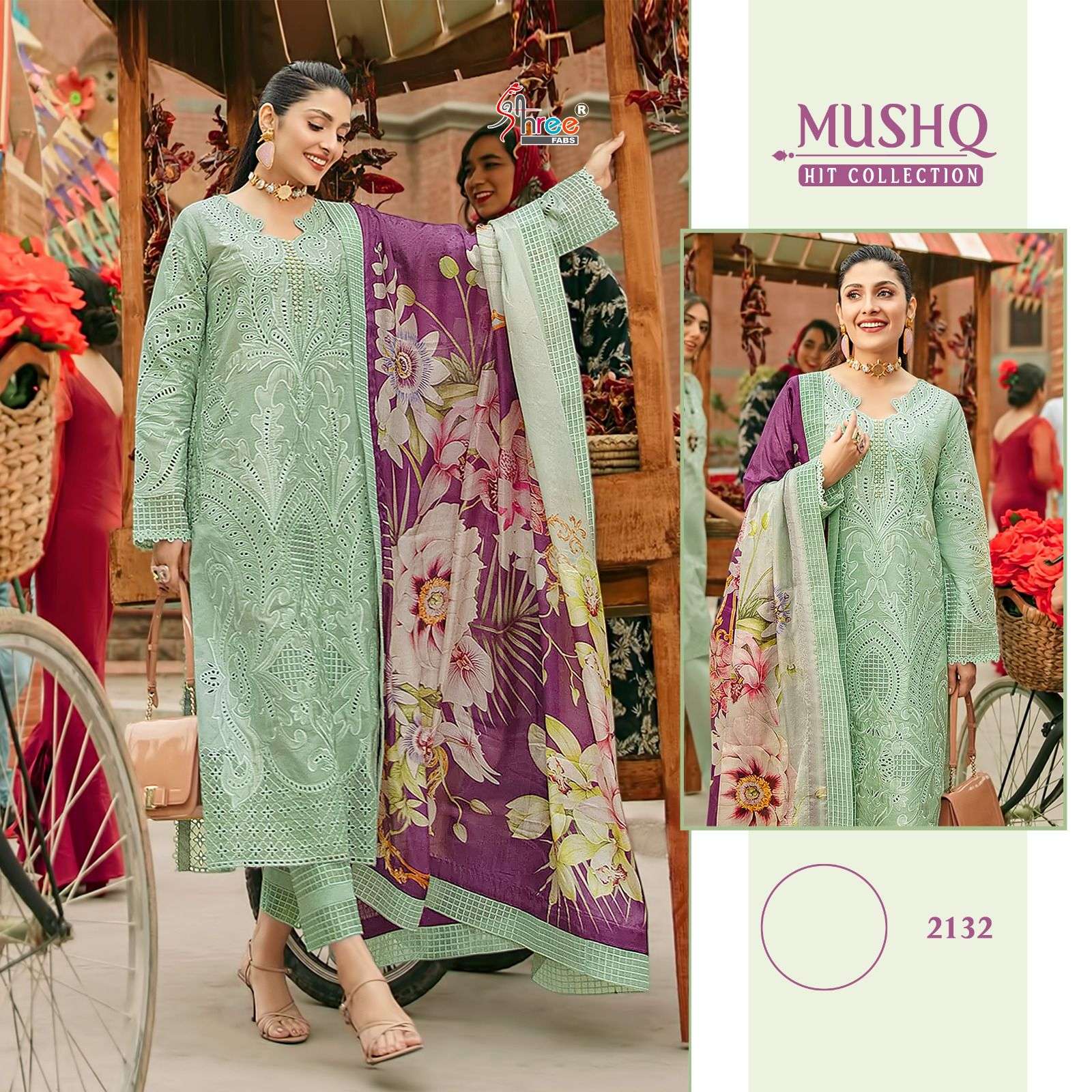 MUSHQ SUPER HIT COLLECTION TOP COTTON WITH HEAVY SELF EMBRODERY BOTTOM SEMILAWN DUPPTA COTTON DIGITAL PRINT DESIGNS 4 RATE 1099/- Shree fabs surat®️ |