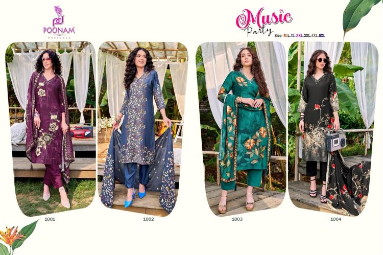music party by poonam designer fully stitch muslin shimmer classic big size suit