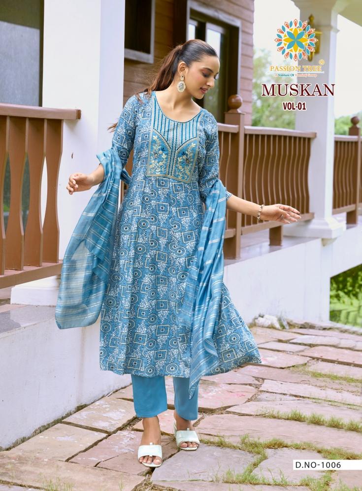 muskan vol 1 by passion tree rayon anarkali classic fully stitch big size suits
