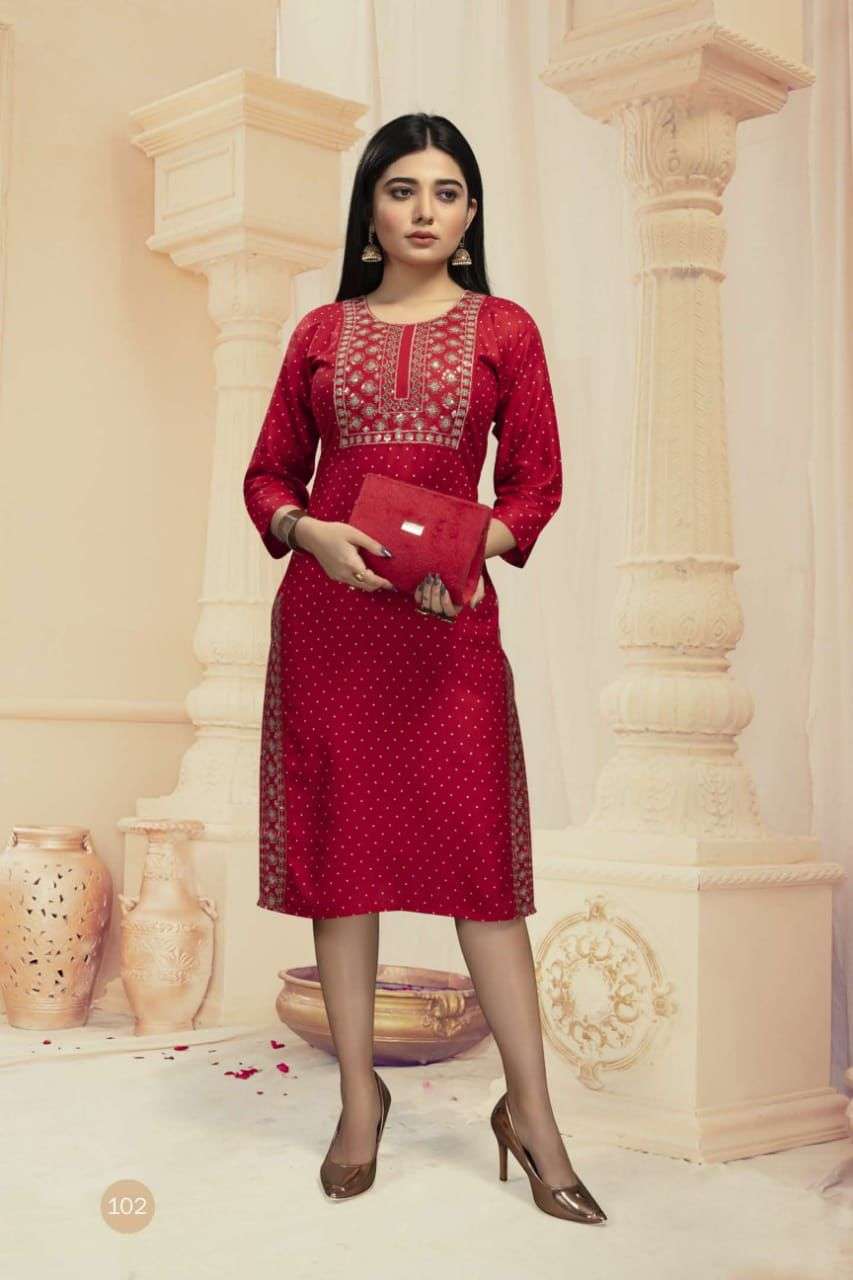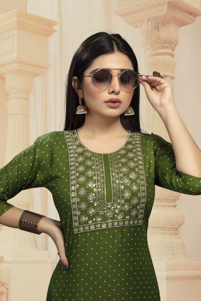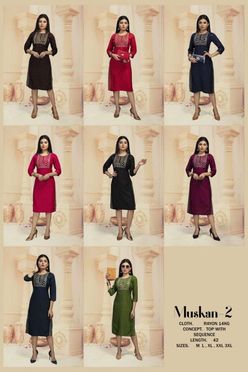 MUSKAN VOL.2 BY BEAUTY QUEEN HEAVY RAYON TOP WITH SEQUENCE EMBROIDERY KURTI CATALOG WHOLESALER BEST RATE