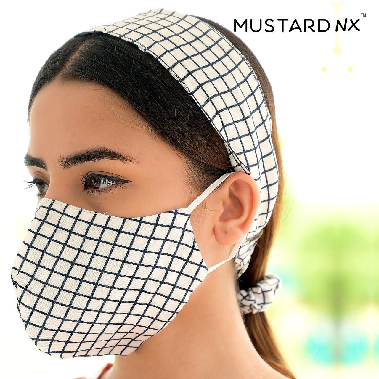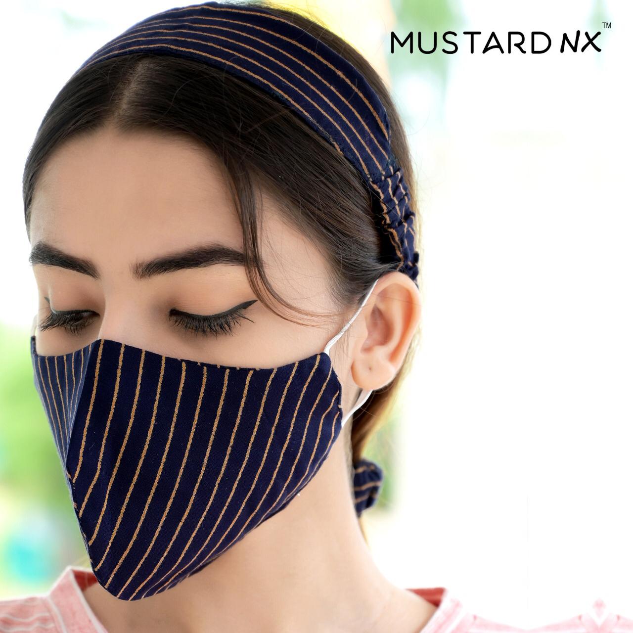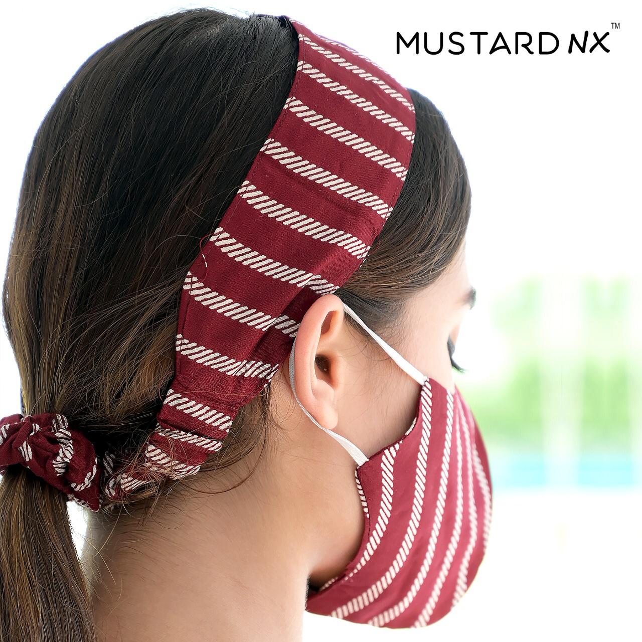 Mustard Nx Present 3 Piece Combo Hair Band Rubber And Mask With Comfortable Loops