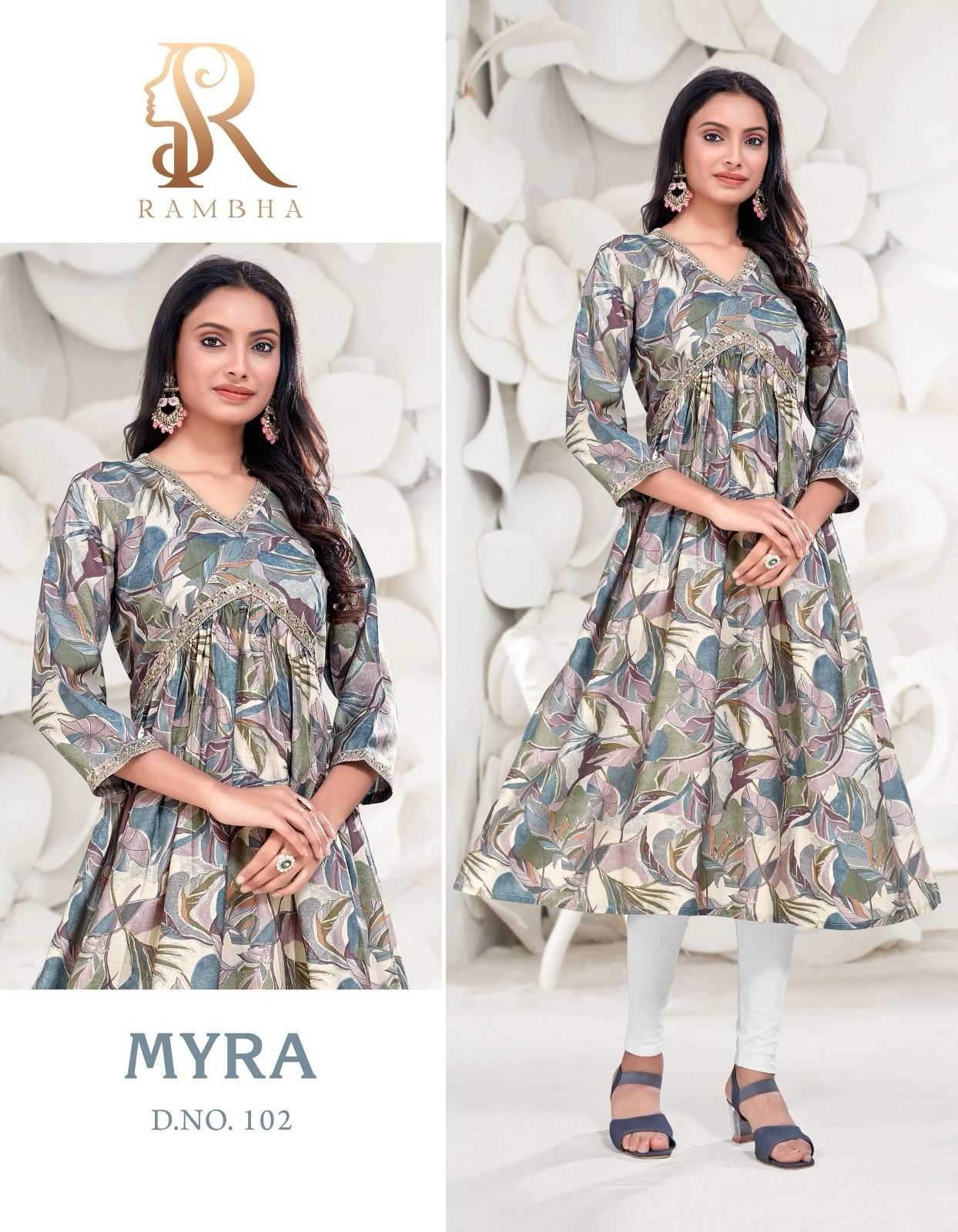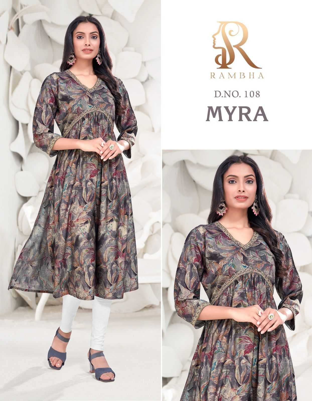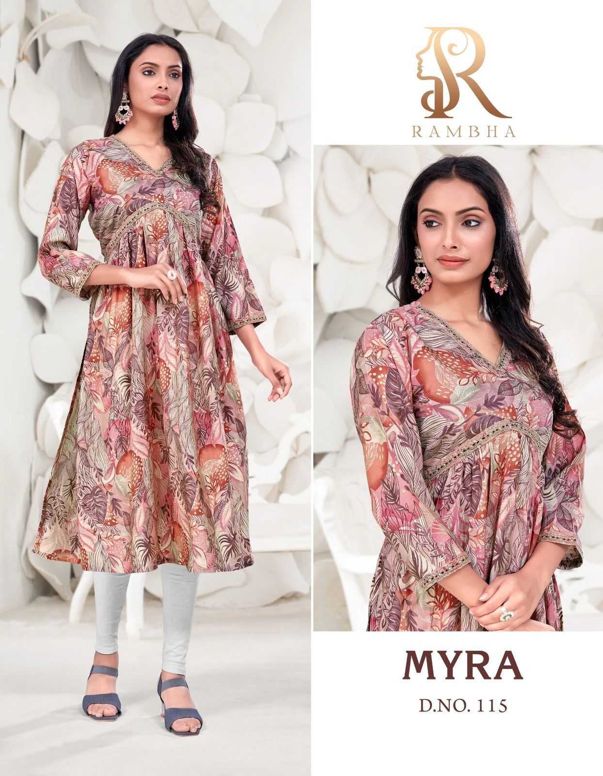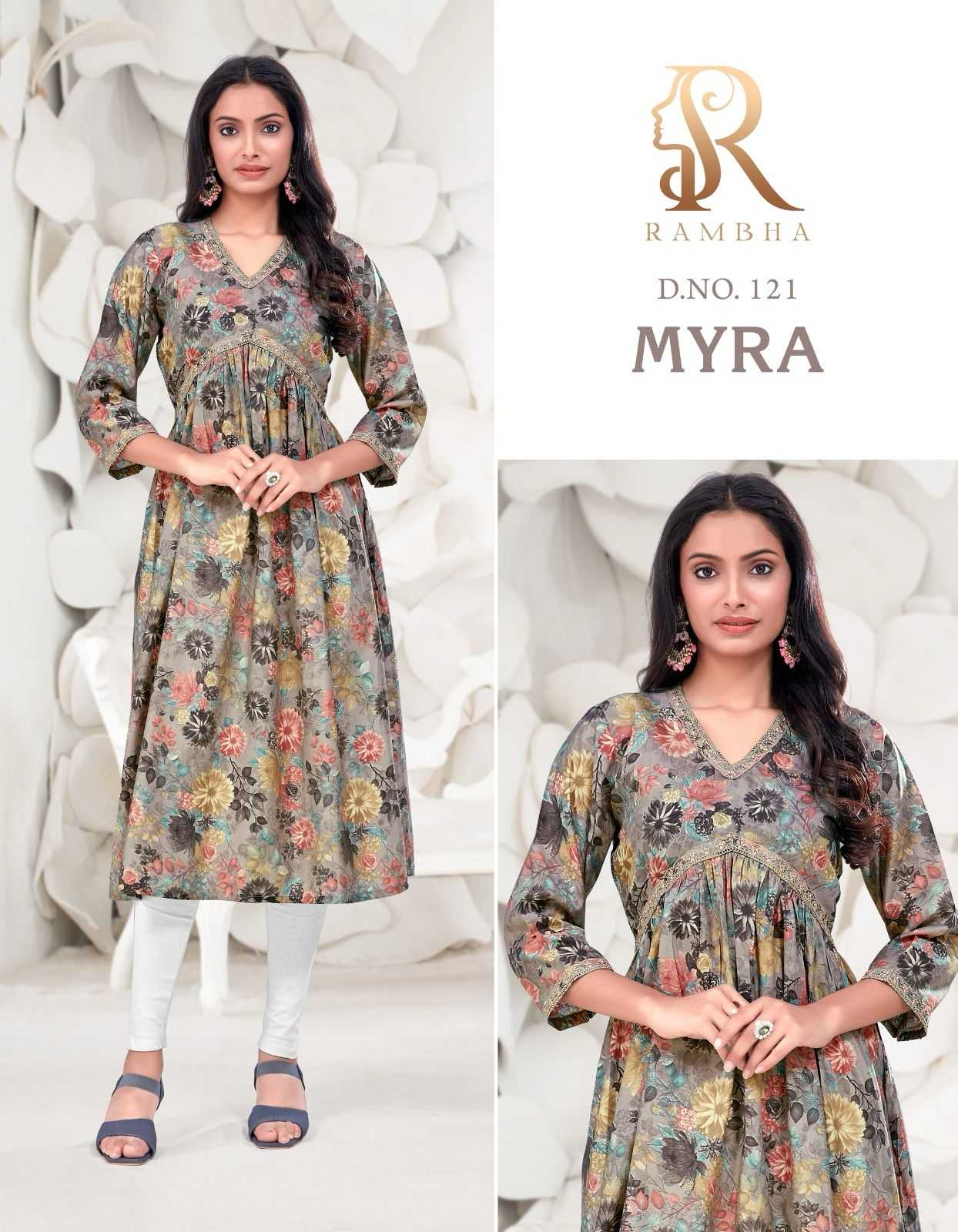 myra by rambha beautiful look alia modal chanderi readymade combo set flair long kurti