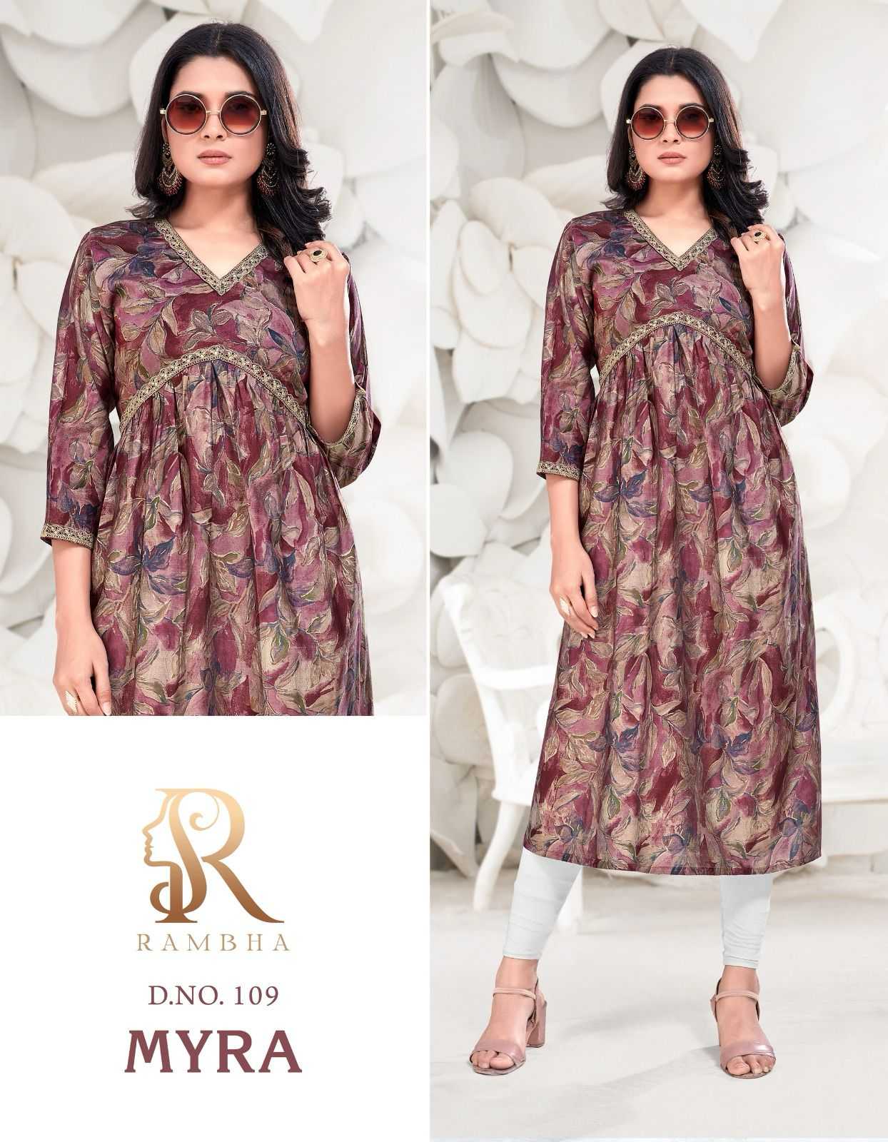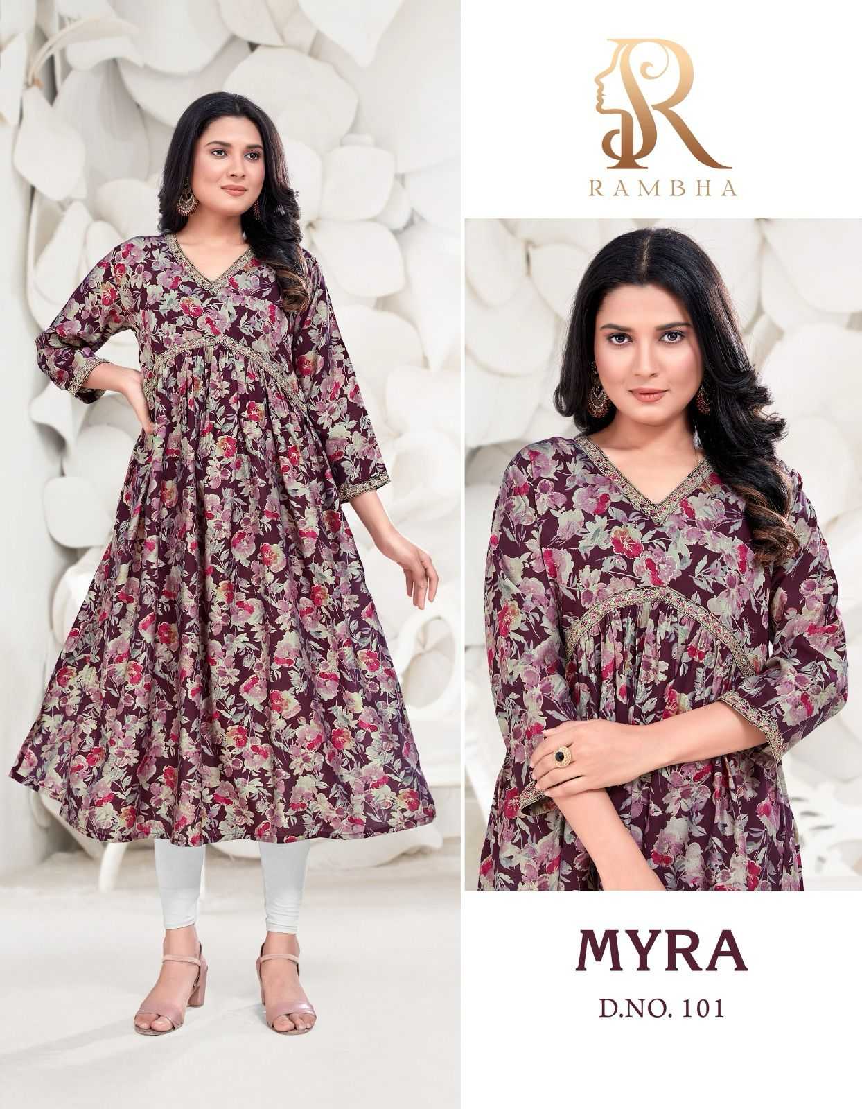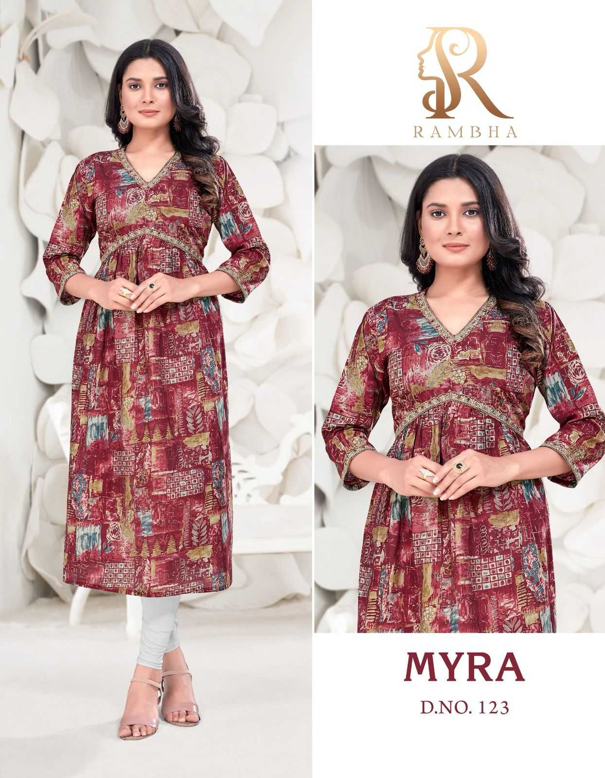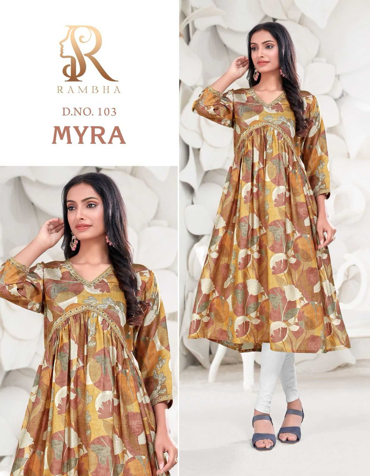myra by rambha beautiful look alia modal chanderi readymade combo set flair long kurti