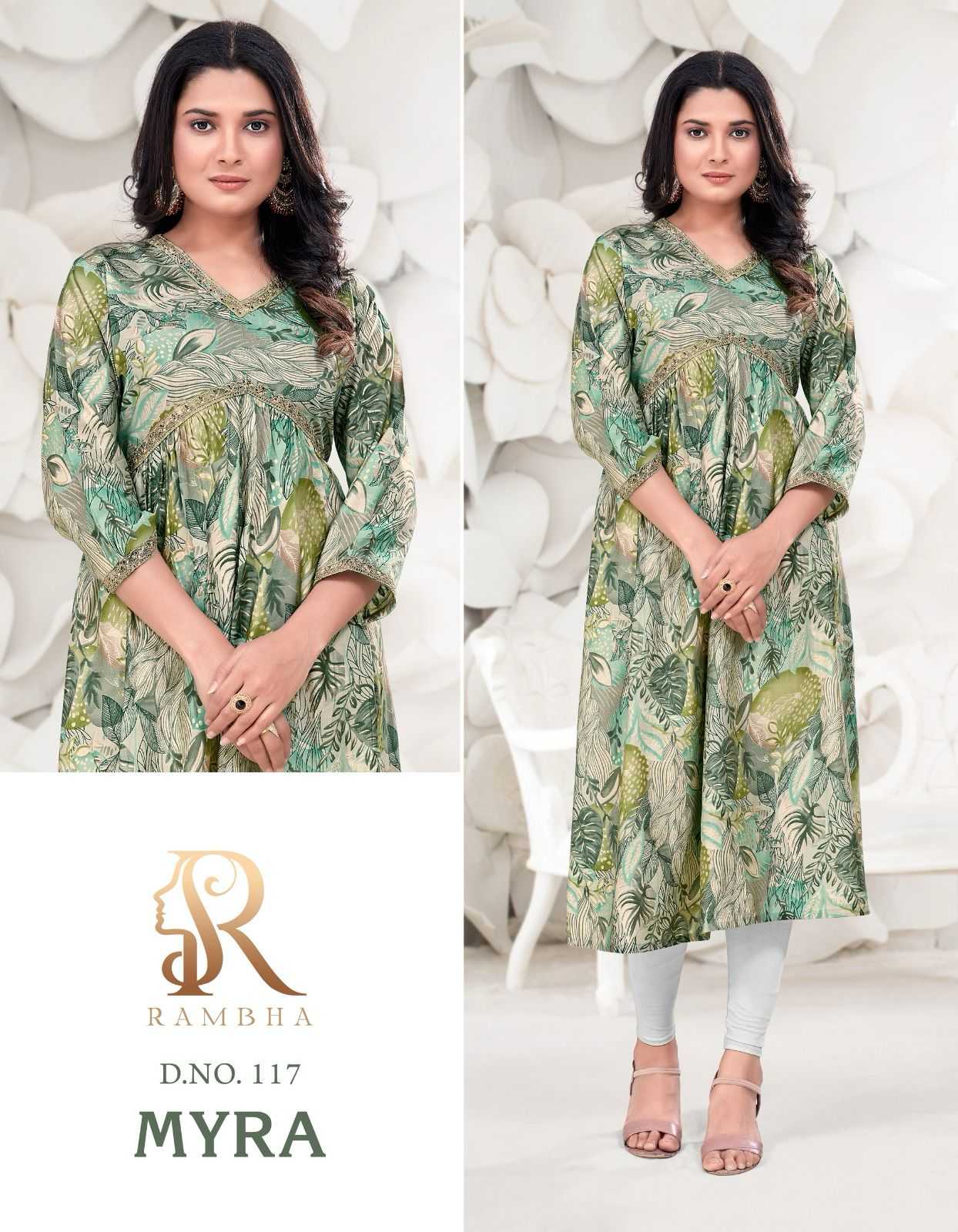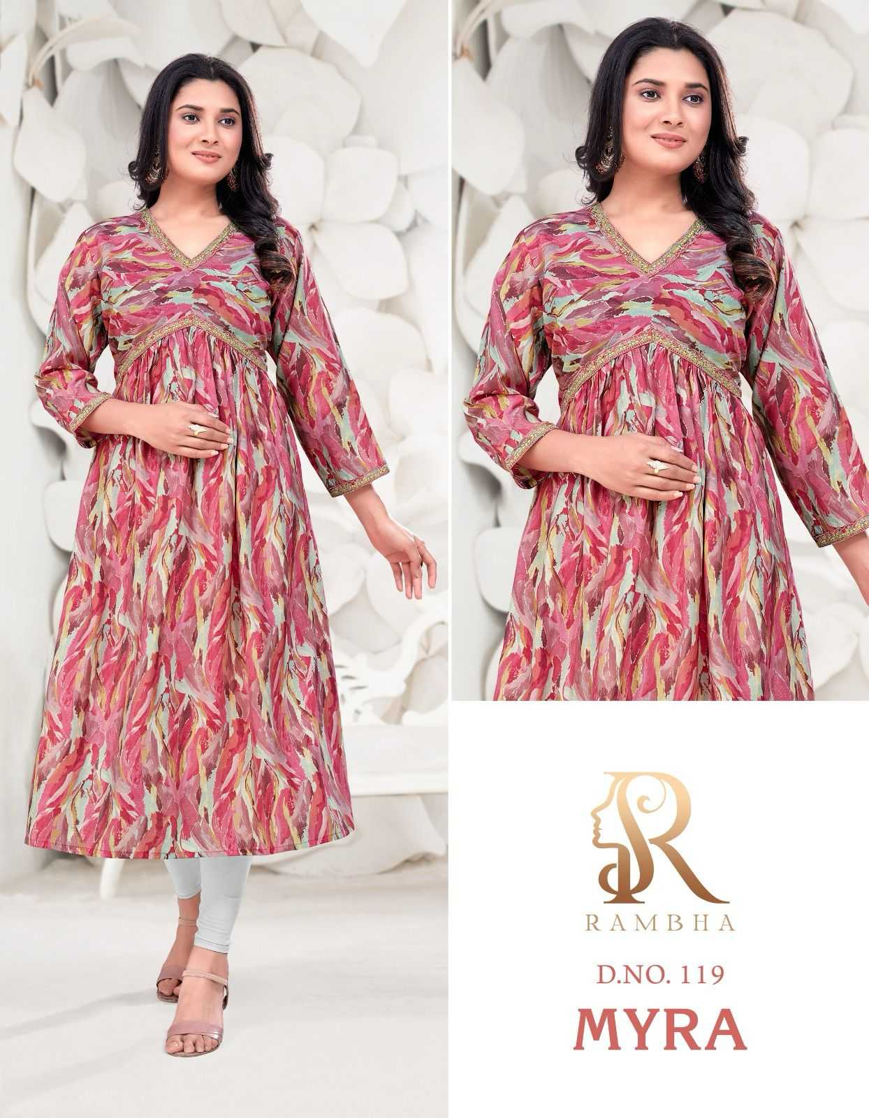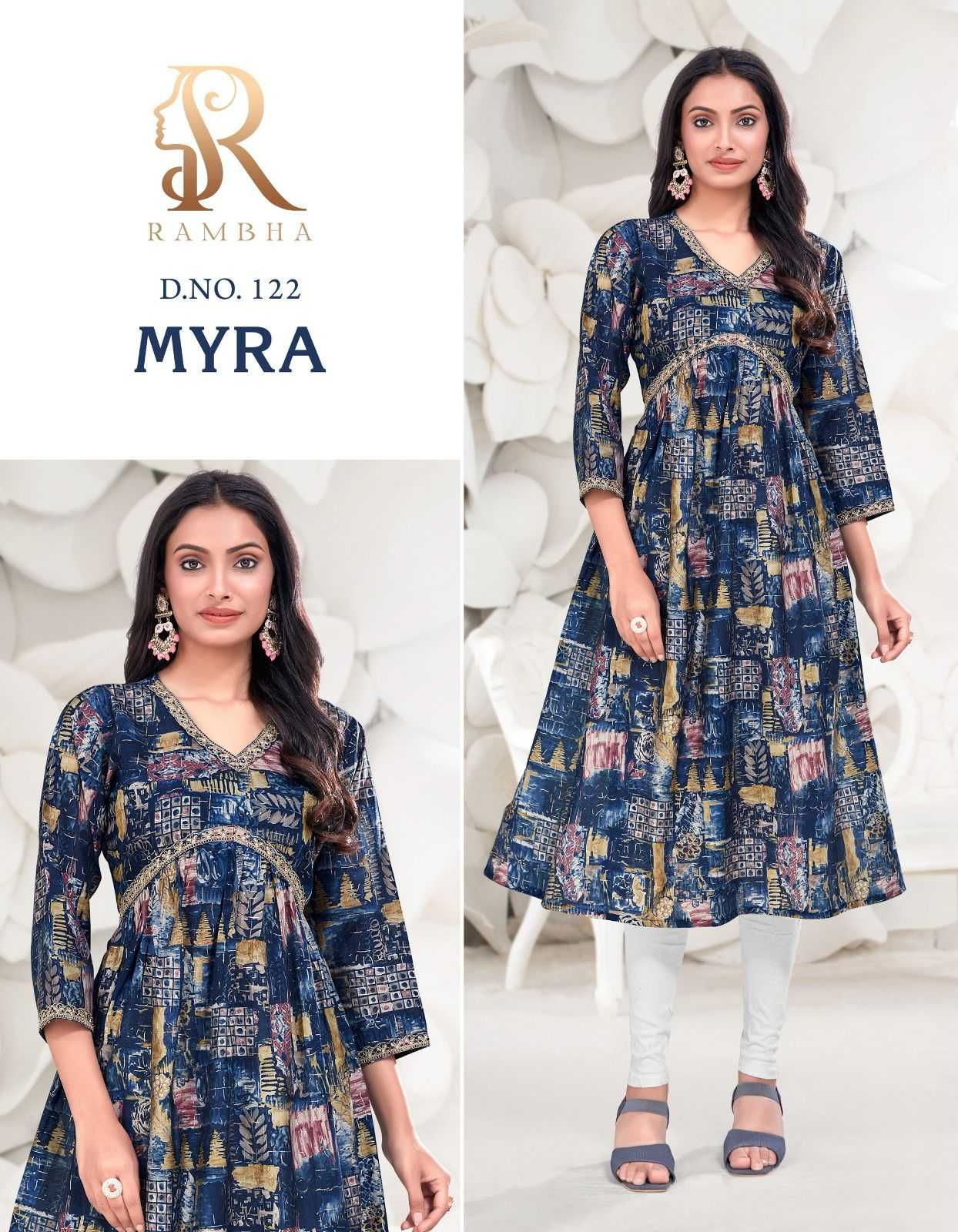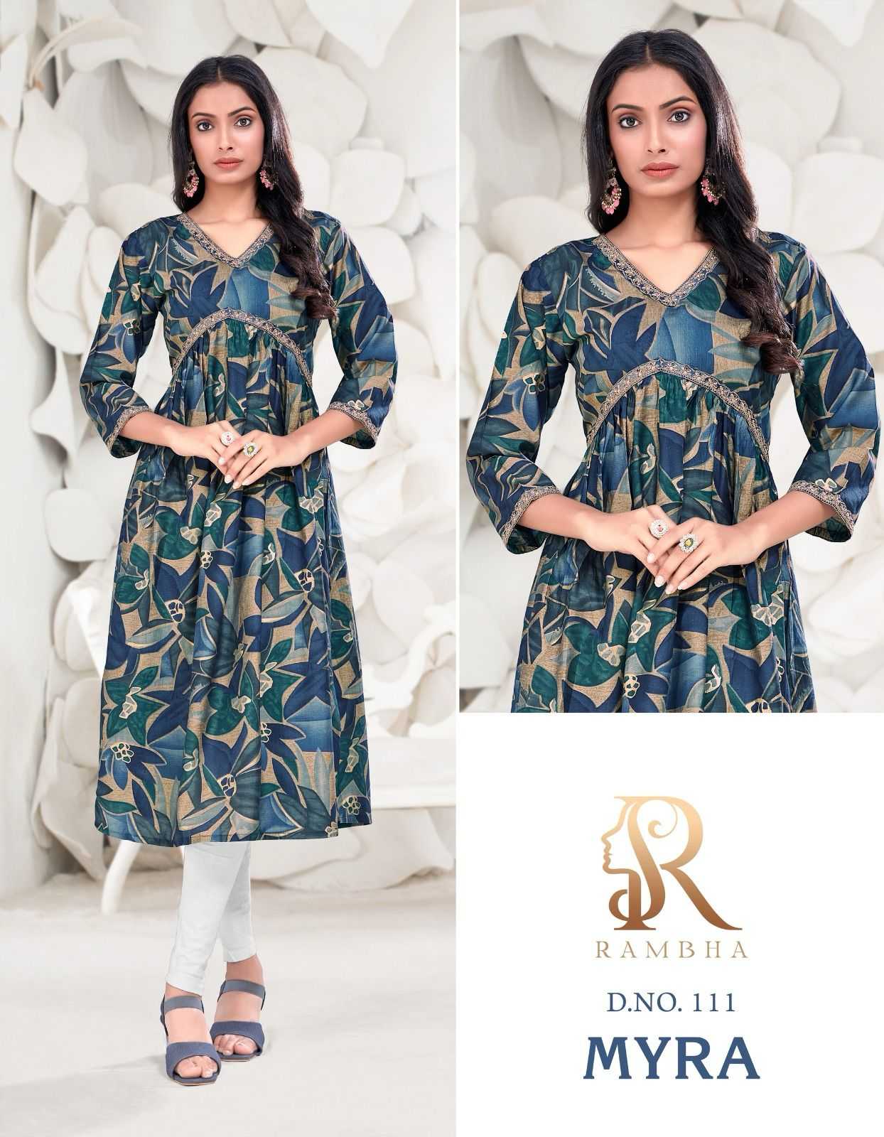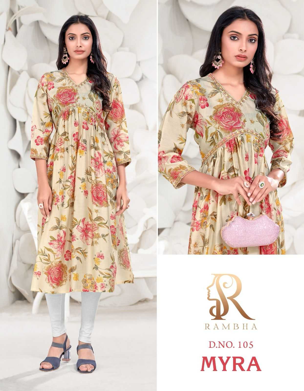myra by rambha beautiful look alia modal chanderi readymade combo set flair long kurti
