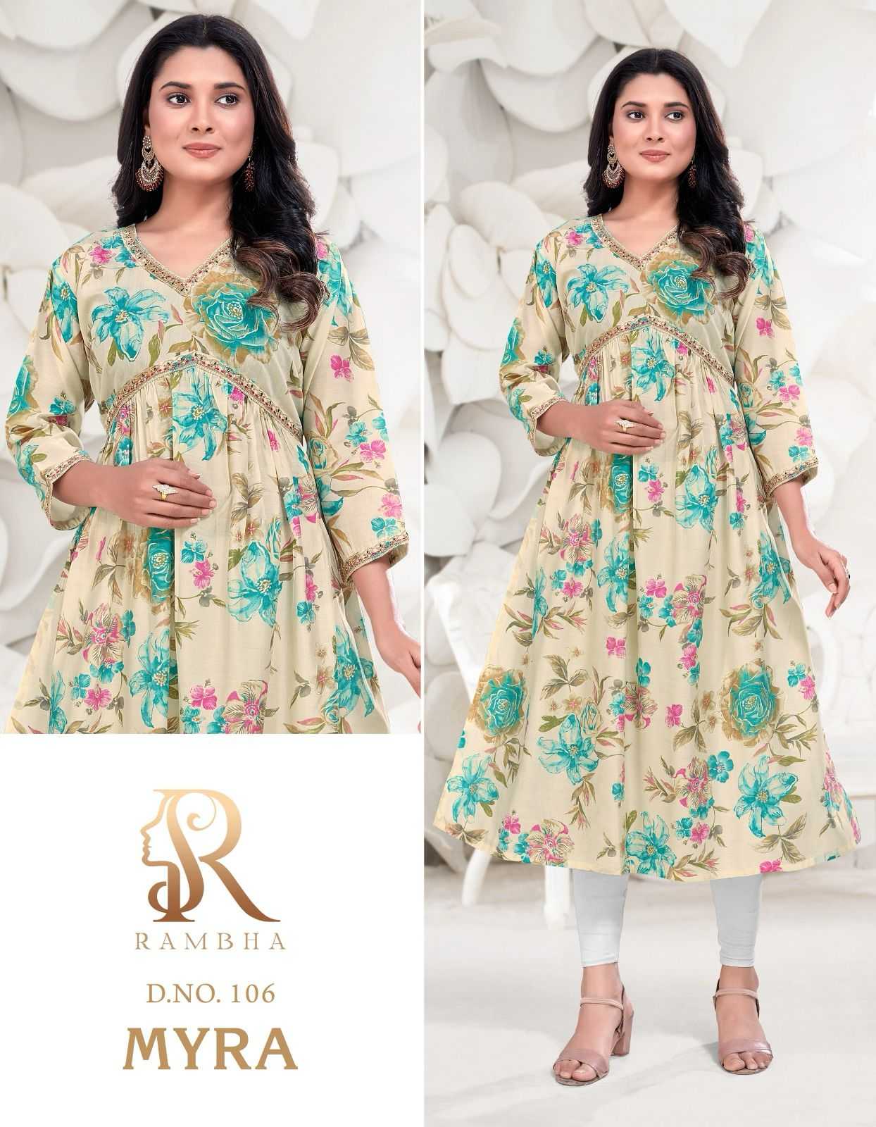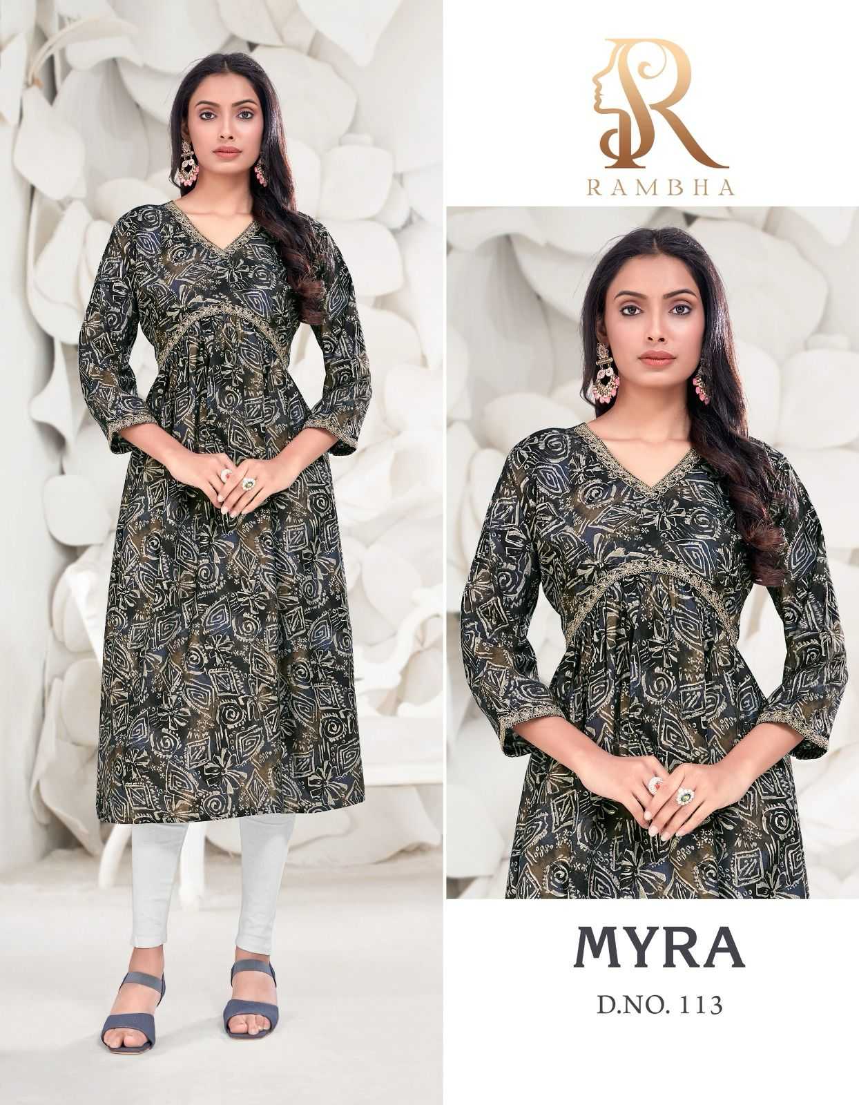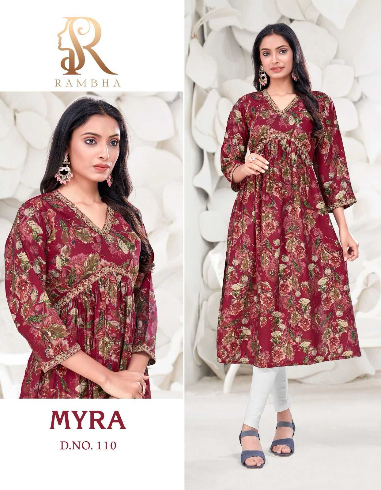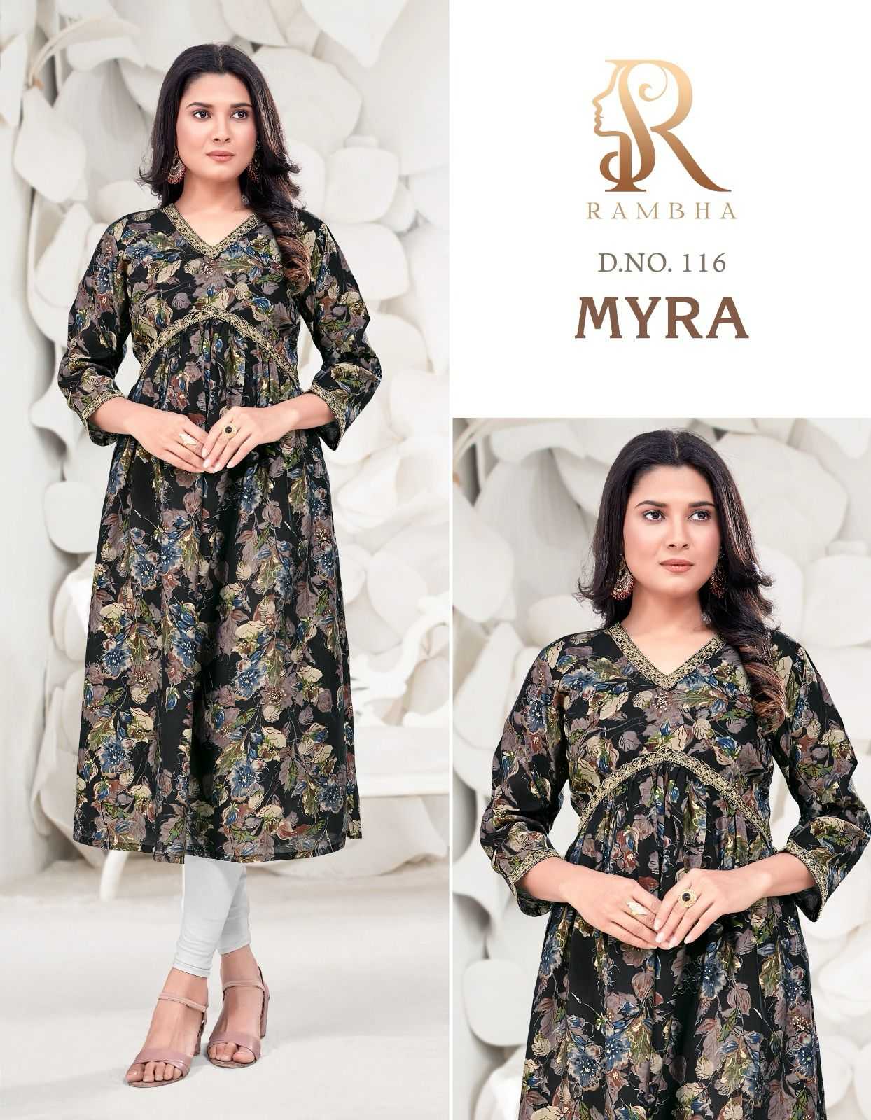 myra by rambha beautiful look alia modal chanderi readymade combo set flair long kurti