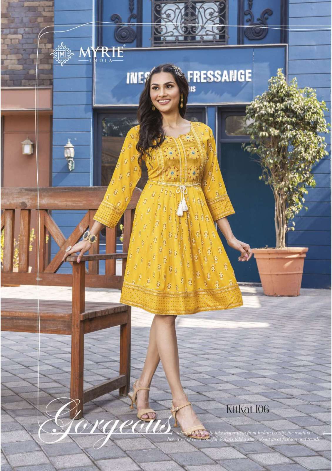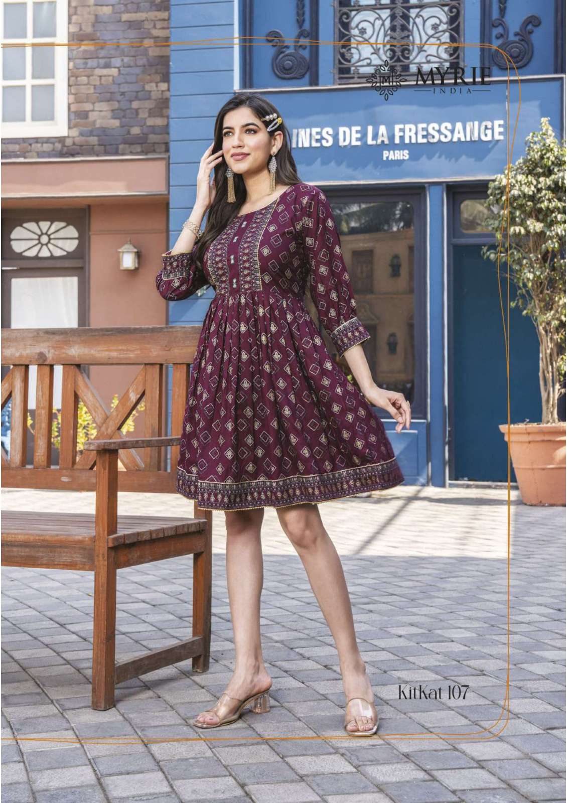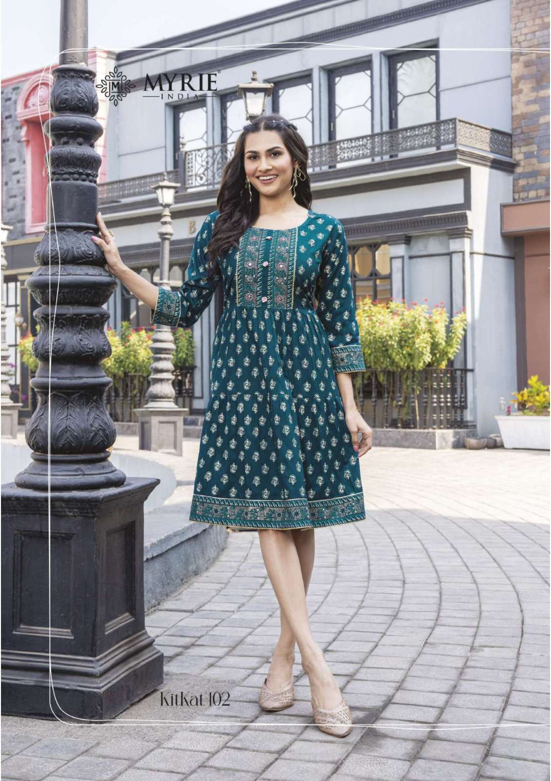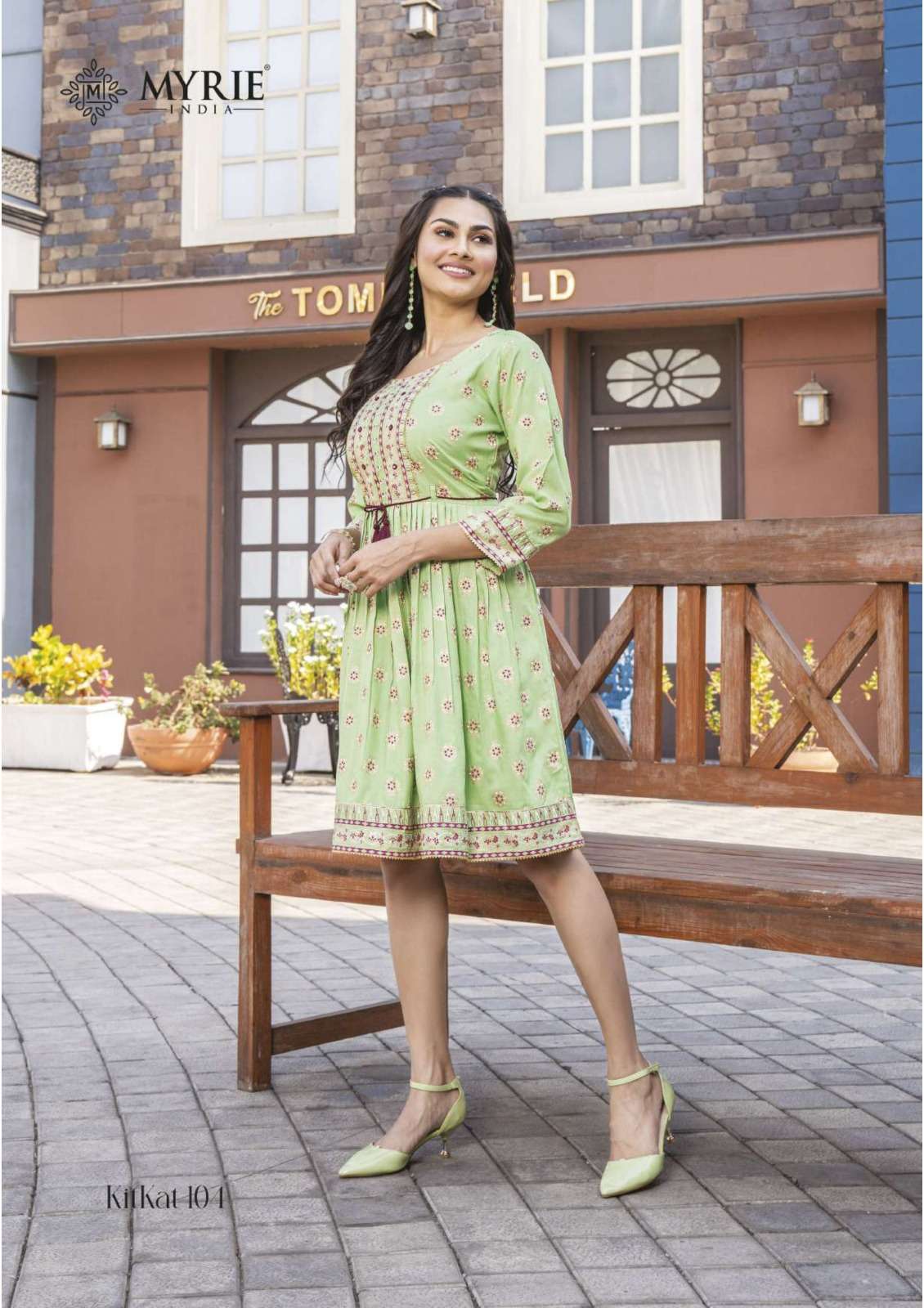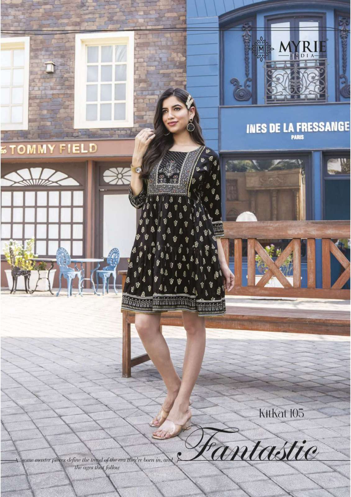 🪷 MYRIE INDIA 🪷 Look stylish in our new Affordable range Tunic top printed for all day comfort Catalog :- 🍫 KITKAT 🍫 TOP :- Heavy Reyon Print Tunic top with embroidery work