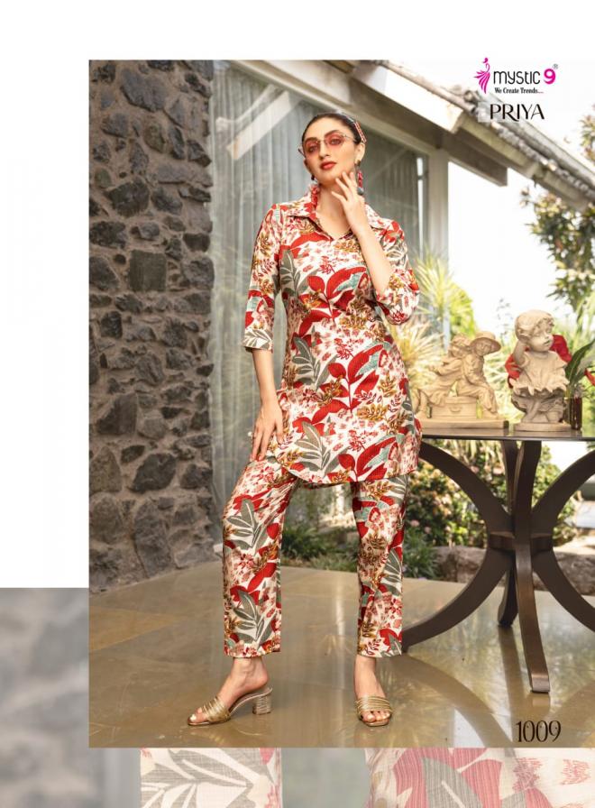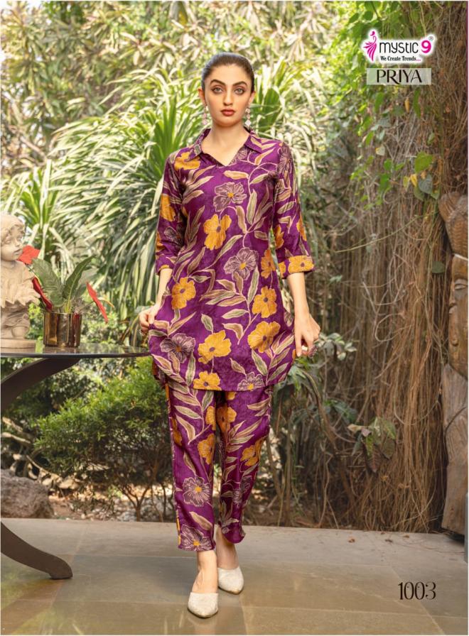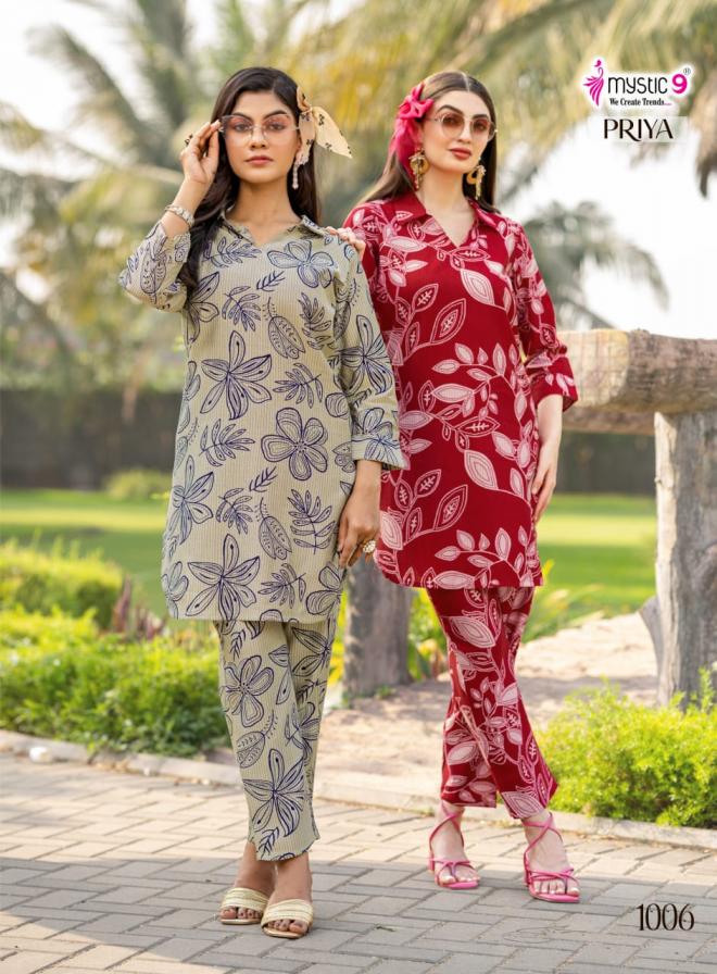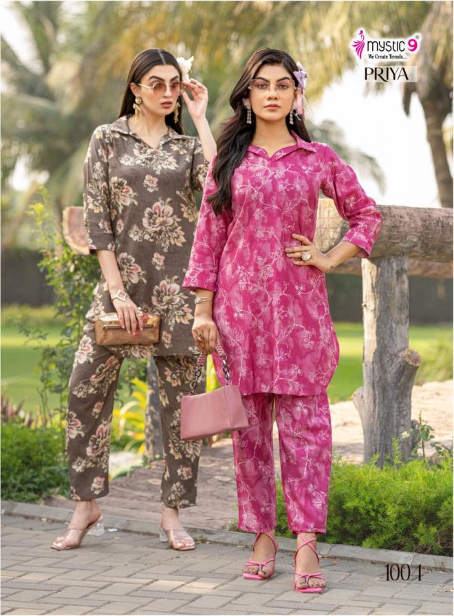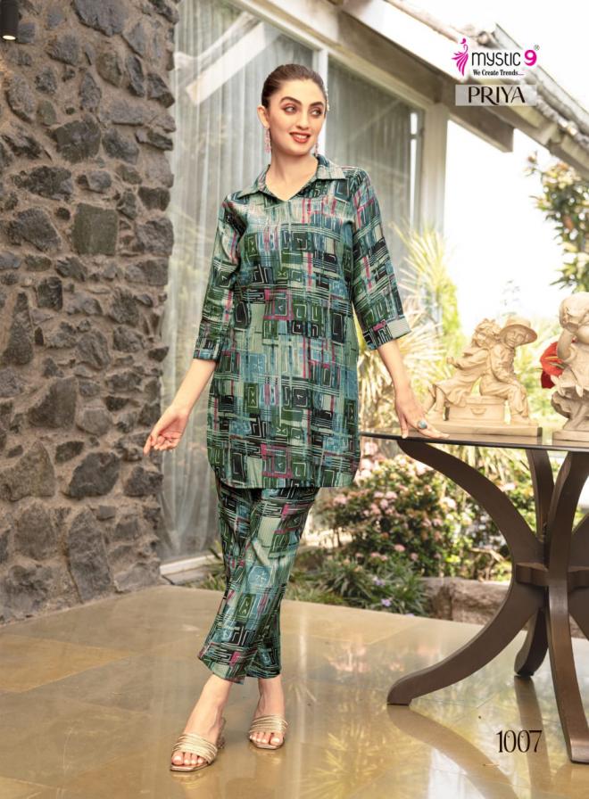 mystic 9 priya vol 1 readymade classic look vertican dobby co-ord sets
