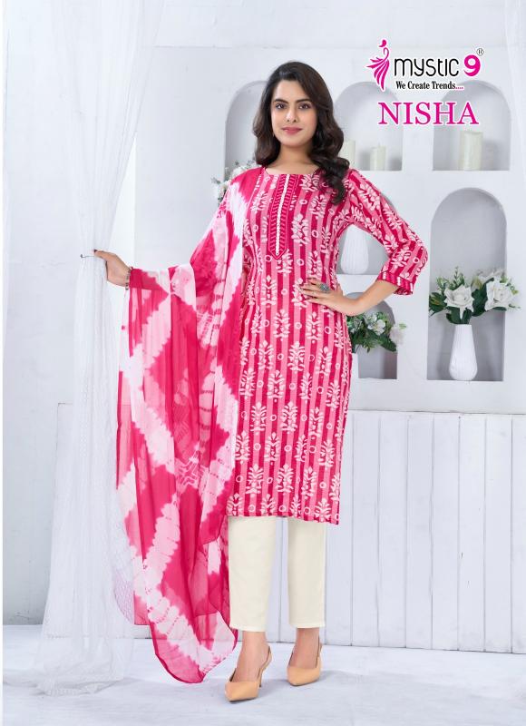 mystic9 nisha vol 10 readymade cotton batik print casual wear suits