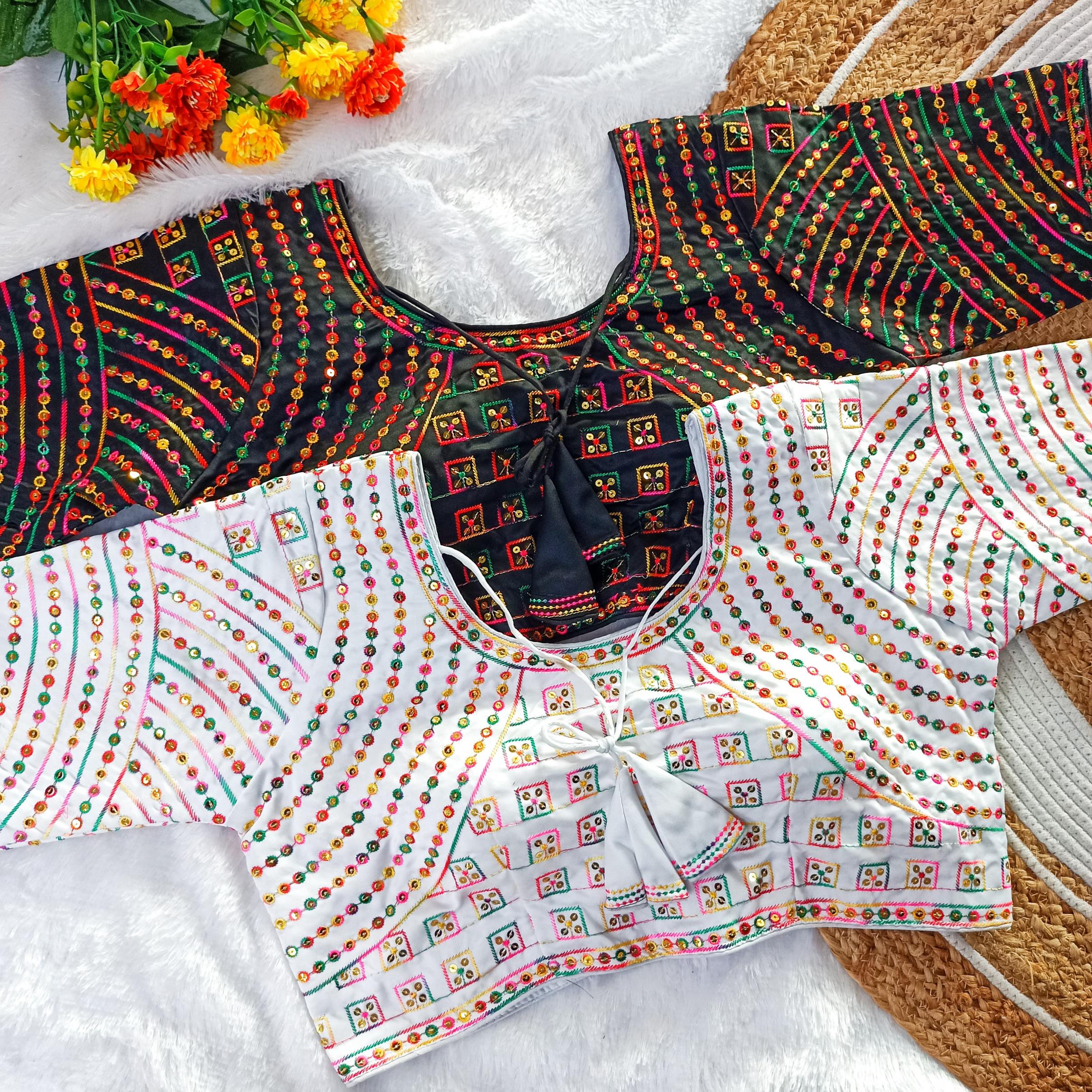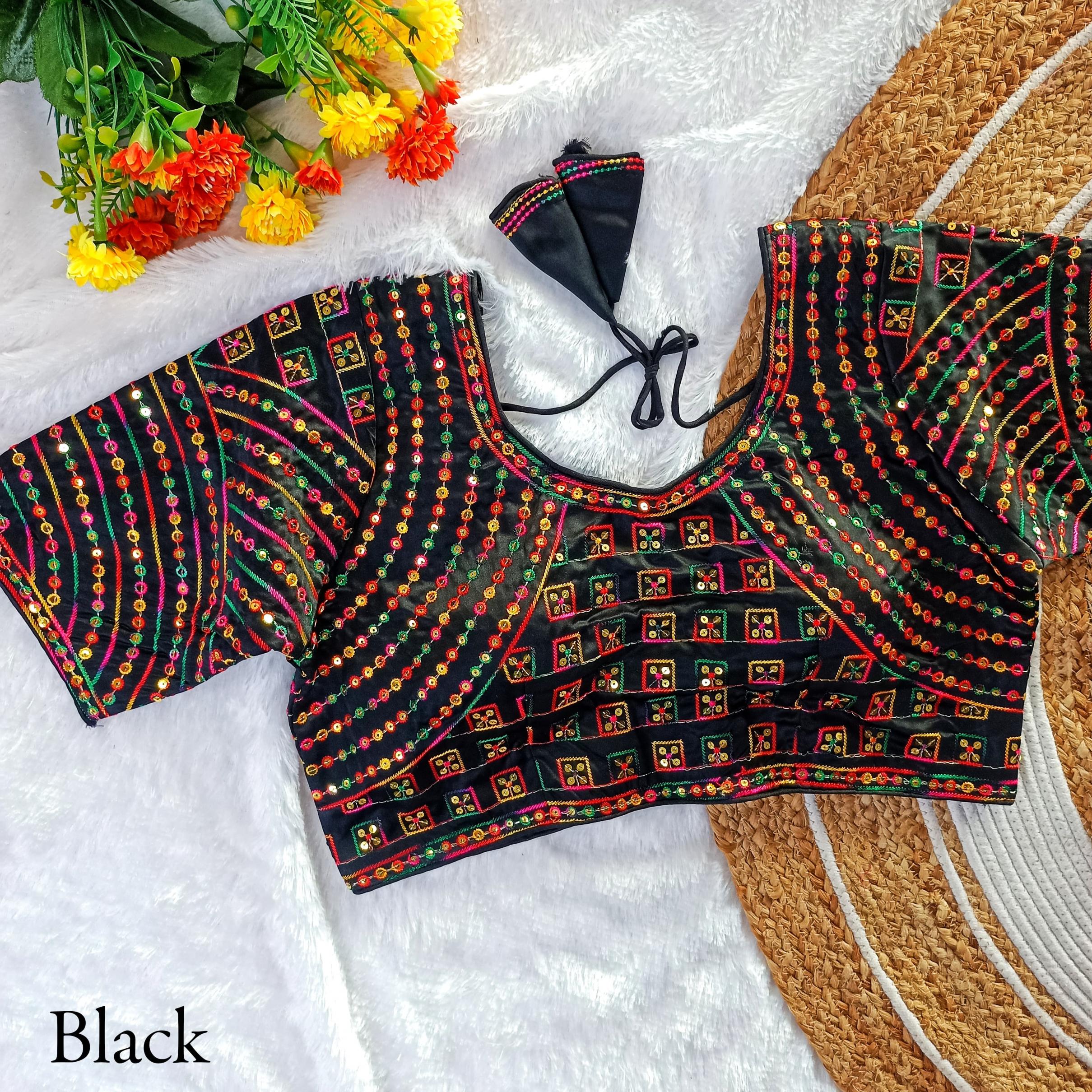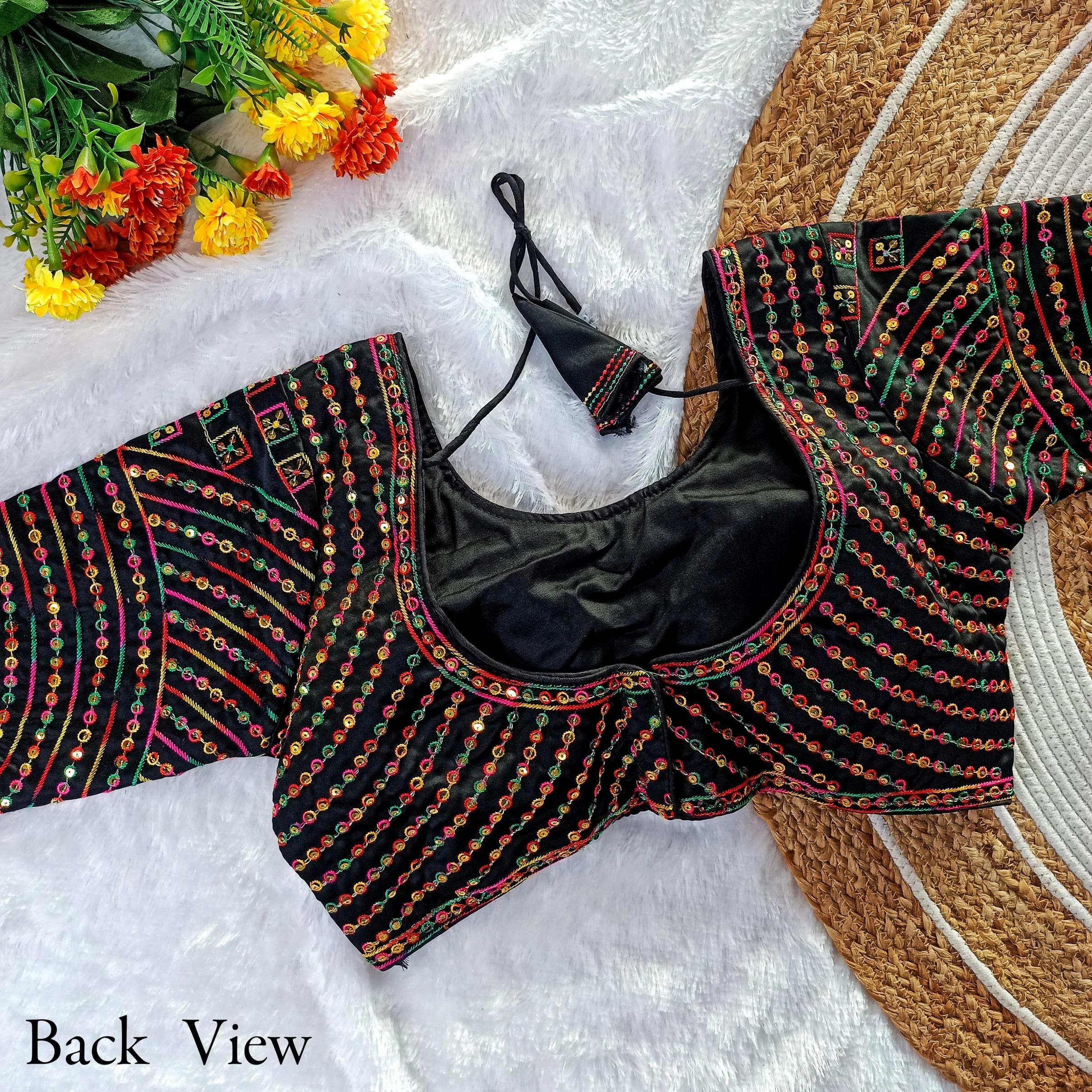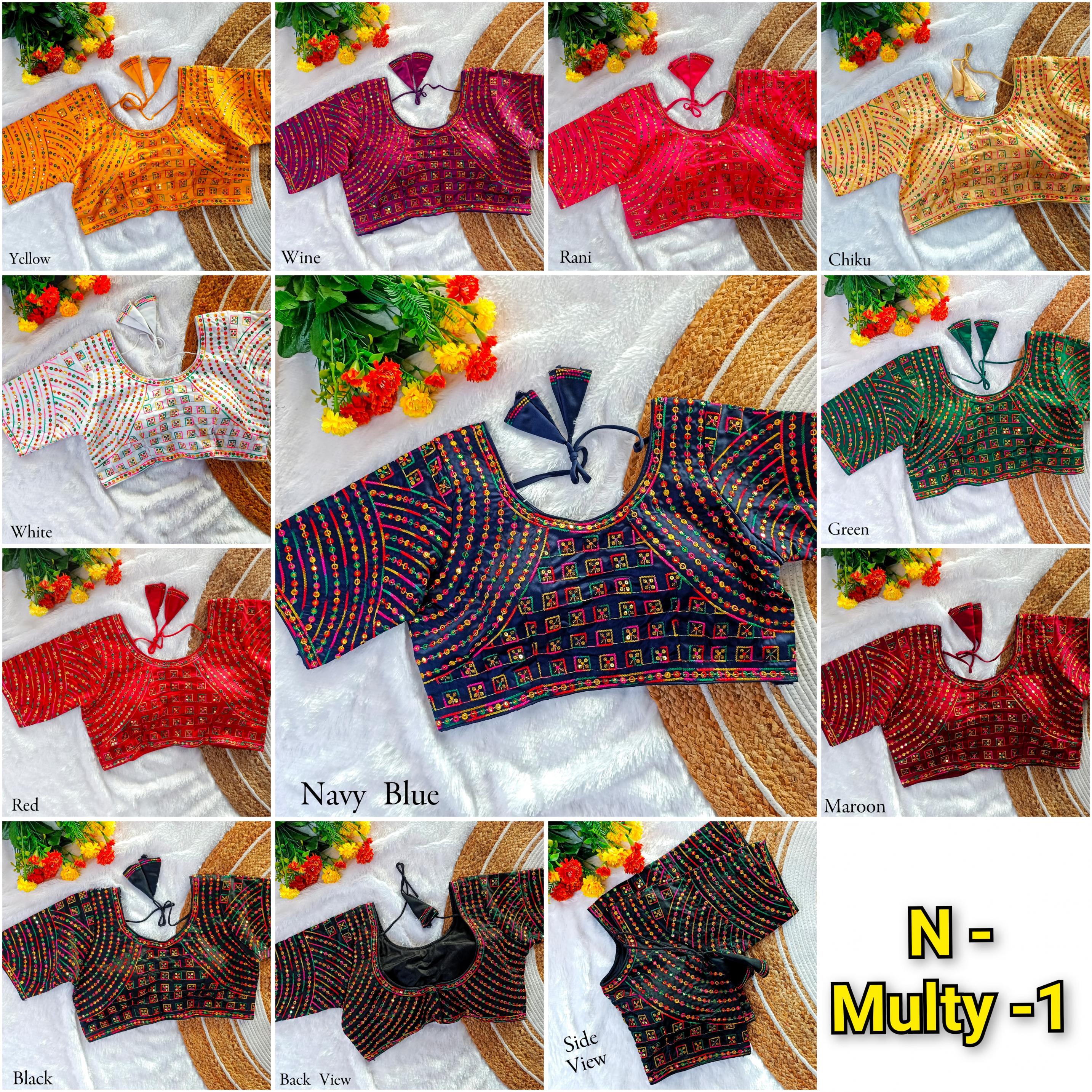 ➡️ NAVRATRI SPECIAL MULTY COLOUR THREADS WITH SEQUENCE EMBROIDERY WORK FANCY BLOUSE ➡️Design- N-MULTY ➡️Fabric- Malai Soft Sattin ➡️Inner- Cotton ➡️Work- Multy Colour Threads With Sequence Embroidery Work ➡️Pattern- ROUND NEACK ➡️Quality- A1 ➡️Padded- Yes ➡️Size- 38 Ready ➡️Length- 15 Inch ➡️Open Type- Back Hook ➡️Sleev- Elbow Sleeves Atteched ➡️Colour:- (10 Colours Available) 🖤💛🧡❤️🩷️💙💜🤍🤎 ➡️Price- 315/- ➡️SHIPPING EXTRA |
