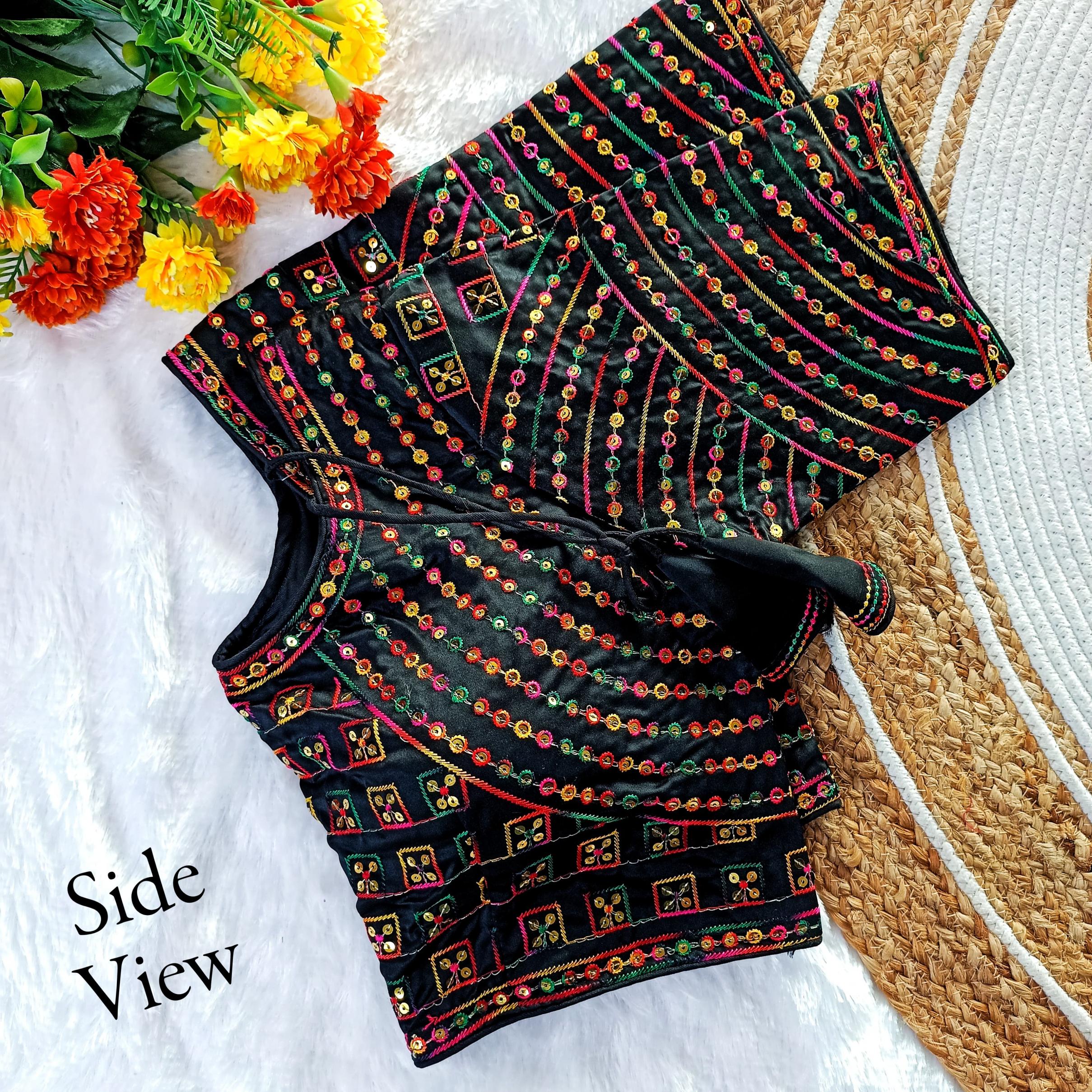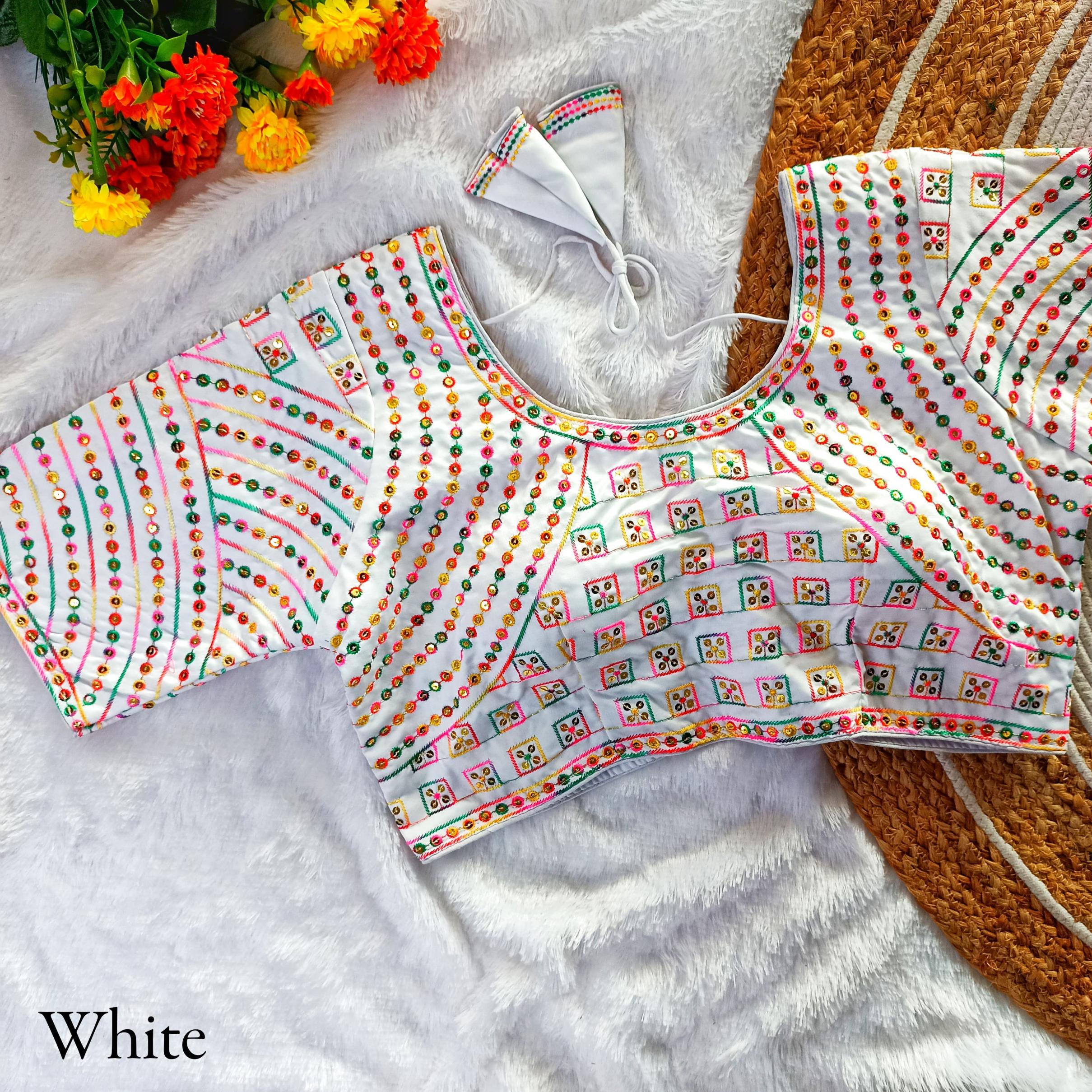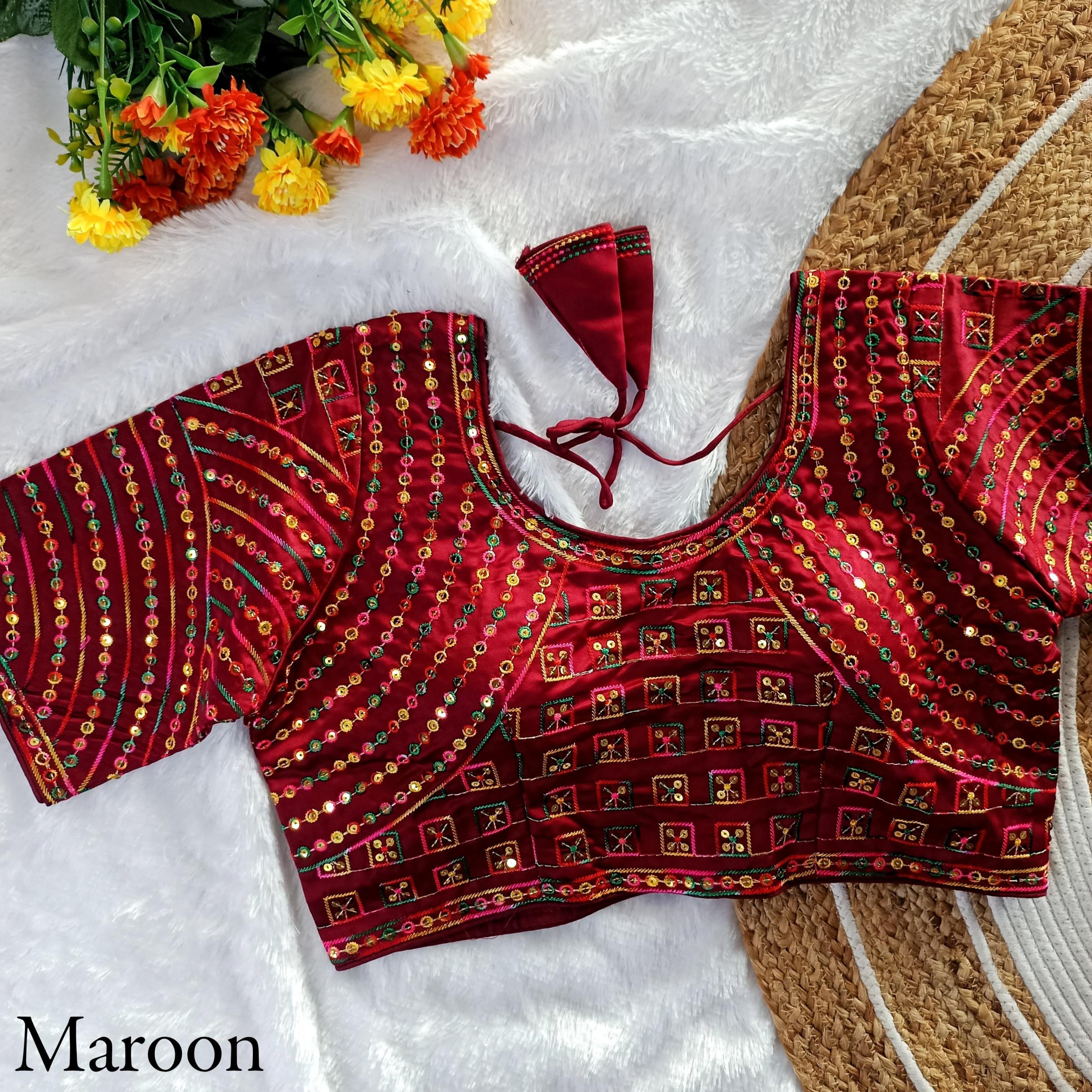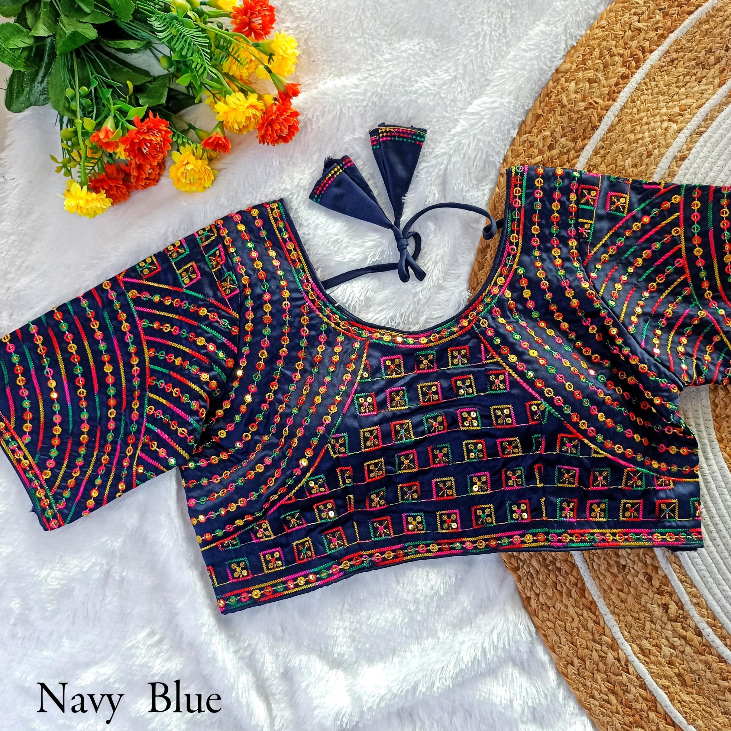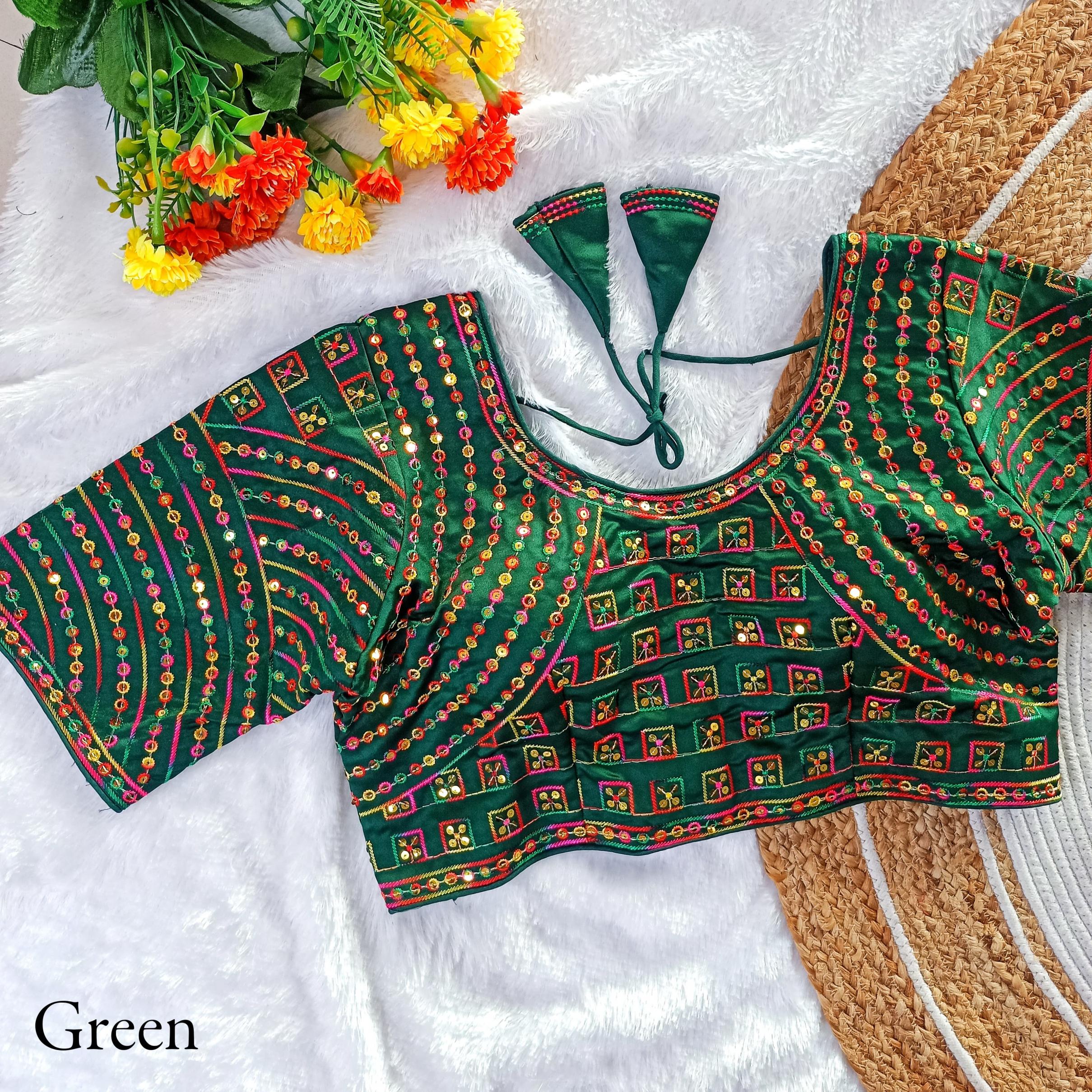 ➡️ NAVRATRI SPECIAL MULTY COLOUR THREADS WITH SEQUENCE EMBROIDERY WORK FANCY BLOUSE ➡️Design- N-MULTY ➡️Fabric- Malai Soft Sattin ➡️Inner- Cotton ➡️Work- Multy Colour Threads With Sequence Embroidery Work ➡️Pattern- ROUND NEACK ➡️Quality- A1 ➡️Padded- Yes ➡️Size- 38 Ready ➡️Length- 15 Inch ➡️Open Type- Back Hook ➡️Sleev- Elbow Sleeves Atteched ➡️Colour:- (10 Colours Available) 🖤💛🧡❤️🩷️💙💜🤍🤎 ➡️Price- 315/- ➡️SHIPPING EXTRA |