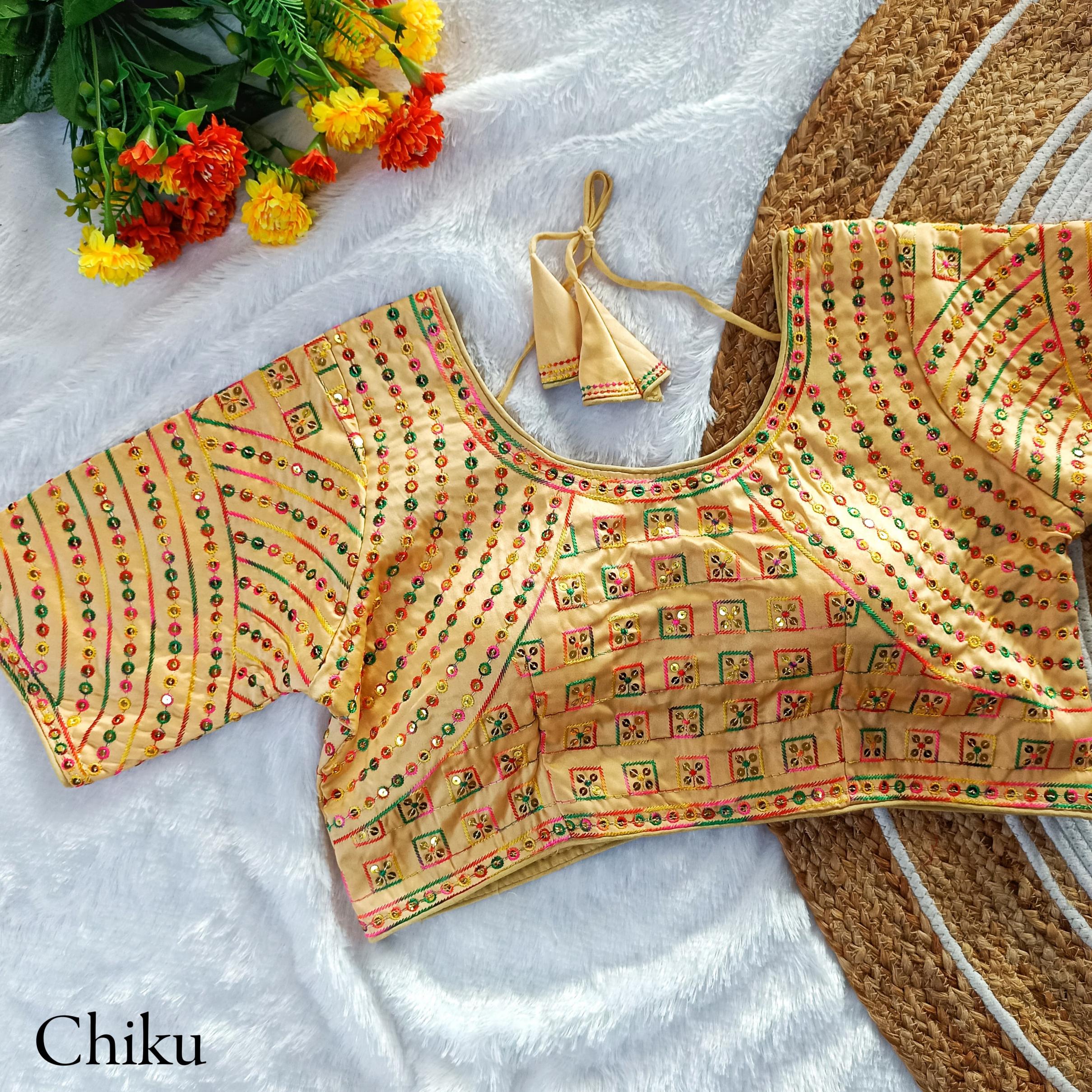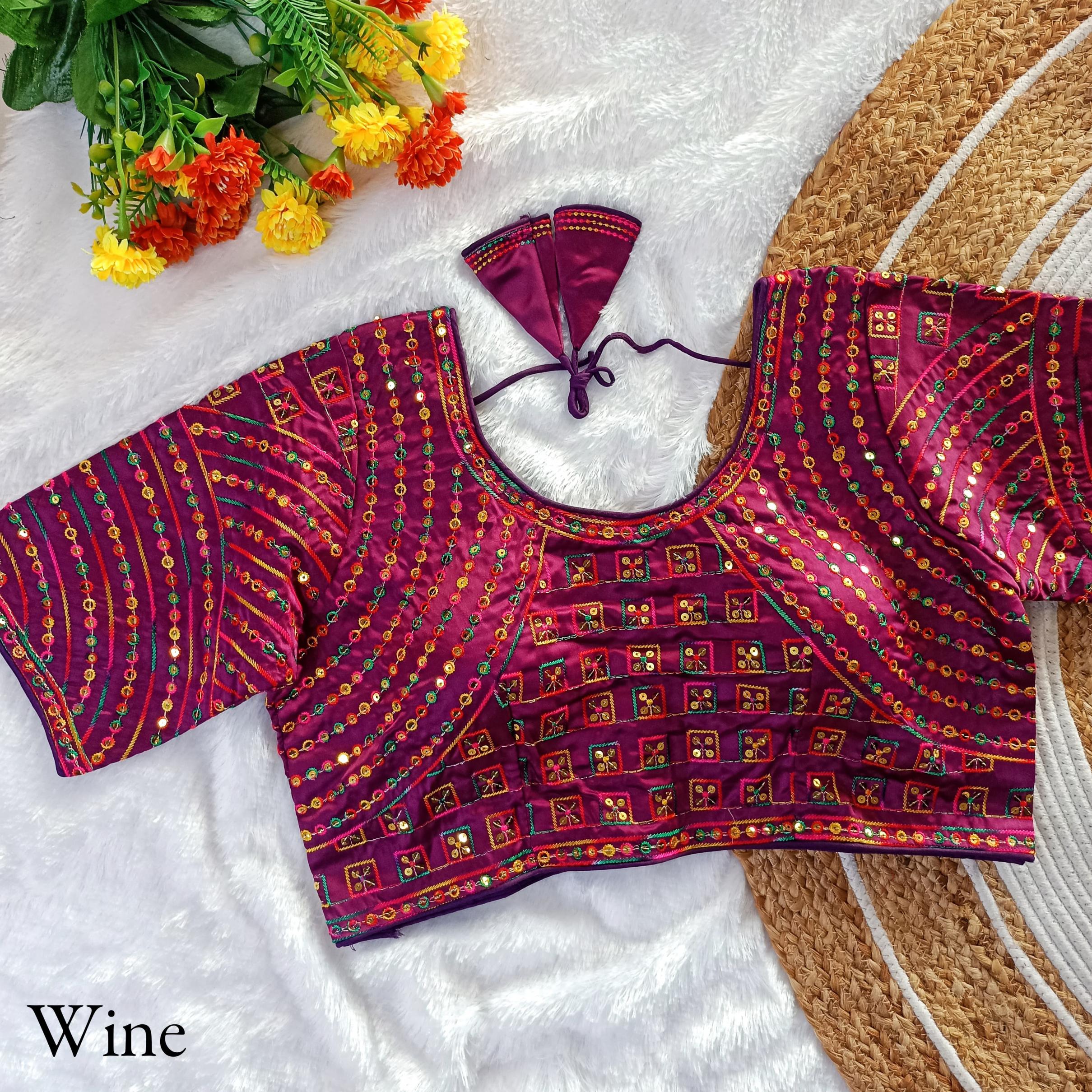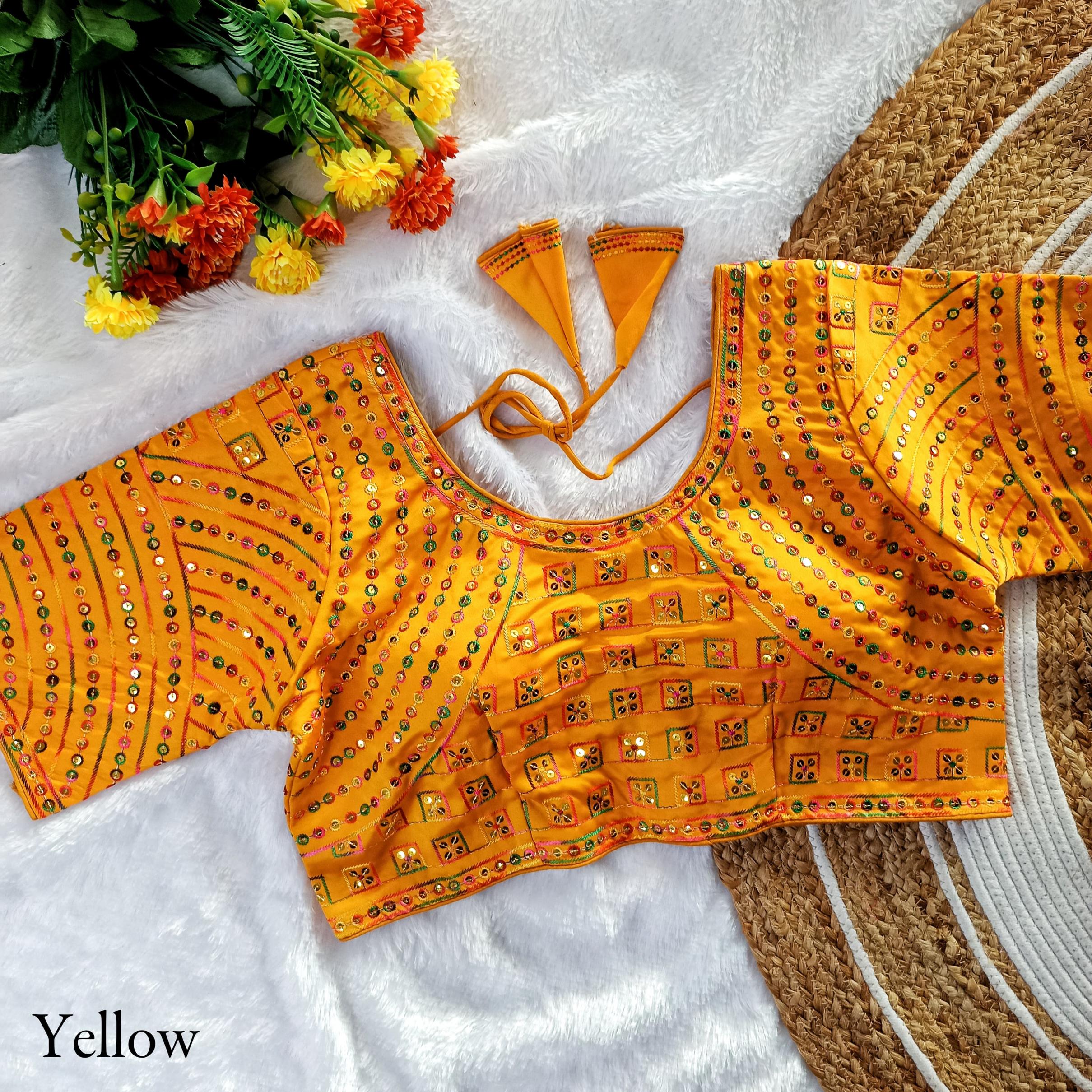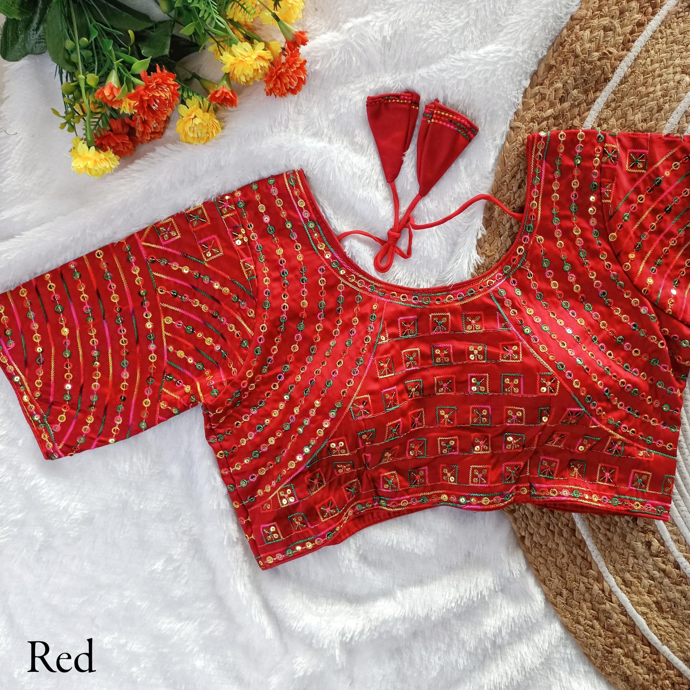➡️ NAVRATRI SPECIAL MULTY COLOUR THREADS WITH SEQUENCE EMBROIDERY WORK FANCY BLOUSE ➡️Design- N-MULTY ➡️Fabric- Malai Soft Sattin ➡️Inner- Cotton ➡️Work- Multy Colour Threads With Sequence Embroidery Work ➡️Pattern- ROUND NEACK ➡️Quality- A1 ➡️Padded- Yes ➡️Size- 38 Ready ➡️Length- 15 Inch ➡️Open Type- Back Hook ➡️Sleev- Elbow Sleeves Atteched ➡️Colour:- (10 Colours Available) 🖤💛🧡❤️🩷️💙💜🤍🤎 ➡️Price- 315/- ➡️SHIPPING EXTRA |