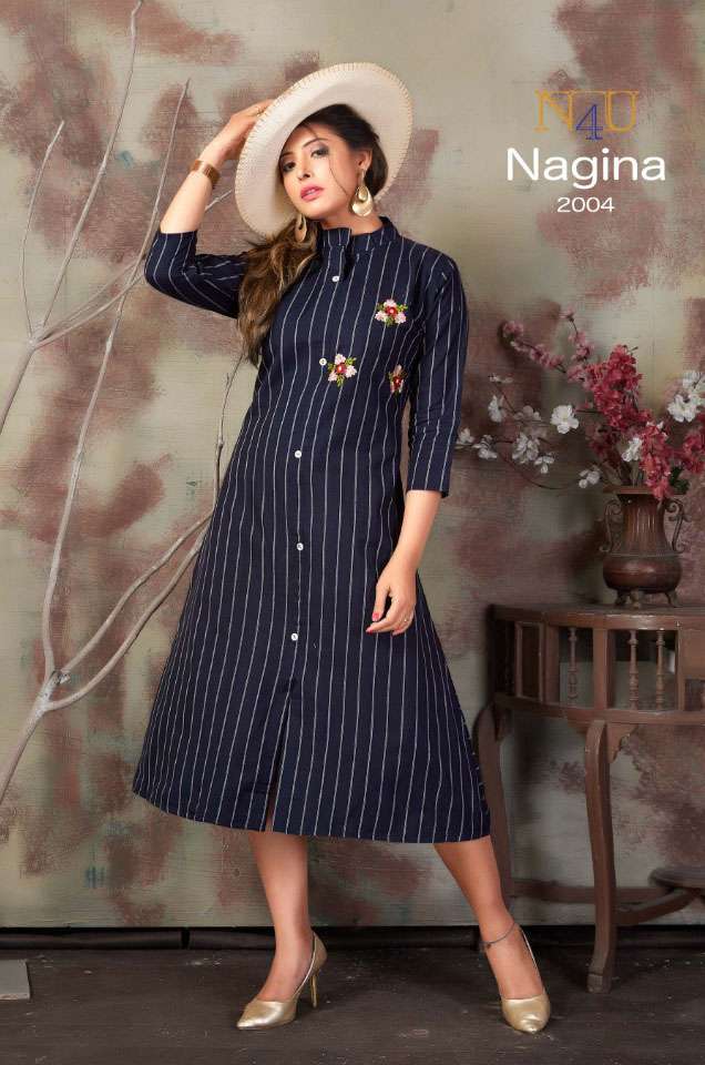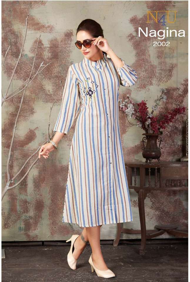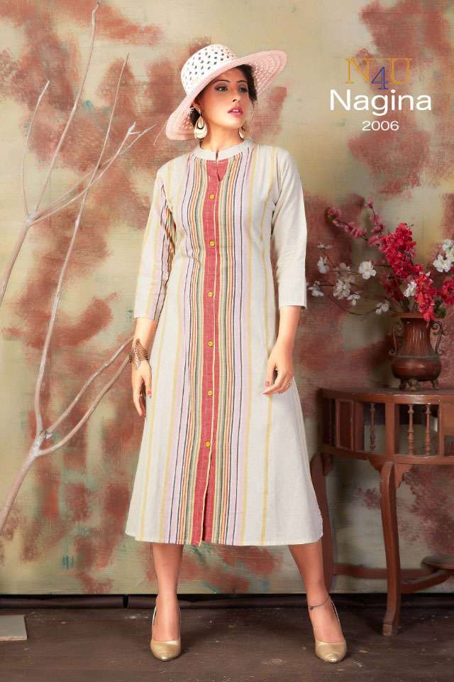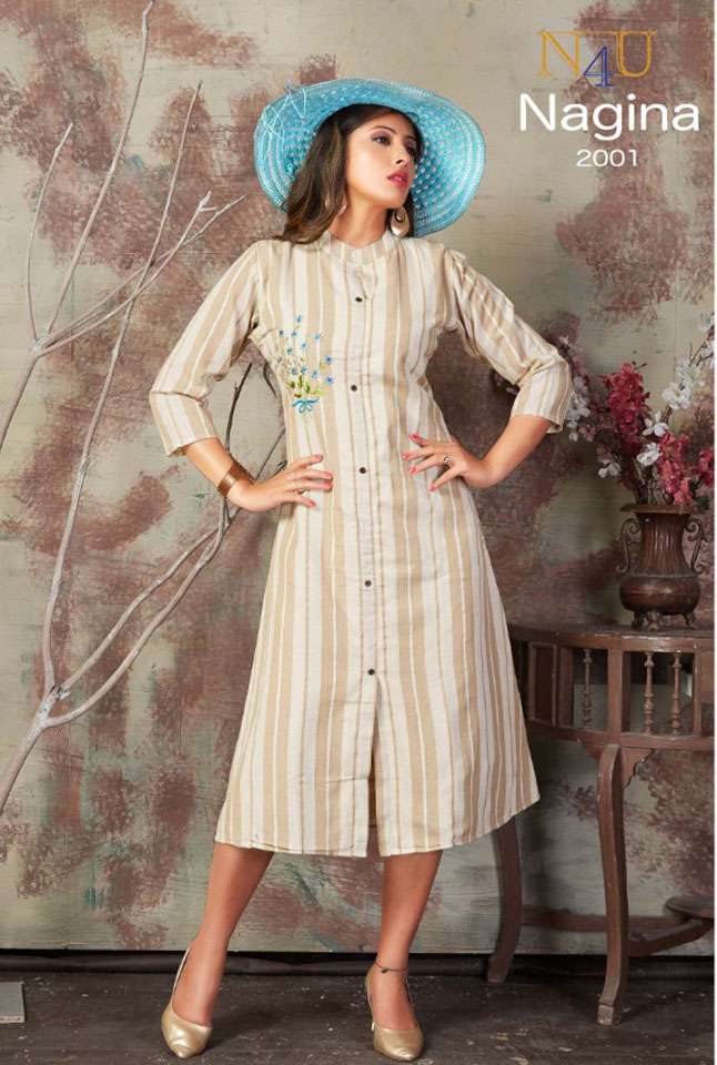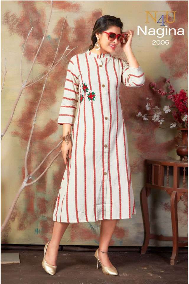 N4U-Nagina BY TUNIC HOUSE COTTON STRIPED LONG KURTI WHOLESALER