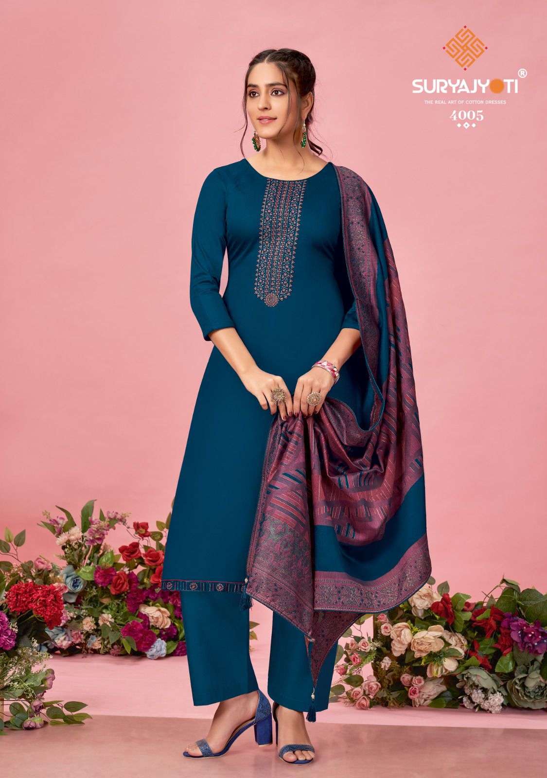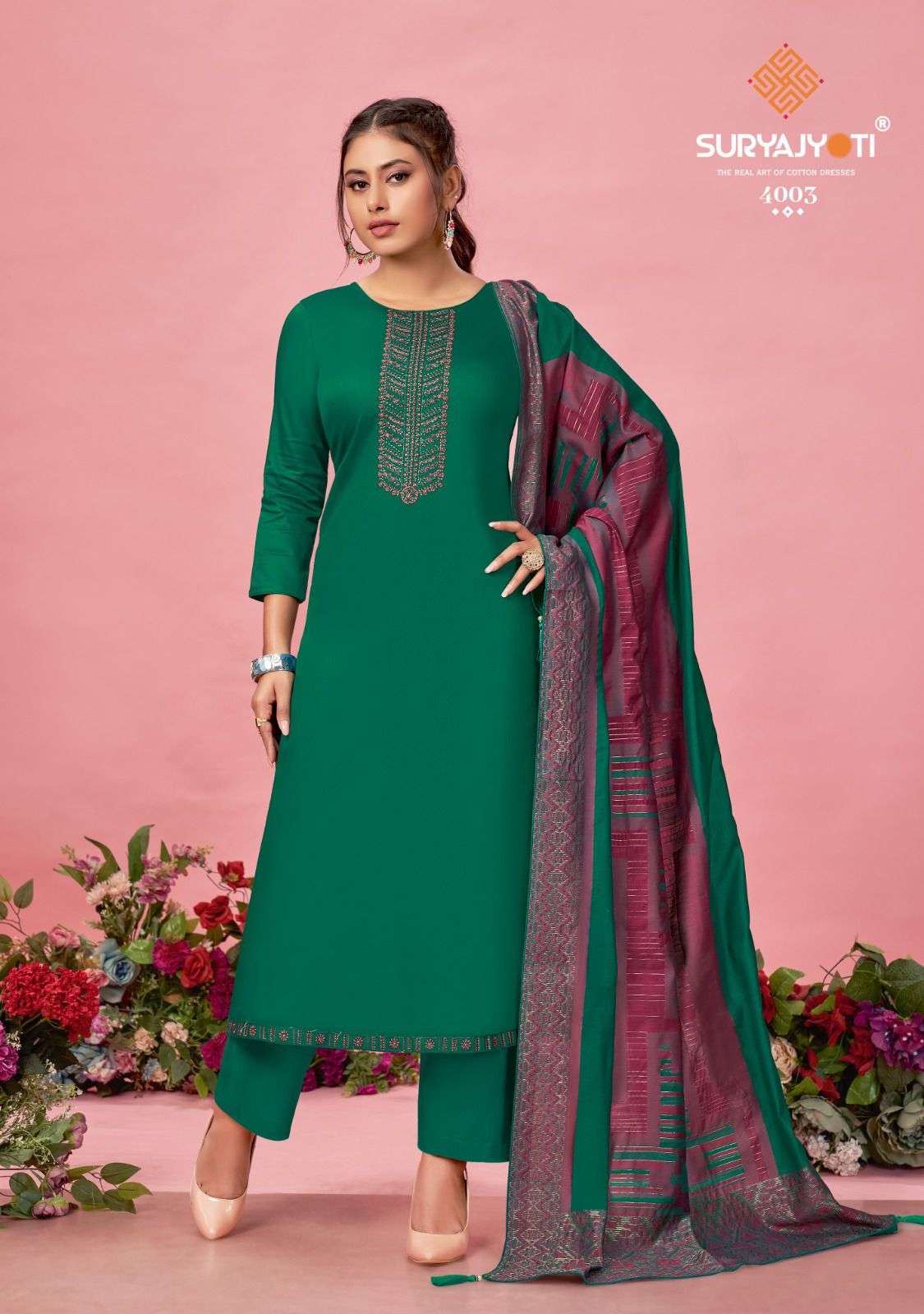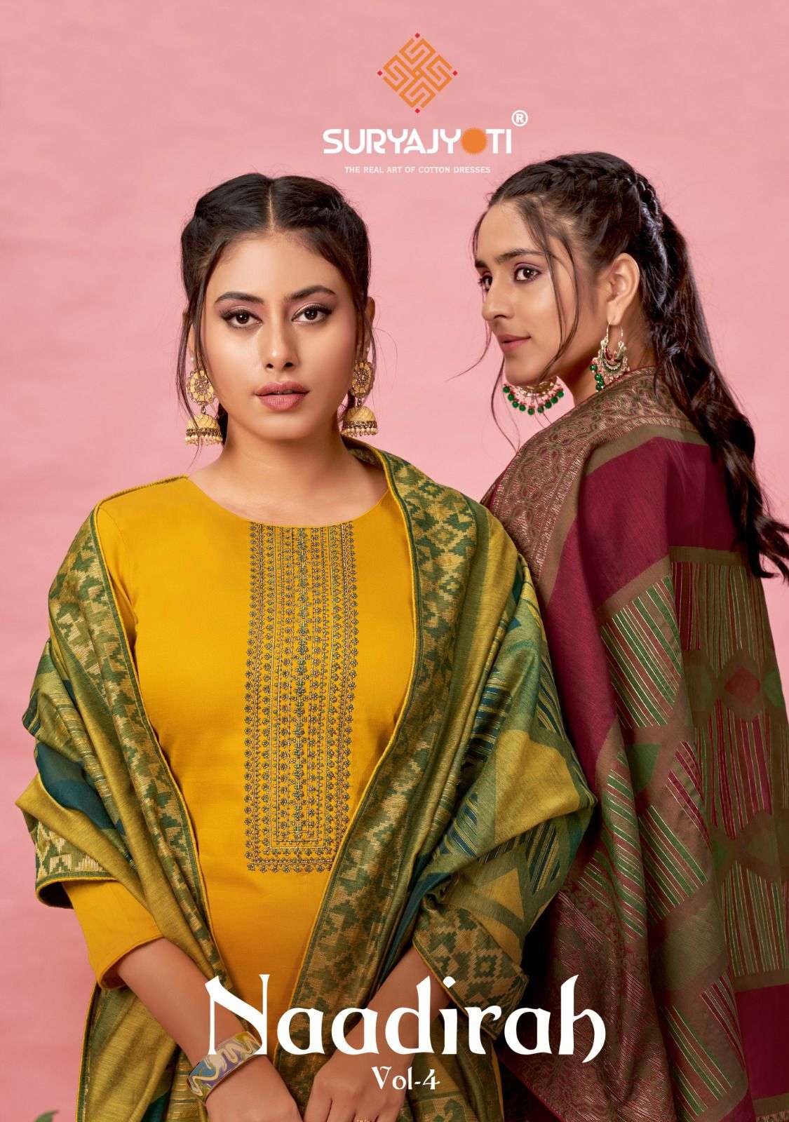 DEAR CUSTOMER, WELCOME TO SURYAJYOTI LAUNCHING OF SURYAJYOTI 'S NEW CATALOG 📕CATALOGUE:- NAADIRAH VOL-4 👗CLOTH:- JAAM SATIN WITH NECK AND BORDER EMBRODIERY & SWAROVSKI DIAMOND WORK 🧣DUPATTA:- FANCY JACQUARD DUPATTA WITH FOUR SIDE PIPING LACE & TESSELS 👖BOTTOM:- COTTON SOLID CUT:- 2.50-2.50-2.25 RATE:- 855/- ONLY PACKING:- EXCLUSIVE POUCH PACK WITH BAG🧳 |