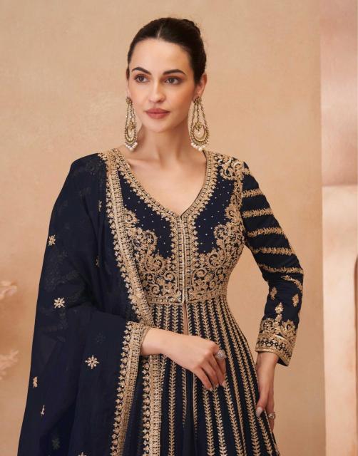 SAYURI DESIGNER NAARI (5 PCS) FABRIC - PREMIUM REAL CHINON SILK ( HEAVY LOOK CHINON SILK FRONT AND BACK EMBROIDERED TOP WITH SKIRT AND EMBROIDERD DUPATTA ) PRICE - 3299/- |