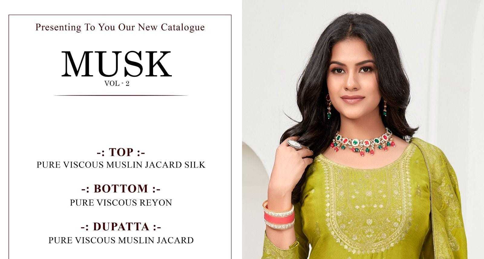 MUSK-NEW BOOK❤️ MUSK VOL.2 BY NAARI Rate :- 950/- per pcs GST EXTRA Set to set Dispatch :-8 August 24 🌷Special:-Beautiful chart with Beautiful jacard🌷 Please confirm ur order now Regards:- NAARI |