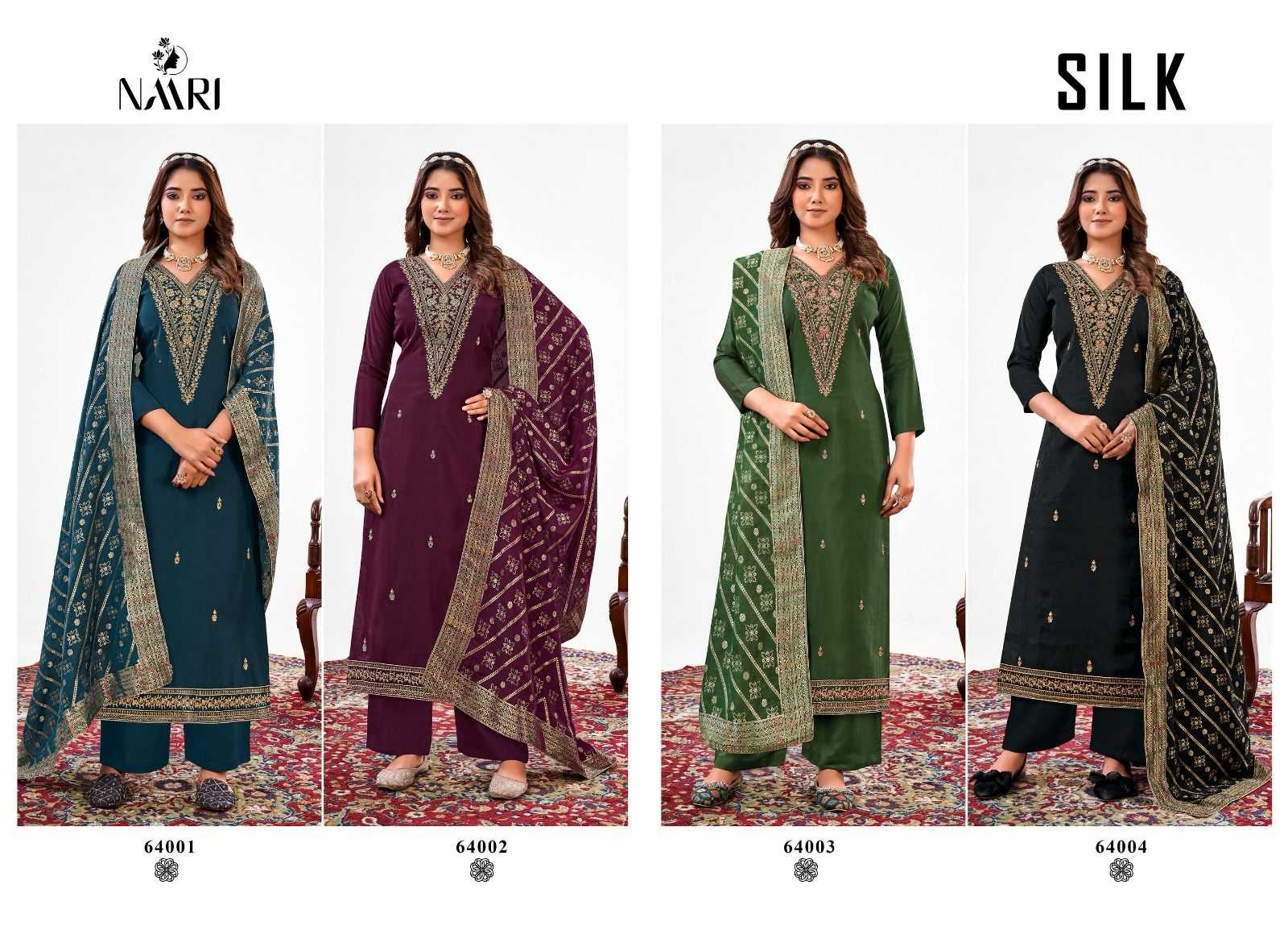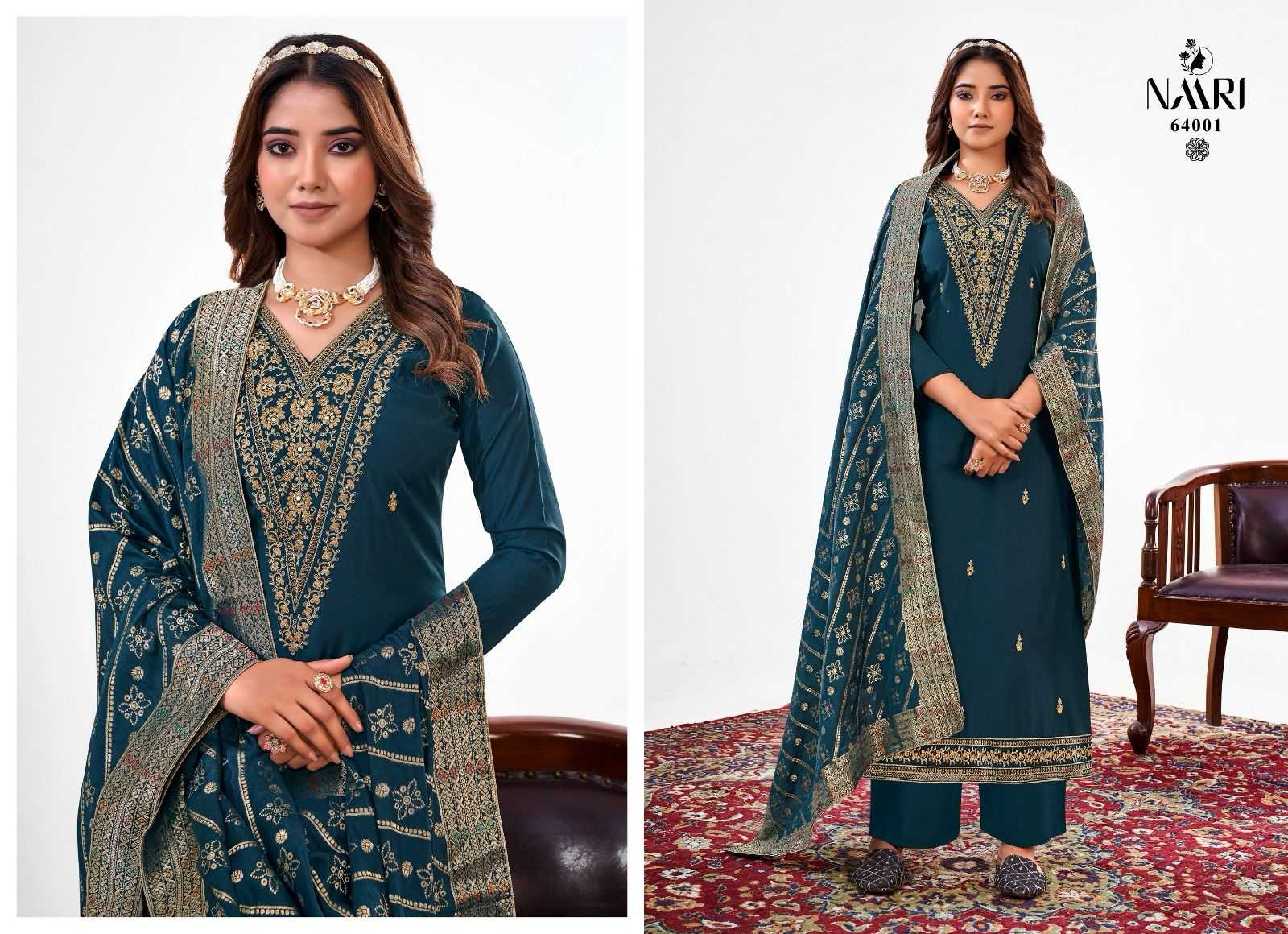 naari silk 64001-64004 designer fancy beautiful embroidery handwork salwar kameez material