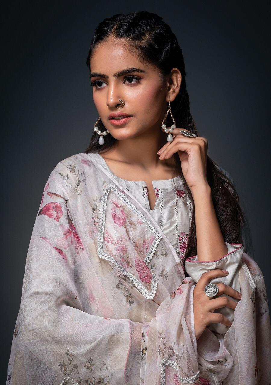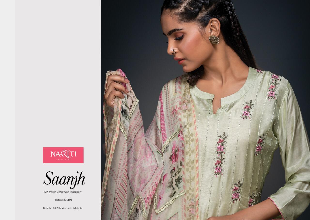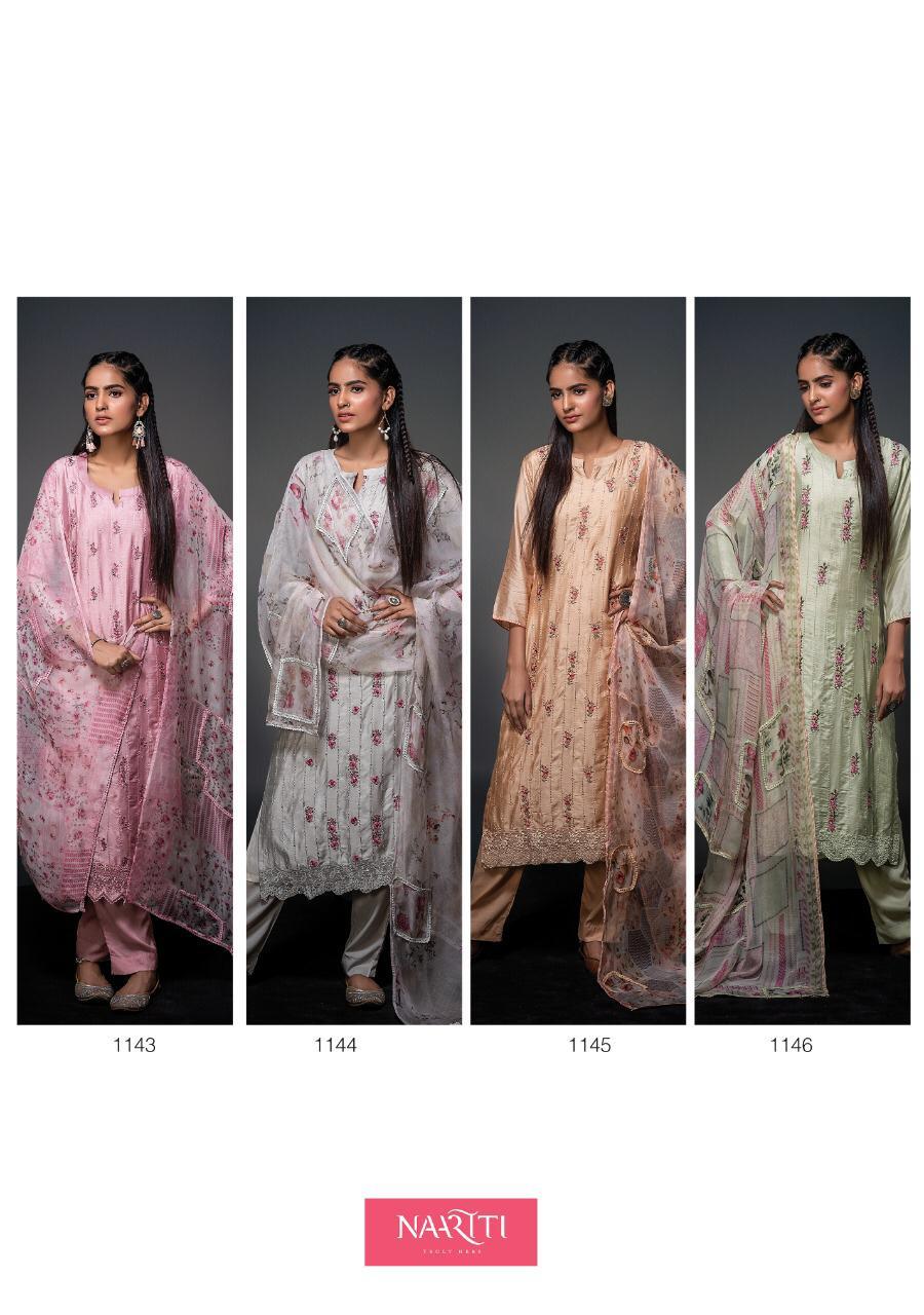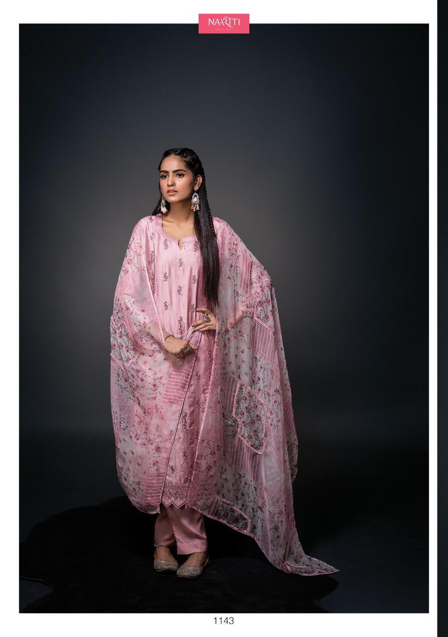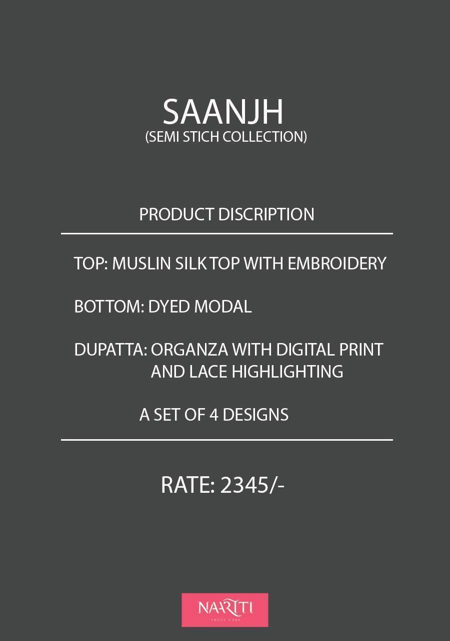 Naariti Saanjh Muslin silk with embroidery with organza digital prints dupatta Price- 2345/- Pcs - 04 |