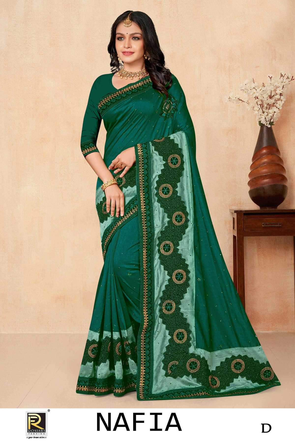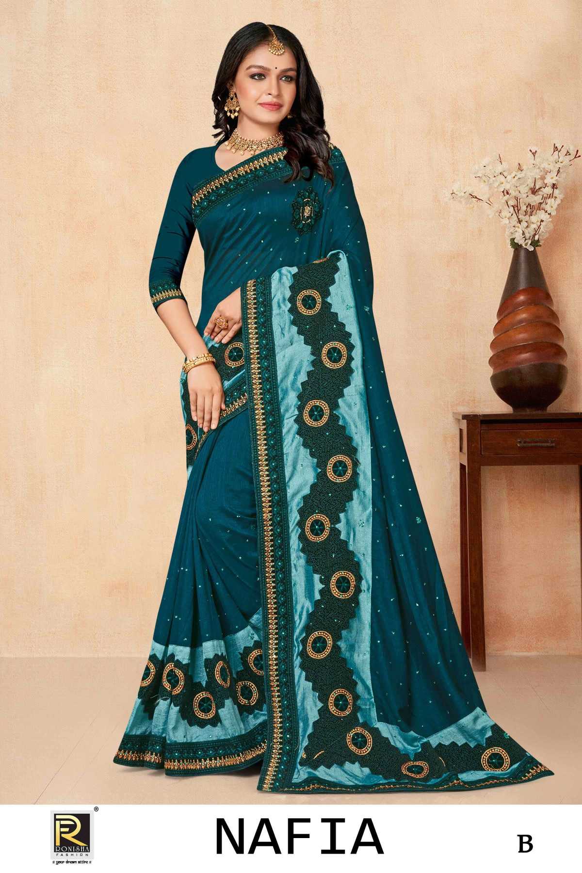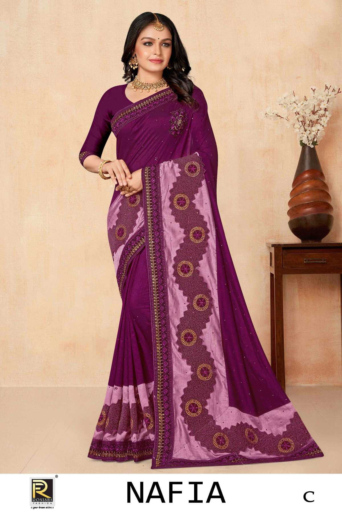 NAFIA BY RANJNA SAREE FANCY FABRICS EMBROIDERY BORDER SIROSKI WORK SUPER HIT COLLECTION