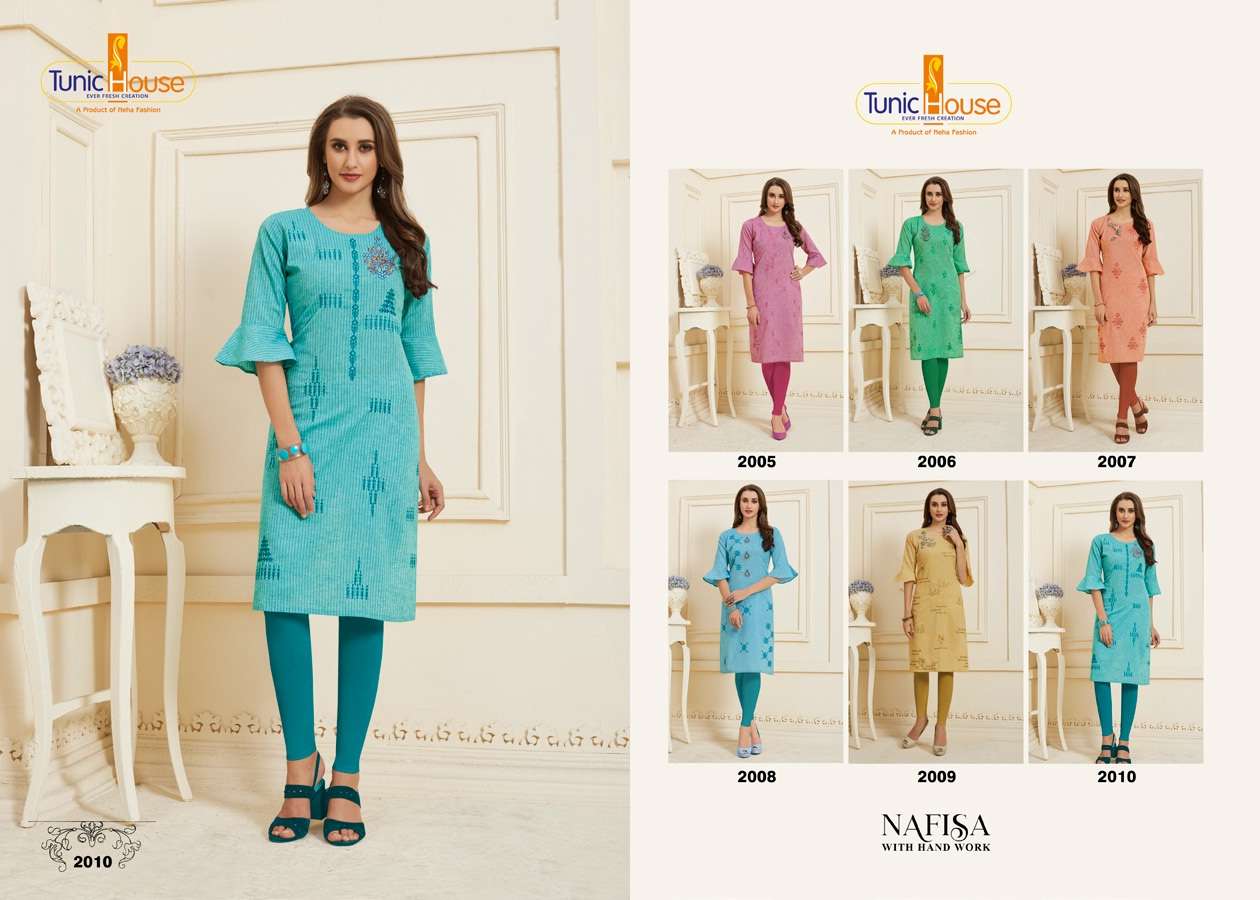 Nafisa By Tunic House Lilinen Cotton Hand Work Kurti Collection
