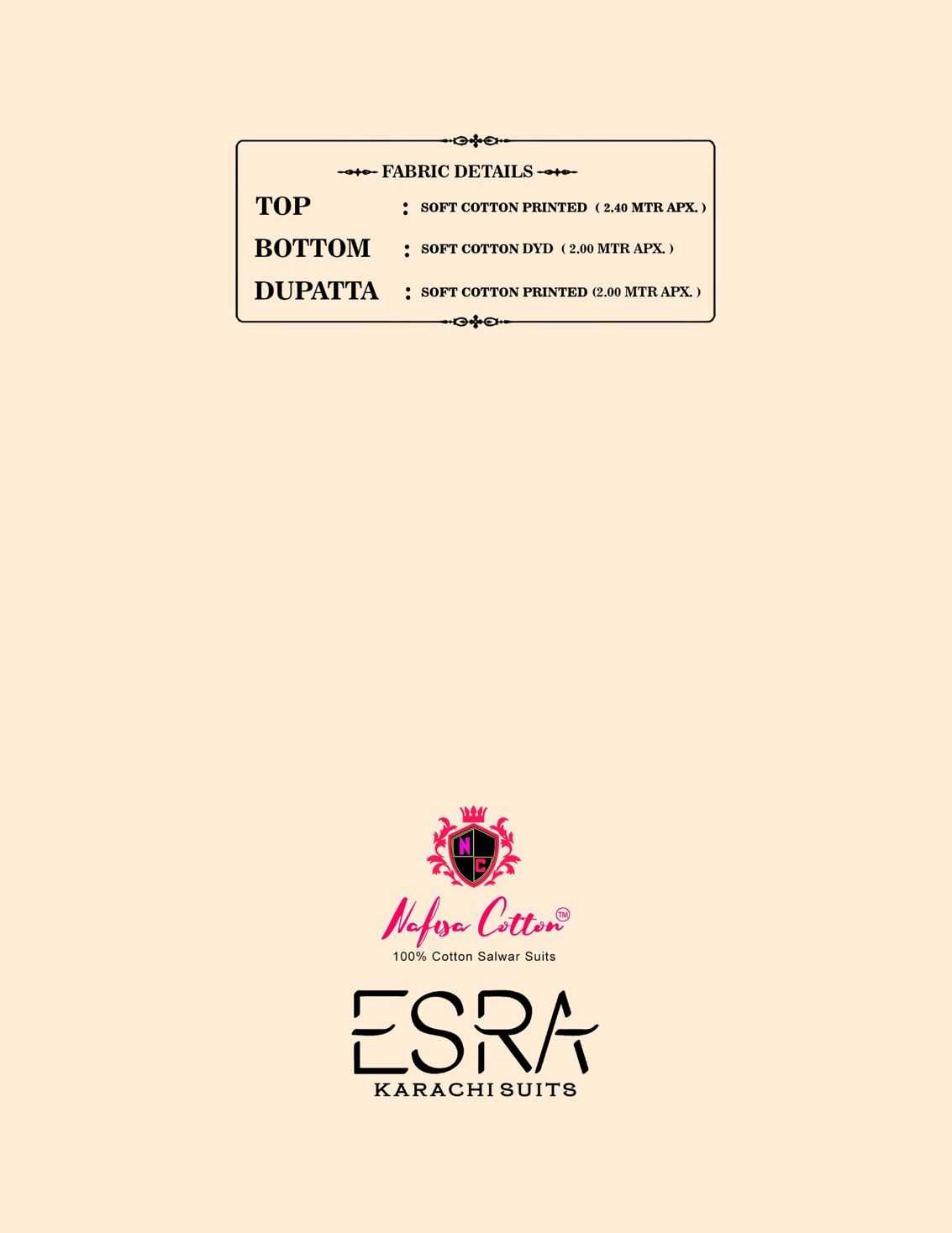 👗NAFISHA COTTON 👗 Launches its New Catalog: ESRA KARACHI SUITS * *VOL- 04 Fabric Details: 👗TOP: Pure Soft Cotton Digital style Print 2/40 mtr