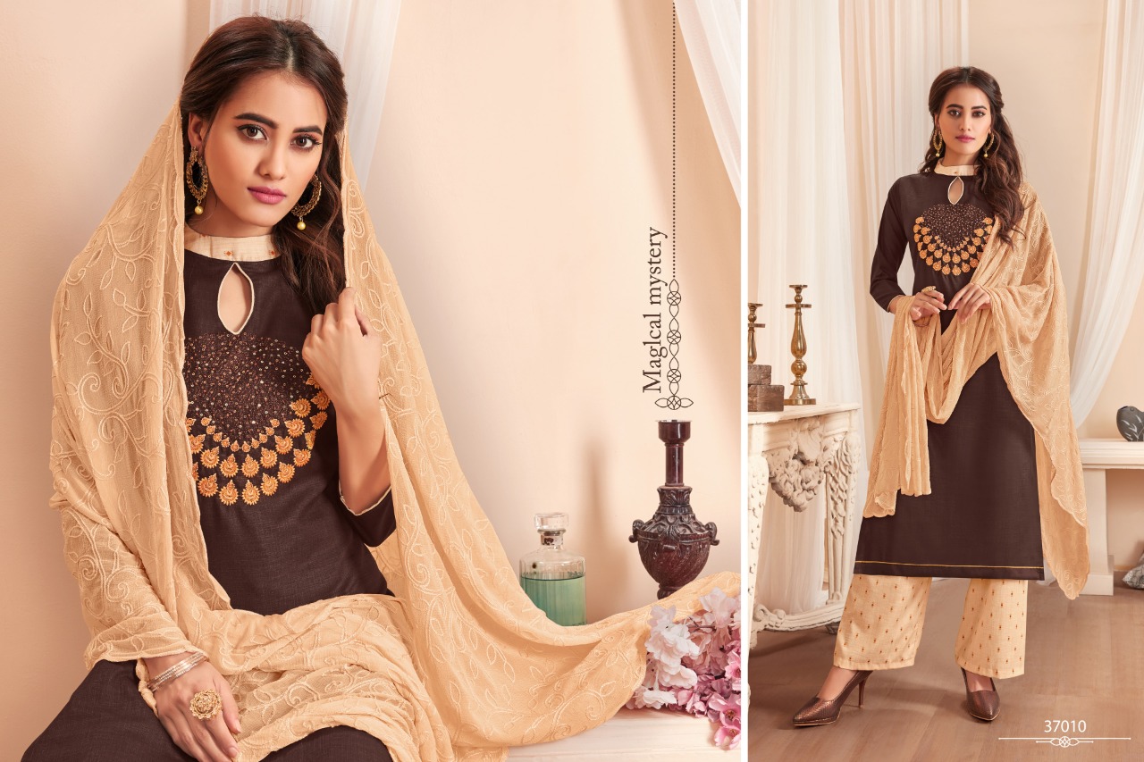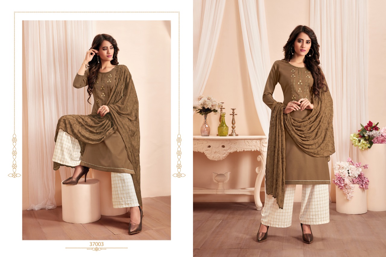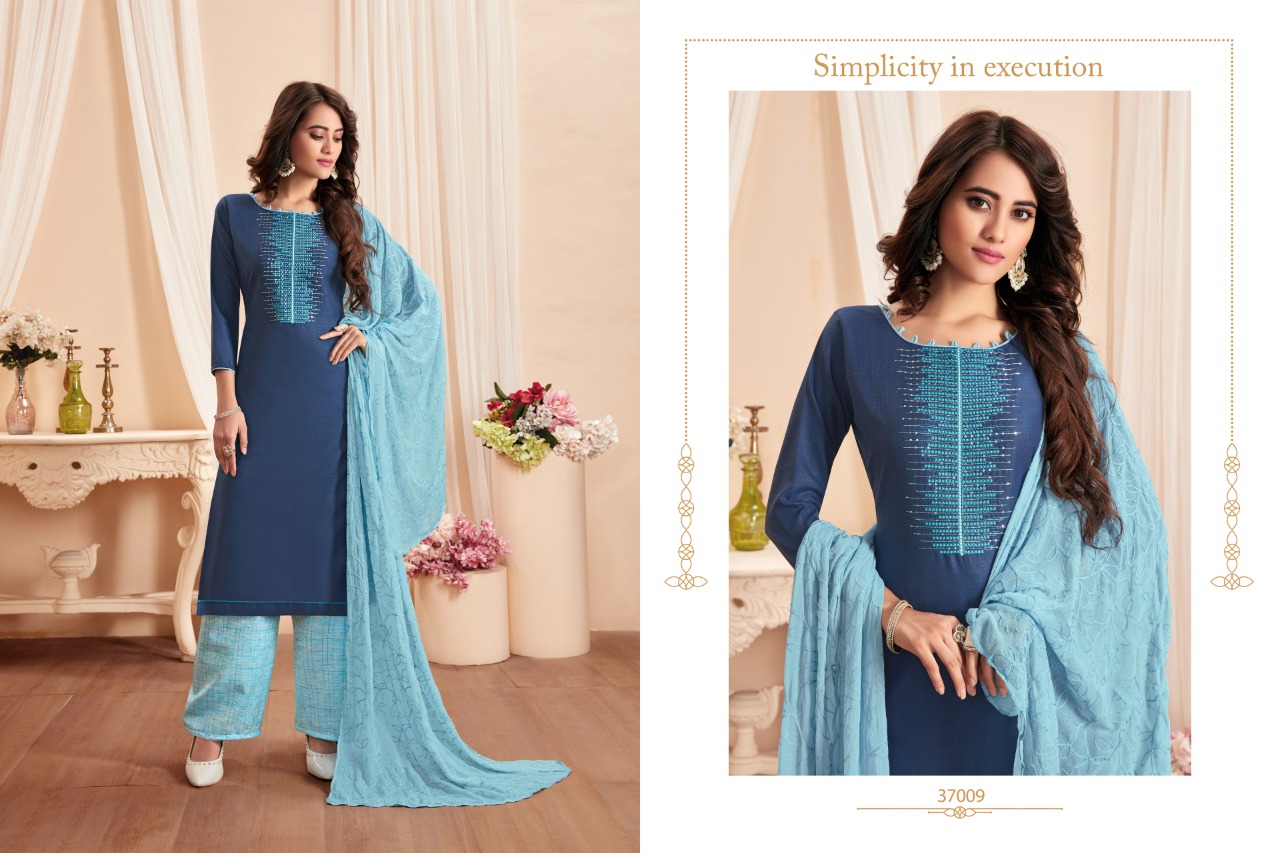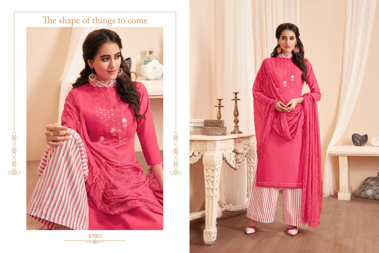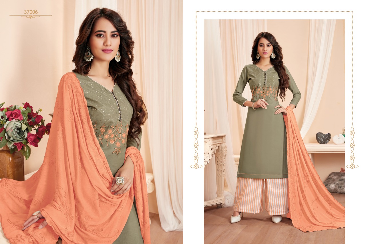 NAGMA - A handloom cotton bottoms and top & dupatta work range. Top: Soft Cotton Slub With fancy embroidery work, Cut-2.00 mts. Dupatta: Najnin heavy work, Cut-2.25 mts. Bottom: Handloom Cotton, Cut-2.50 mts. Rate - 655 per pcs . Set to set. GST 5 Percent Extra Delivery from today Total cut- 6.75mts approx Regards, Raghav Royals |