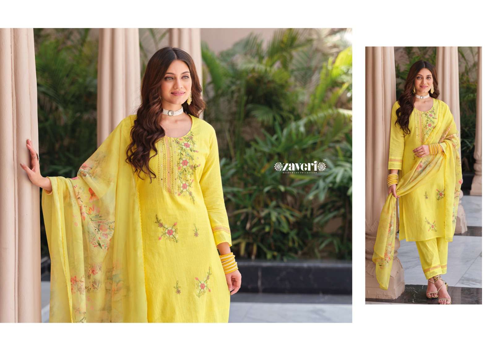 Zaveri presents summer collection NAGMA VOL-2 Top - pure cotton with fancy embroidery work WITH (HAND KHATALI WORK) Pant - pure cotton with work Duppta - ORGANZA DIGITAL PRINT SIZE - M (38) L (40) XL (42) XXL (44) RATE - 1399/- per pcs Despeching - 2 days Zaveri women beauty surat |