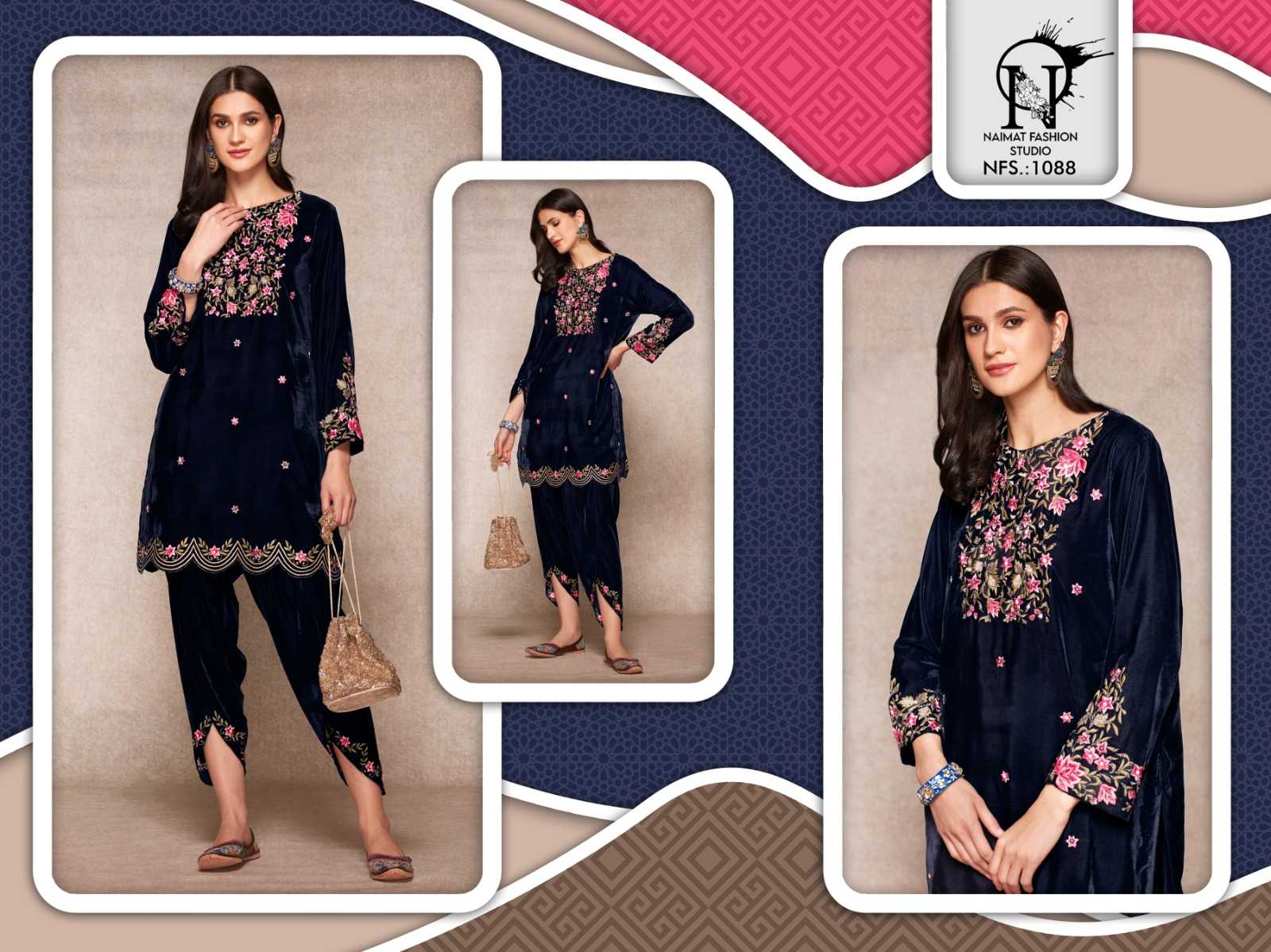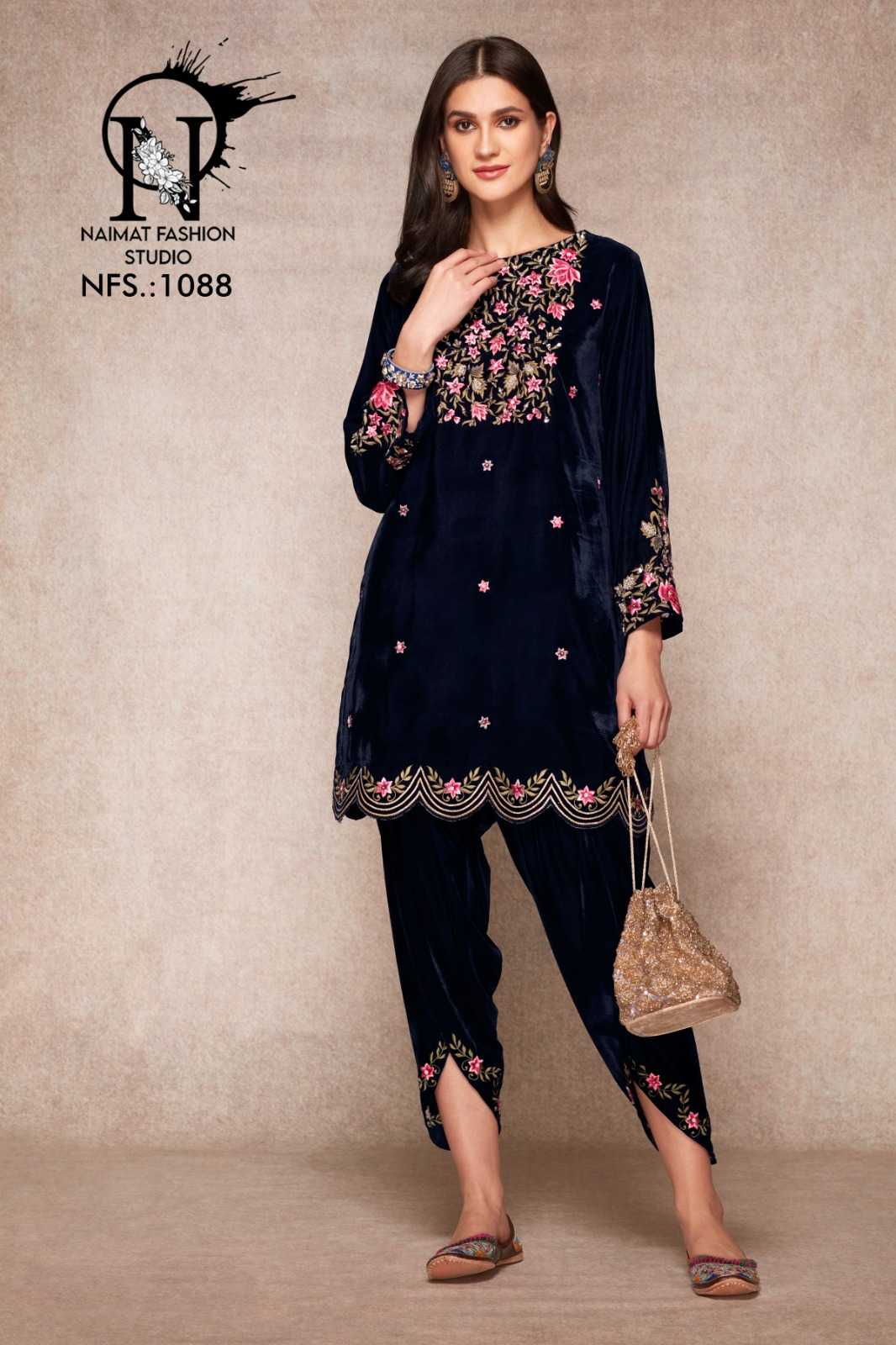 naimat nfs 1088 beautiful designer winter velvet pakistani kurti with pant