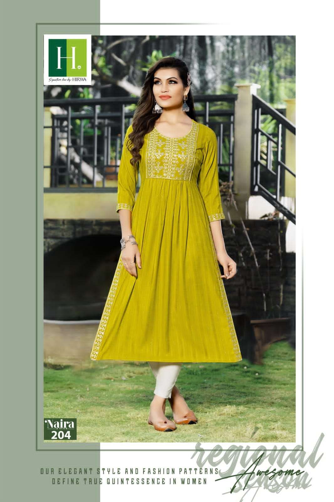 H.DOT by HIRWA presents its latest naira cut kurti catalog 📒NAME: NAIRA (Vol.2) 👗 Fabric: Self-Woven Fancy Viscose Rayon Concept: Naira Cut Festive wear Kurtis with Embroidery Work ✨ LENGTH: 45"+ ✨ DESIGNS: 5 ✨ SIZES: L, XL, XXL & 3XL Rate: 485/- per pcs |