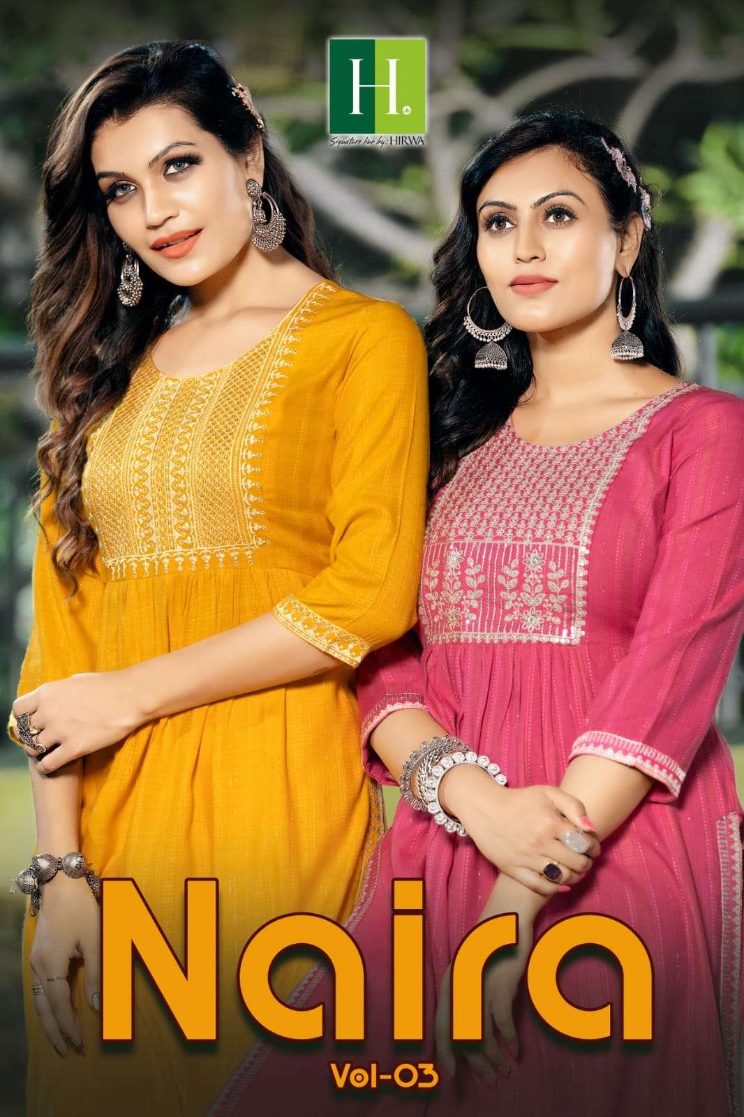 naira vol 3 by hirwa fancy festive wear nayra cut kurtis