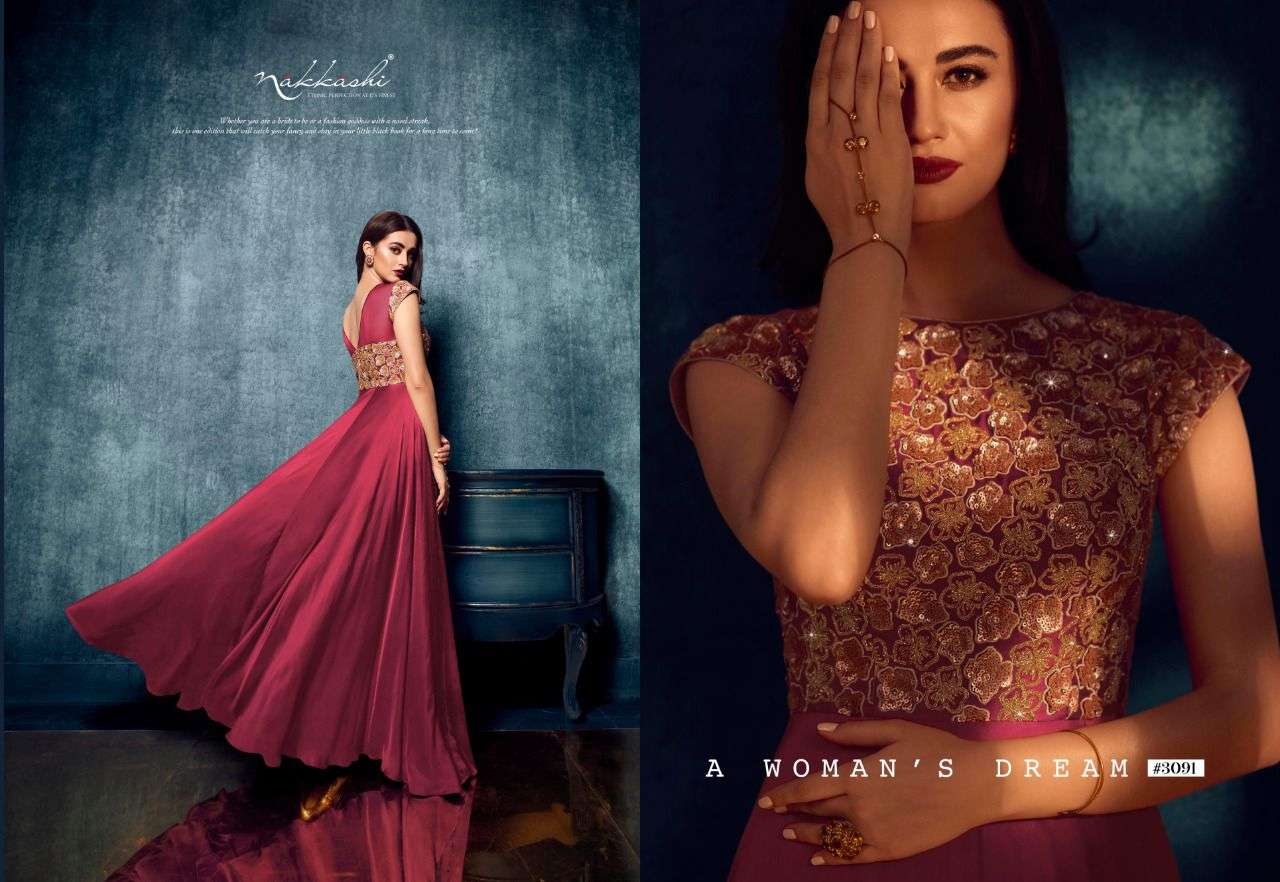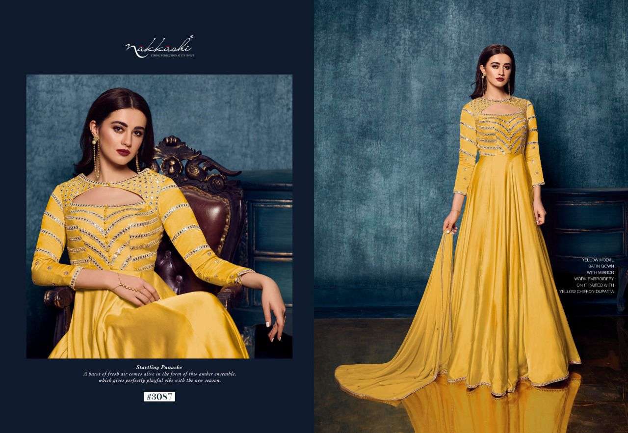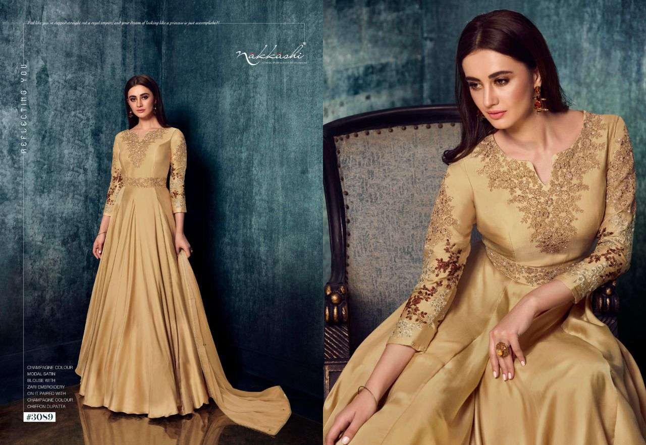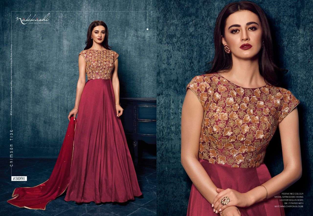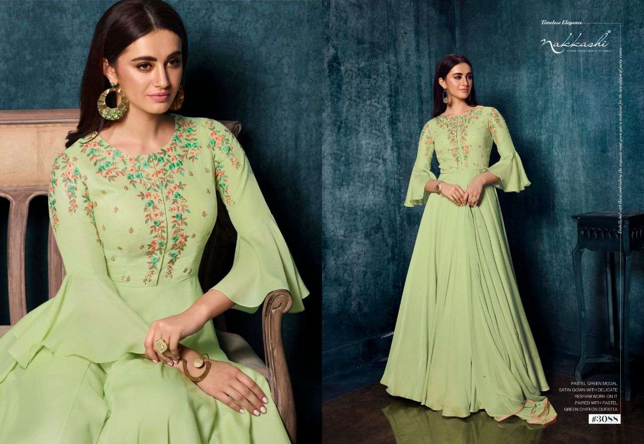 nakkashi breeze modal satin exclusive readymade party wear gown