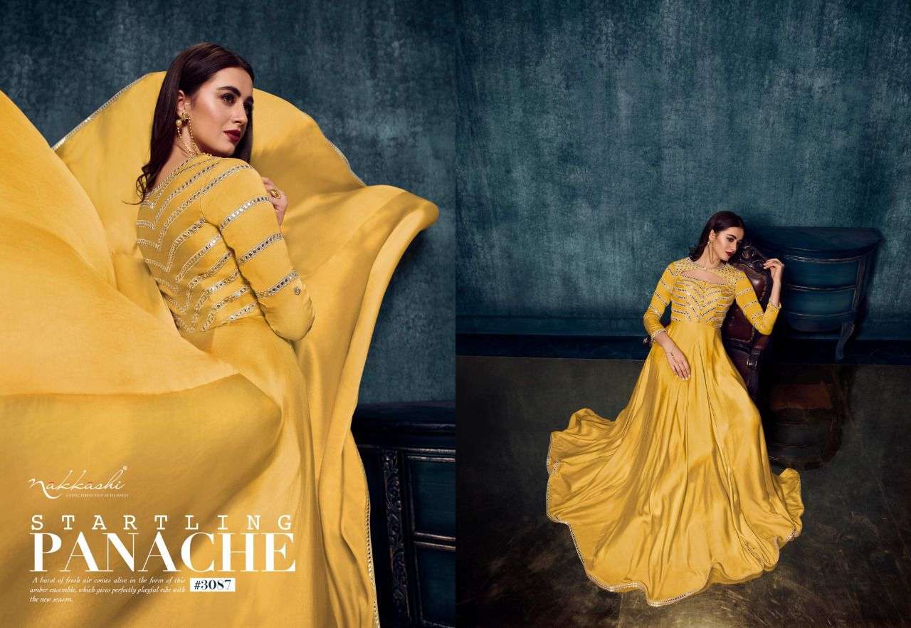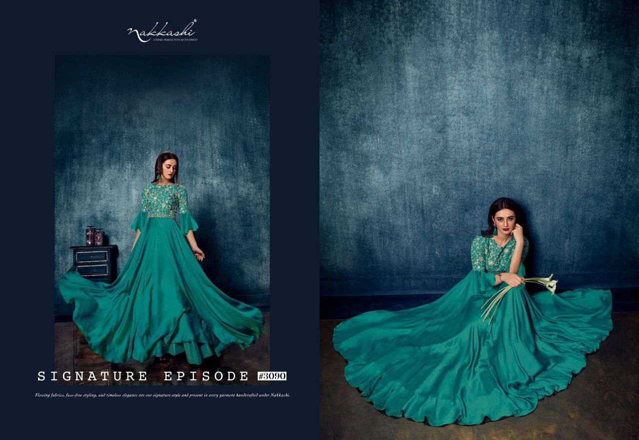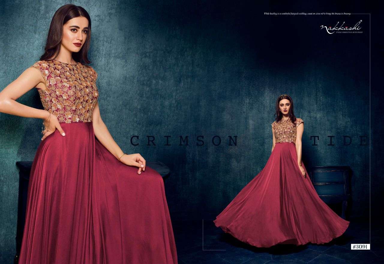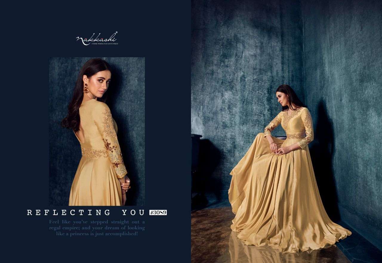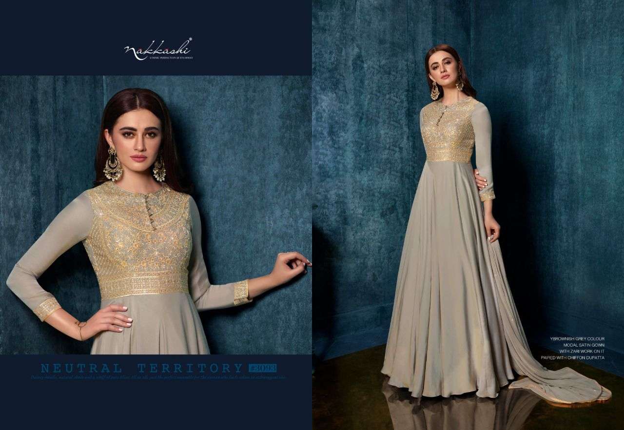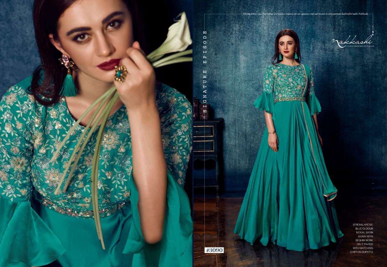 nakkashi breeze modal satin exclusive readymade party wear gown