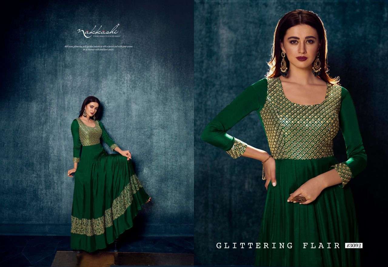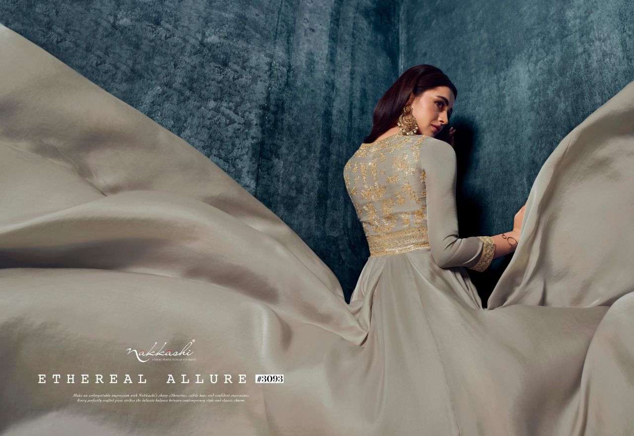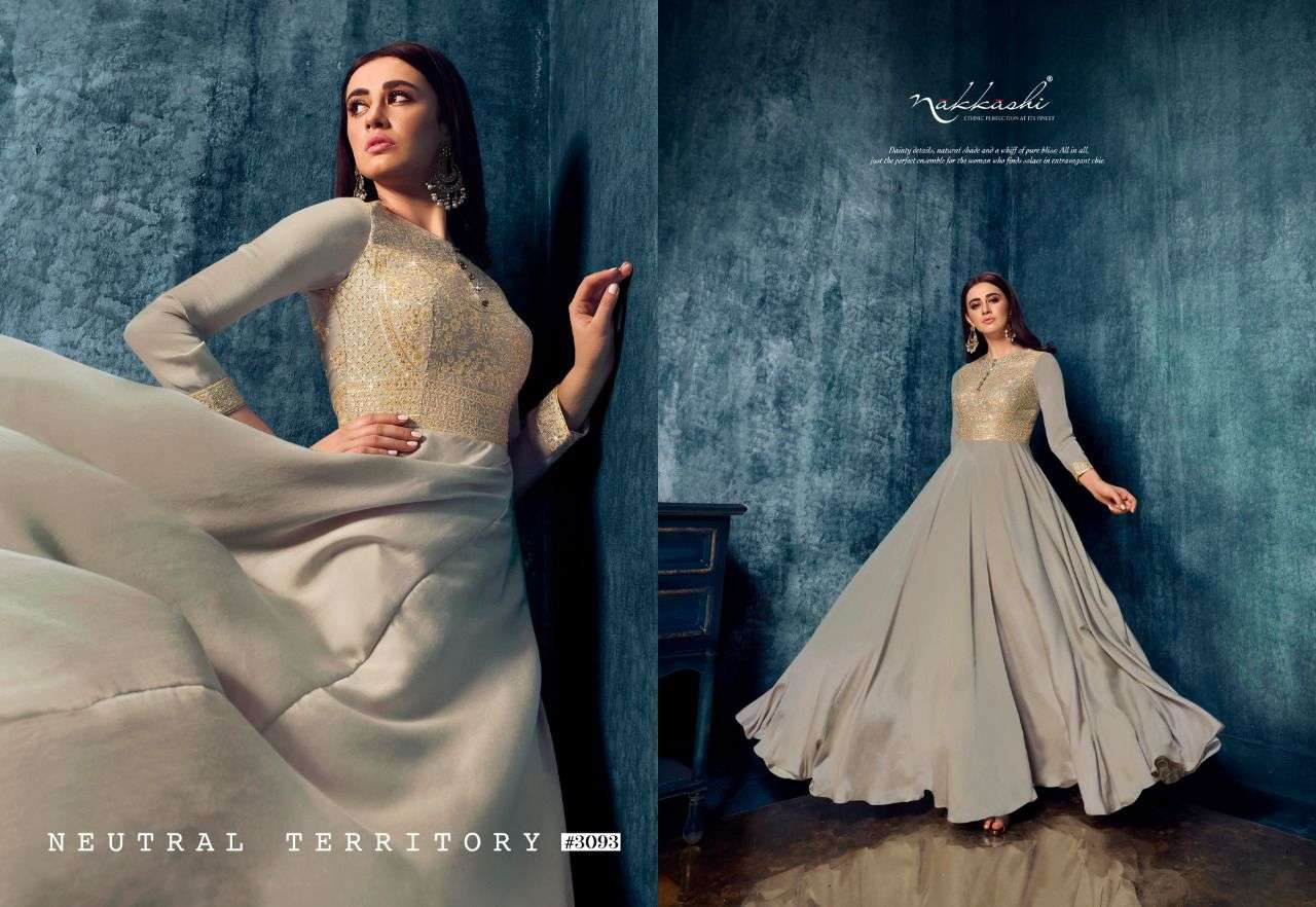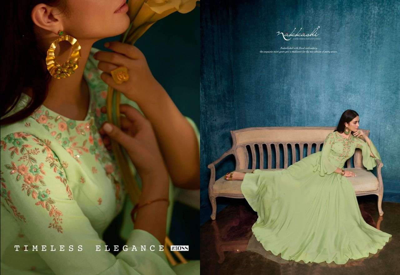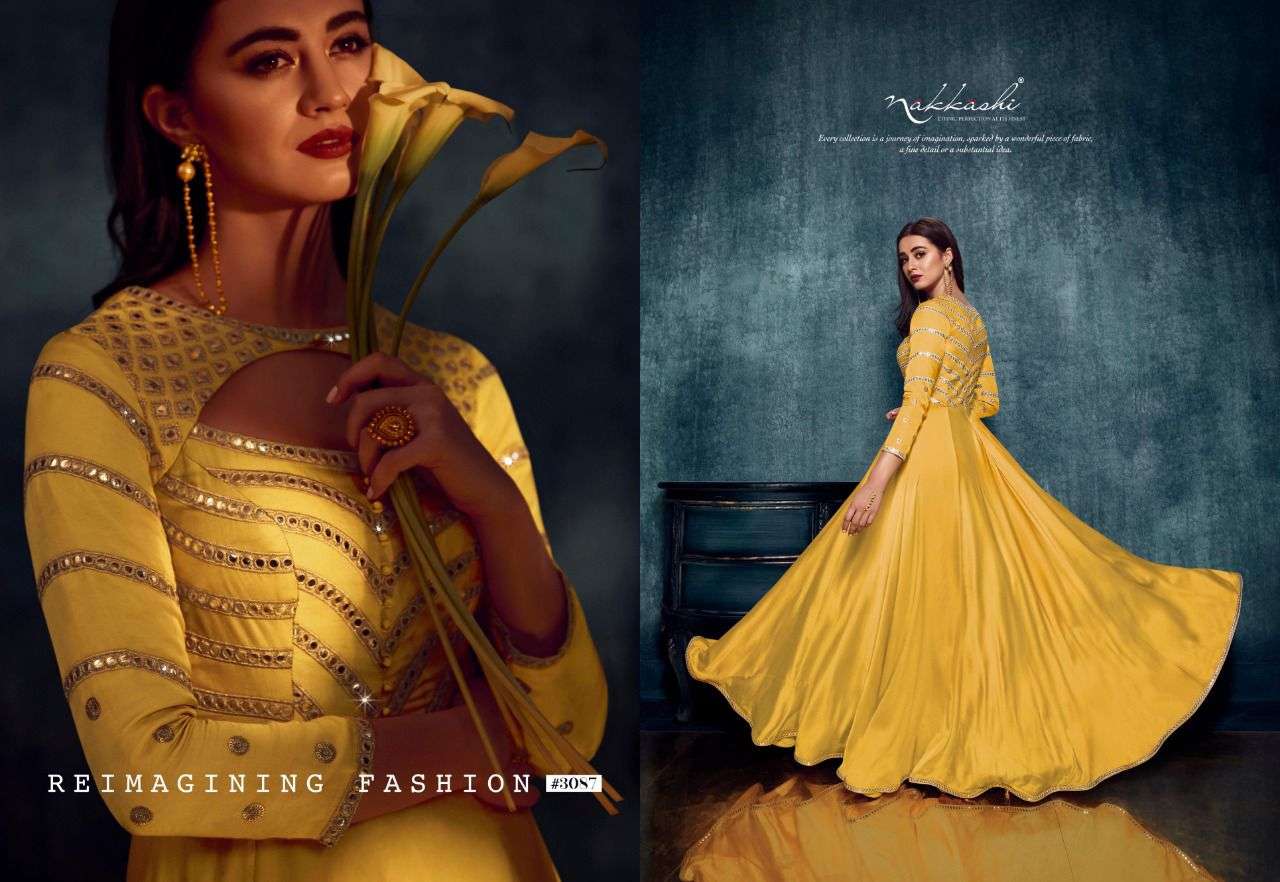 nakkashi breeze modal satin exclusive readymade party wear gown