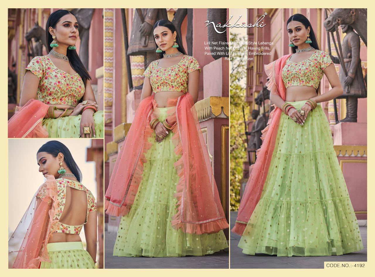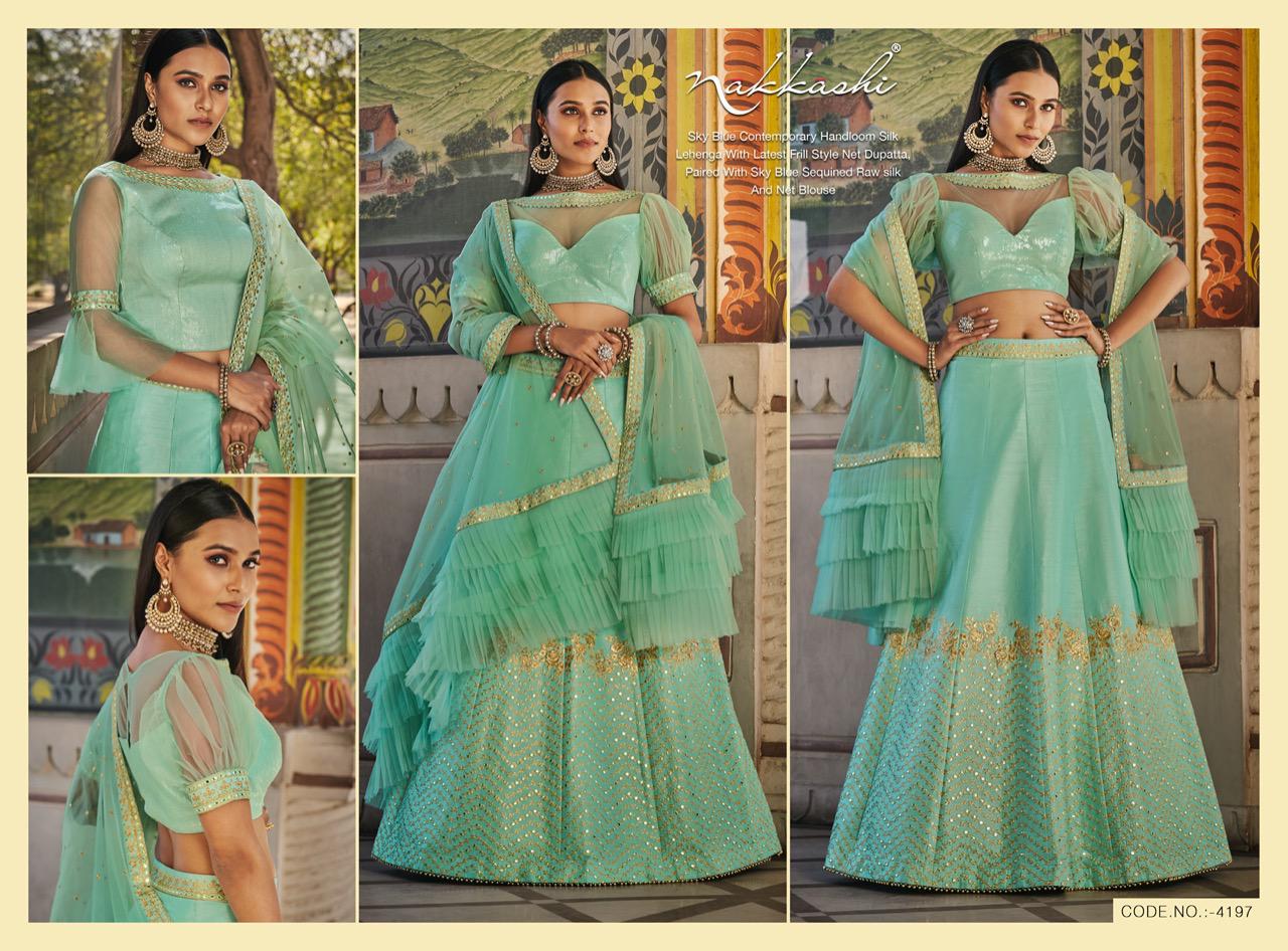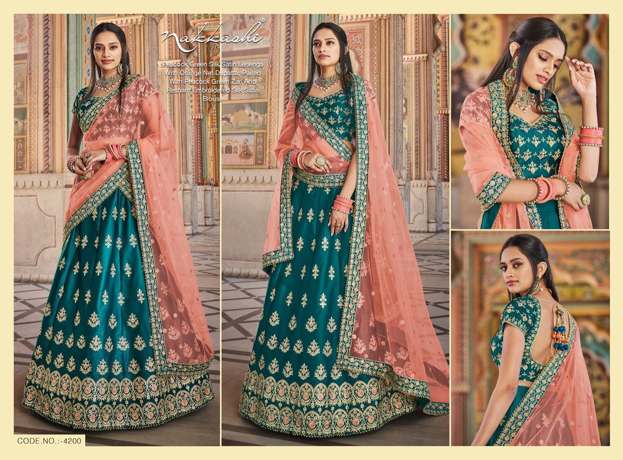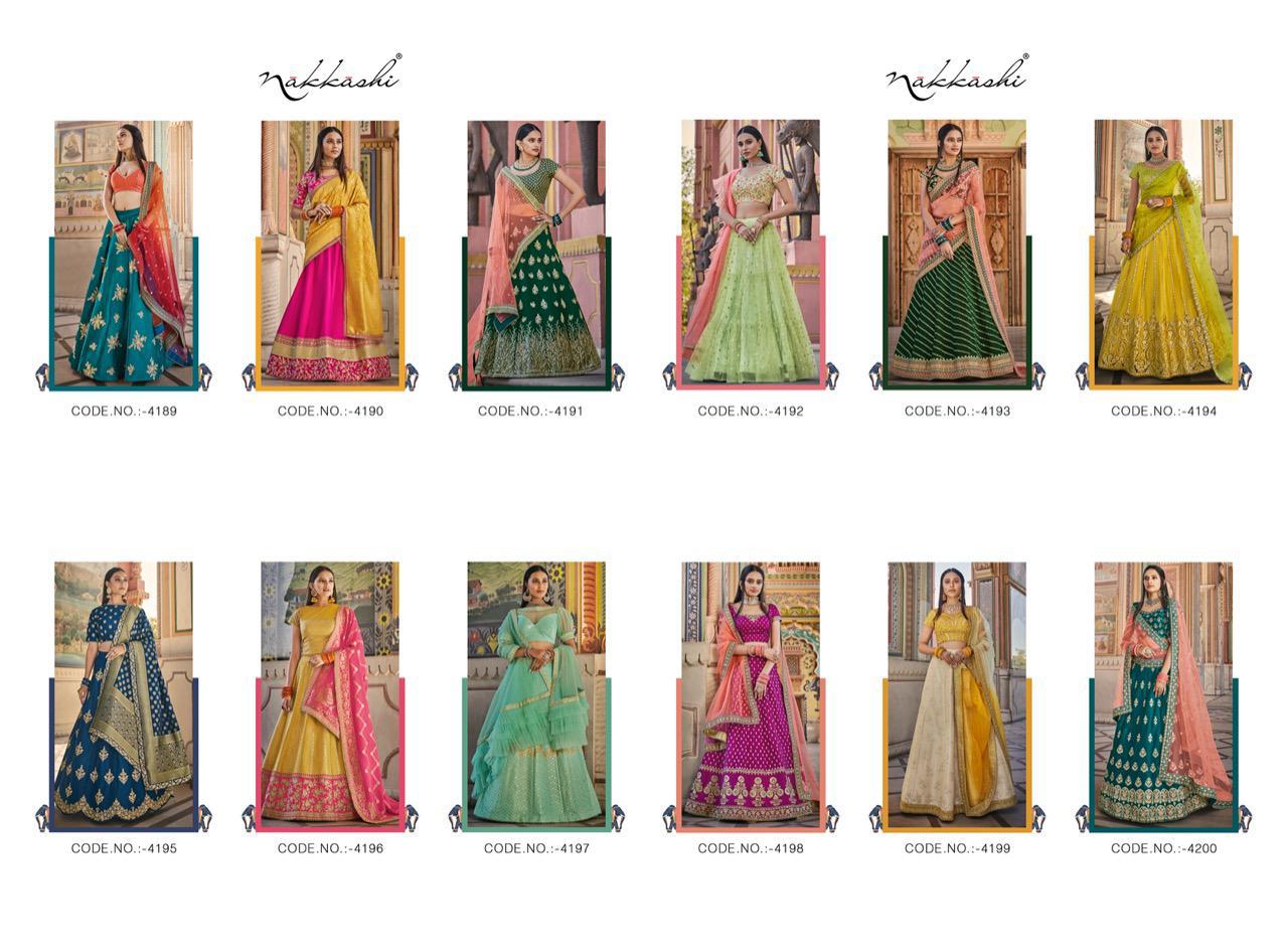 Nakkashi Launch Patrika Beautiful Satin Silk Charming Look Indian Wedding Lehenga Collections