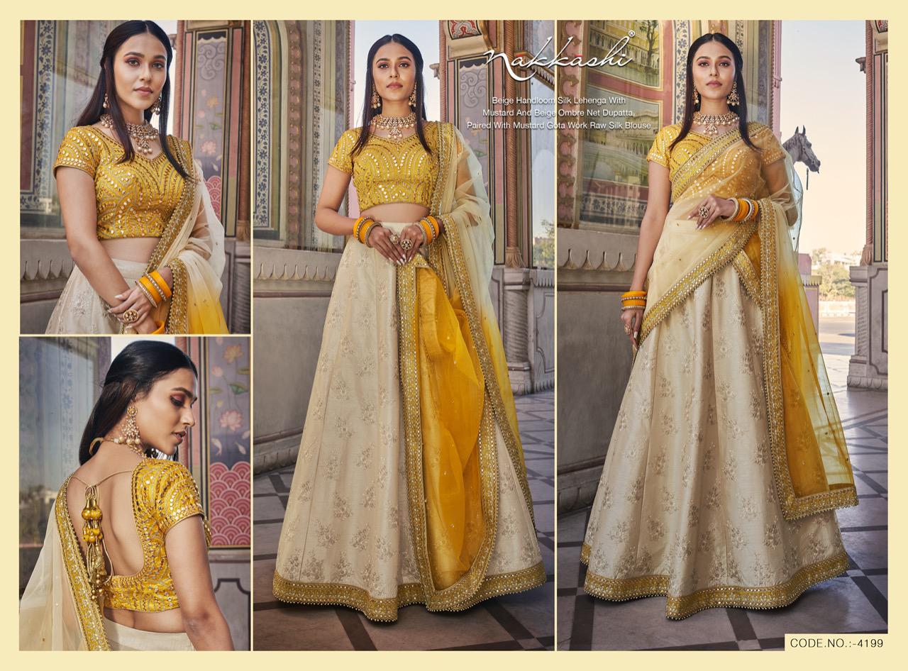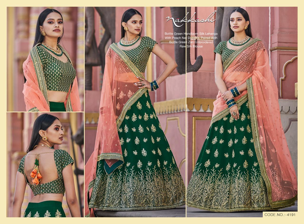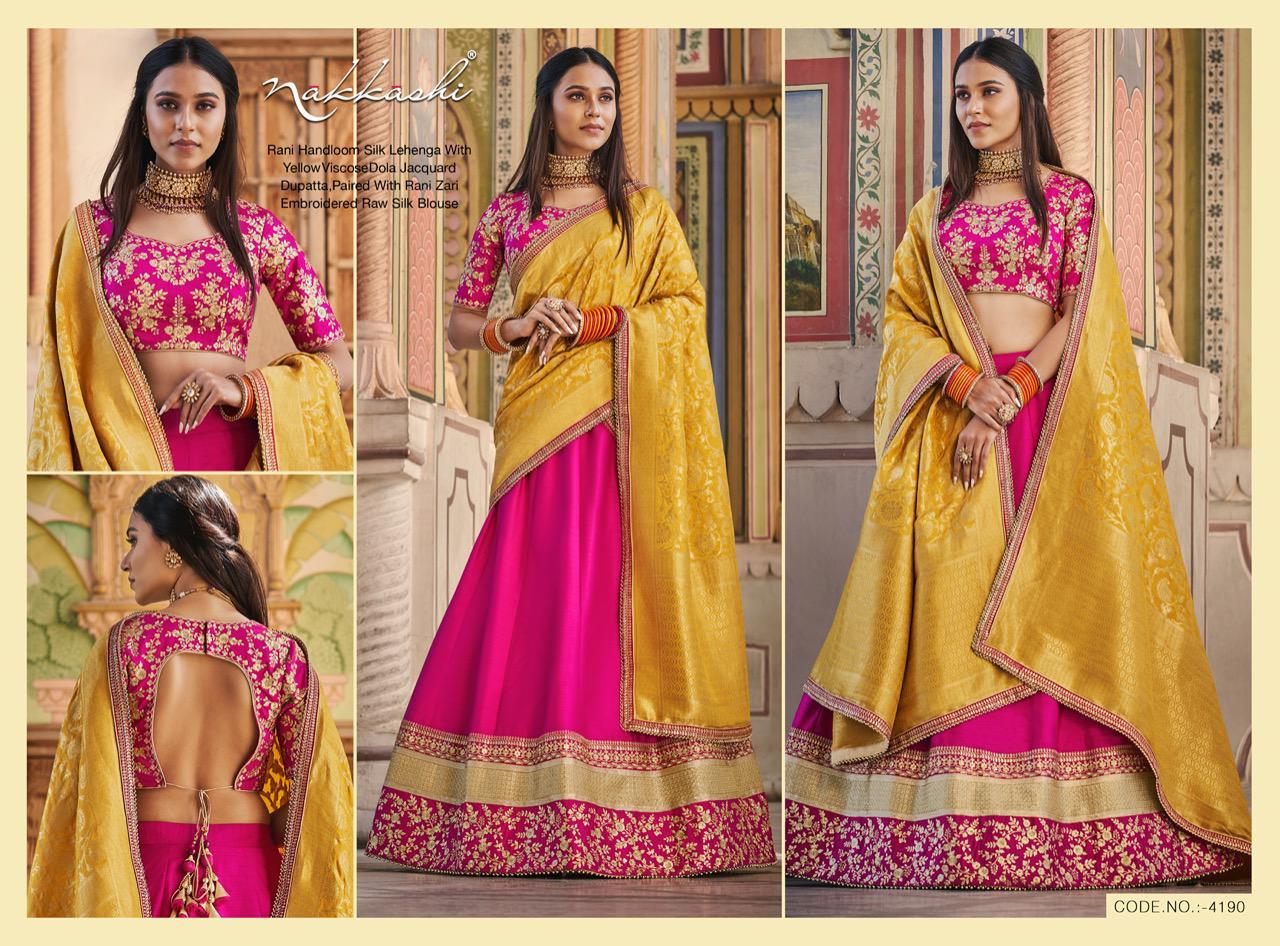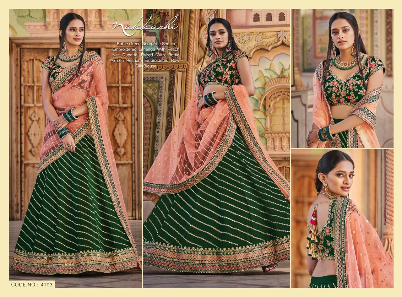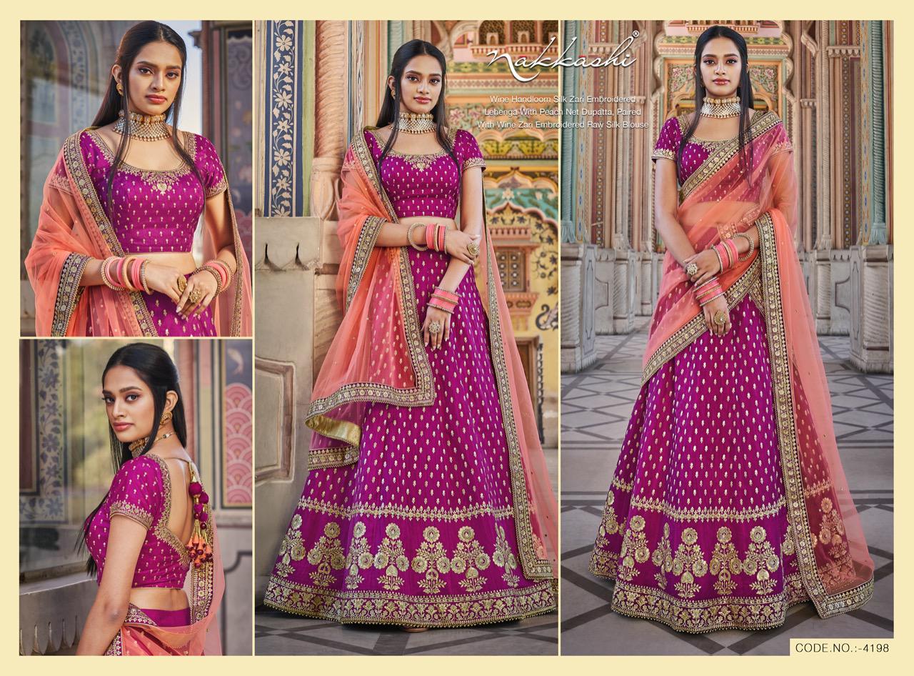 Nakkashi Launch Patrika Beautiful Satin Silk Charming Look Indian Wedding Lehenga Collections