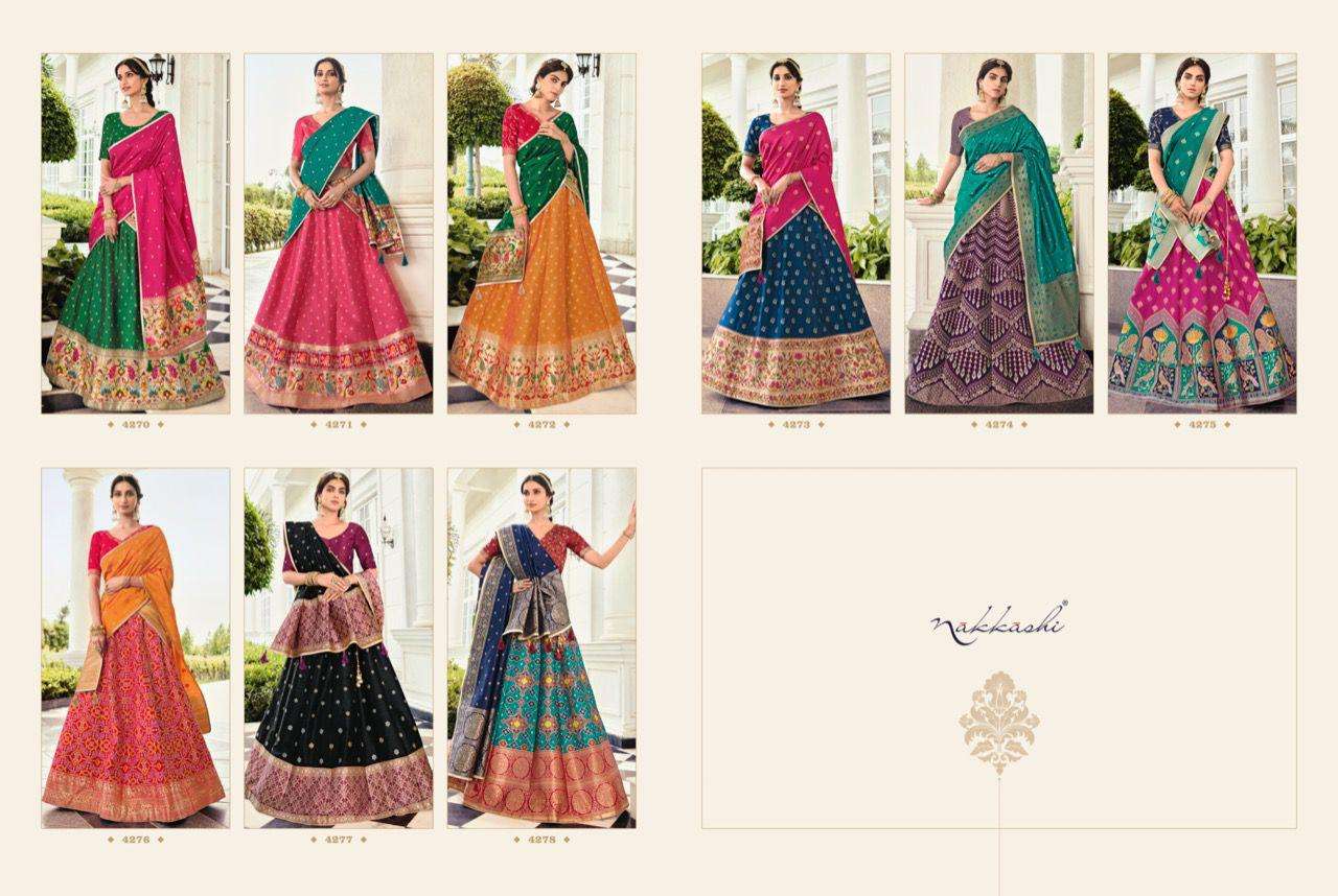 nakkashi meera 4270-4278 series banarasi silk traditional wear lehenga